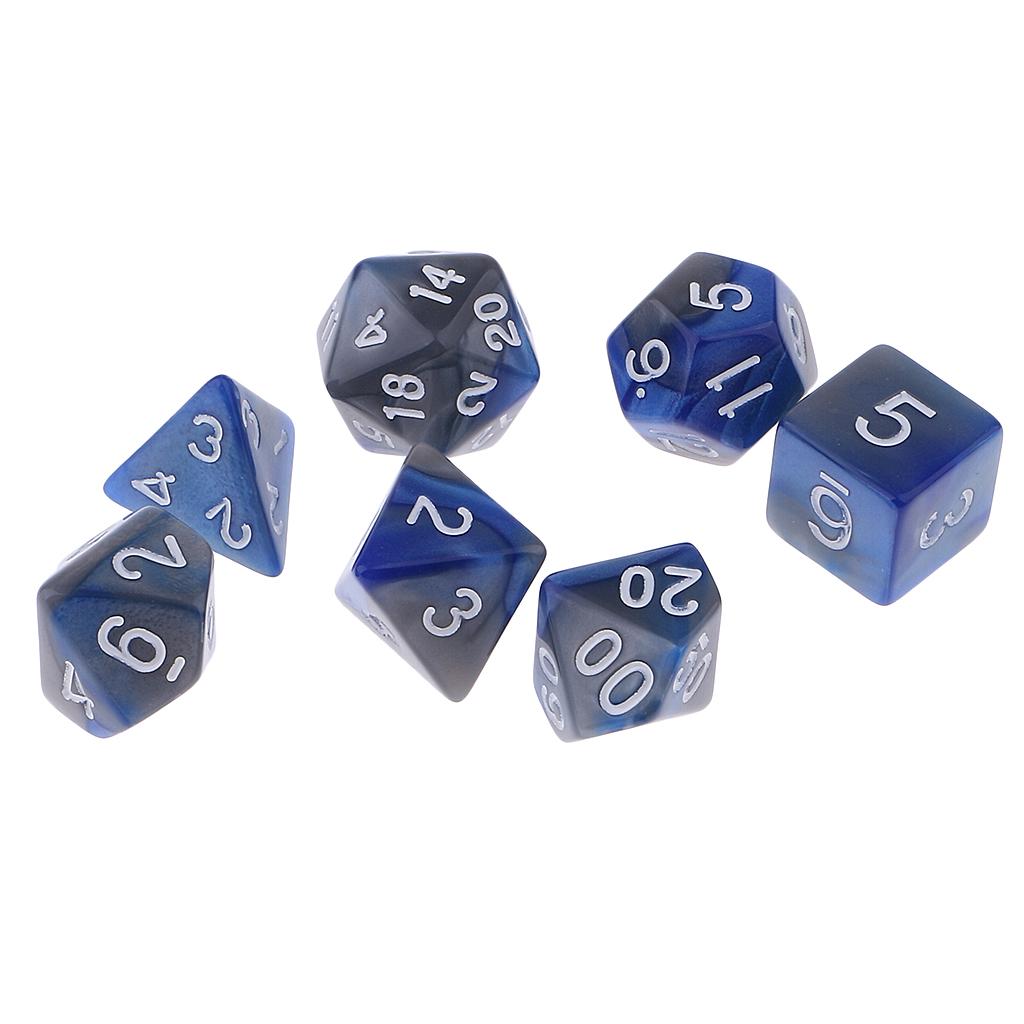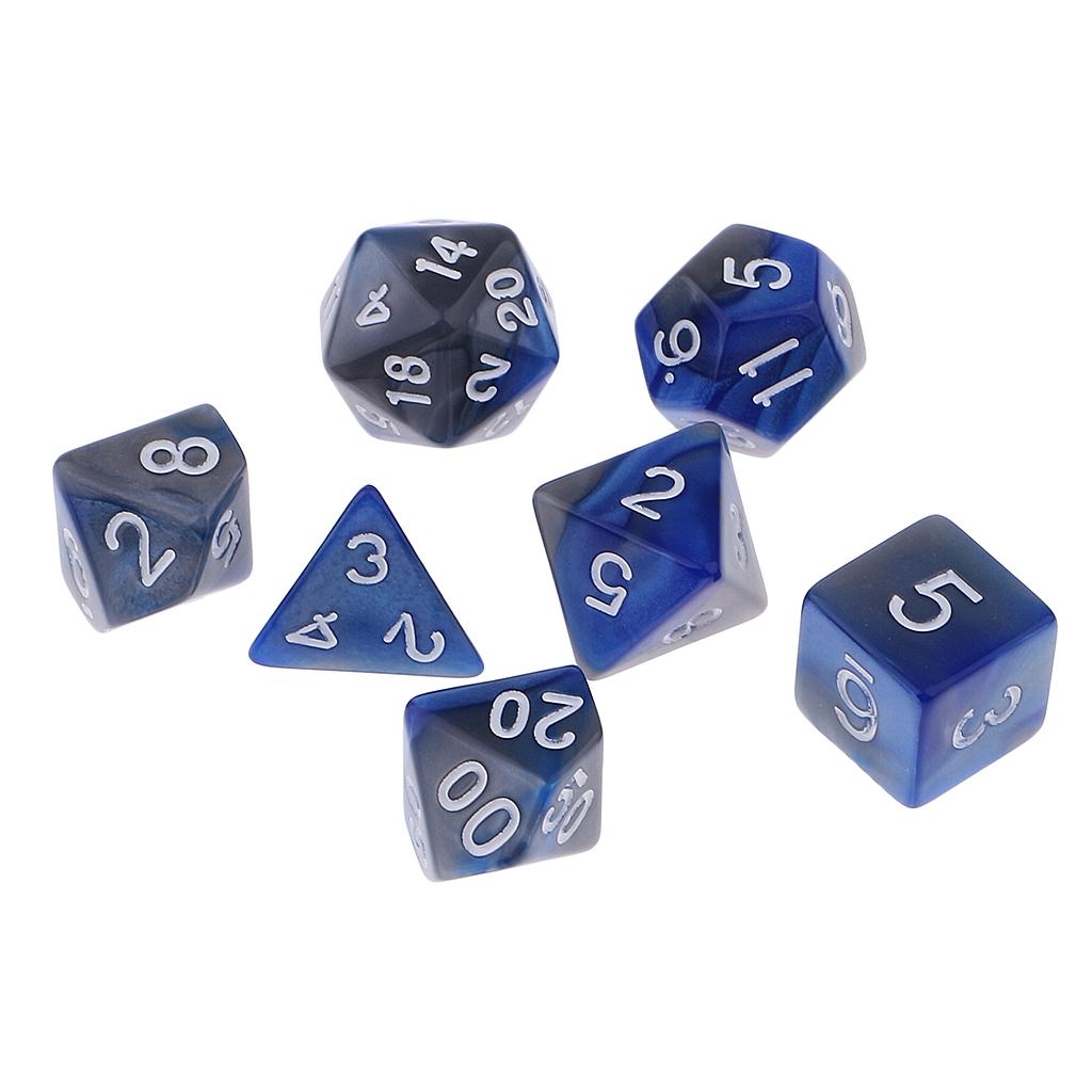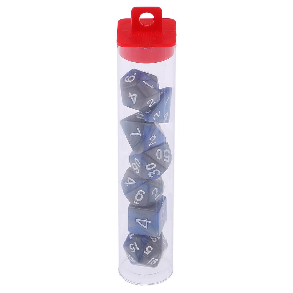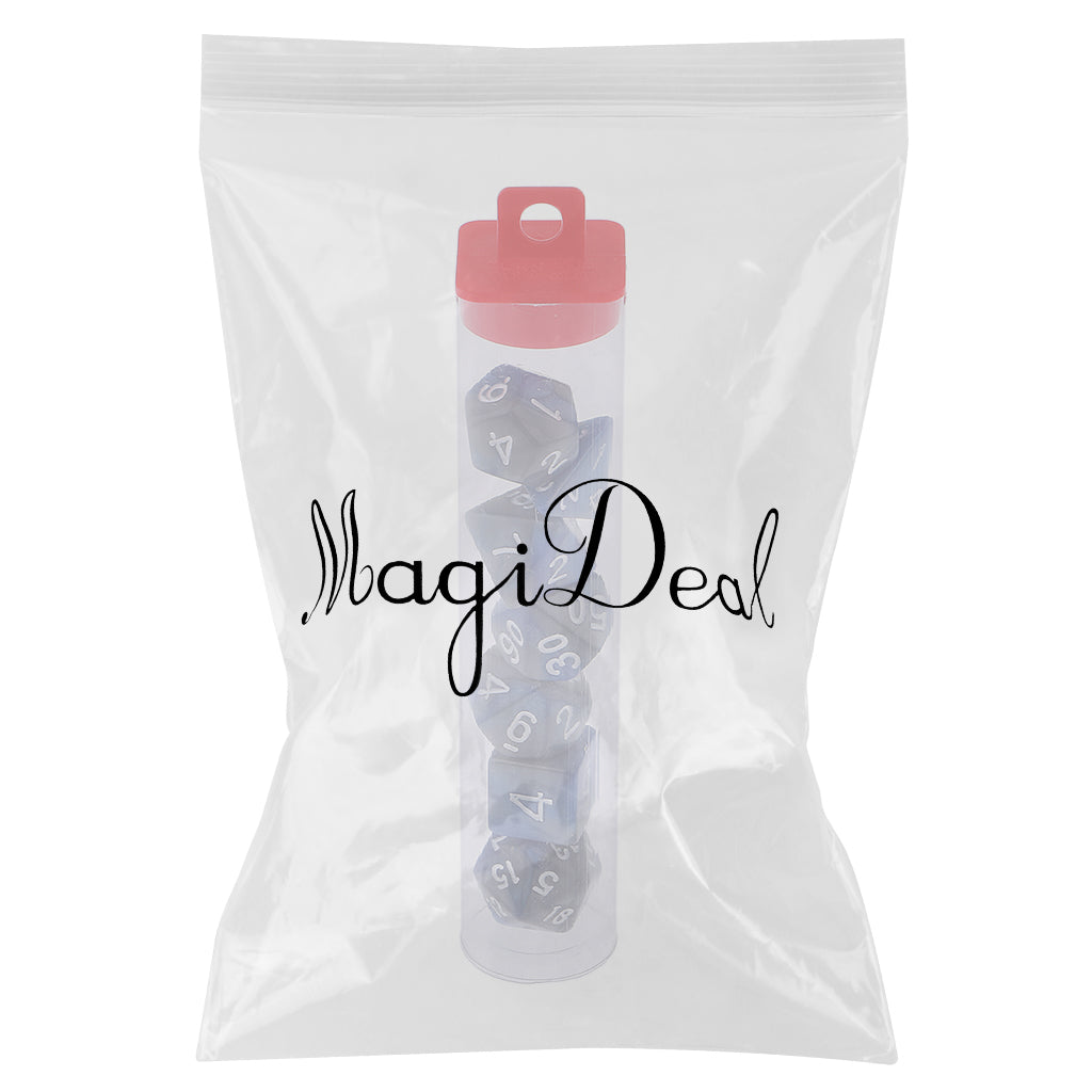 The 7pcs Dice set contains one D4, D6, D8, 2pcs D10, D12, D20 in a Tube