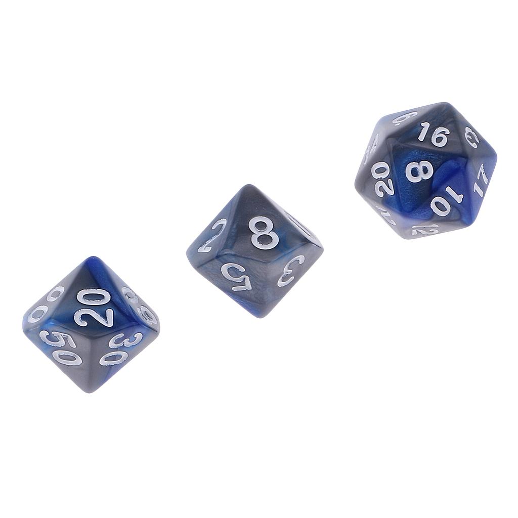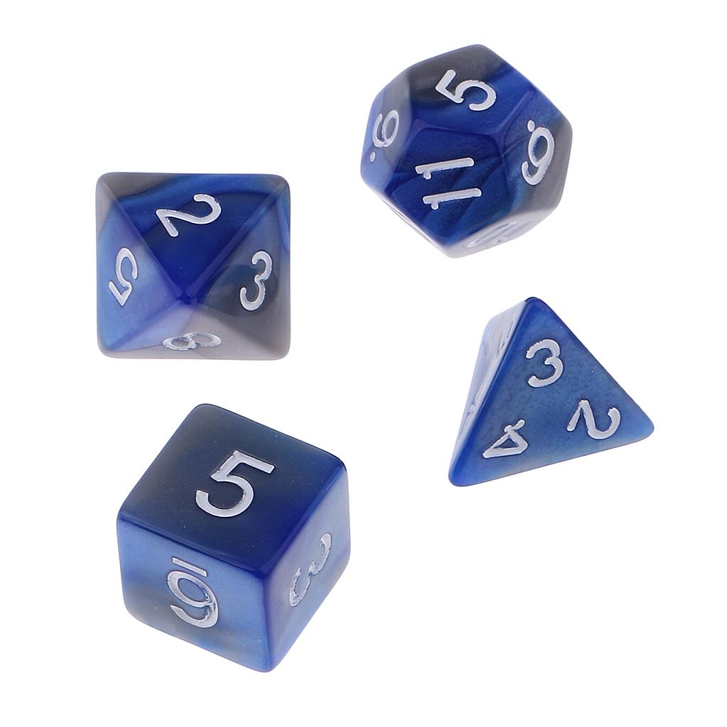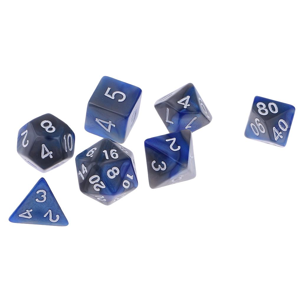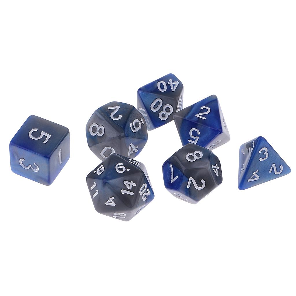 The 7pcs Dice set contains one D4, D6, D8, 2pcs D10, D12, D20 in a Tube