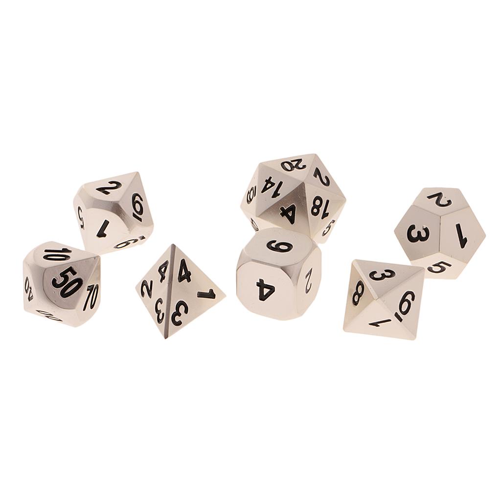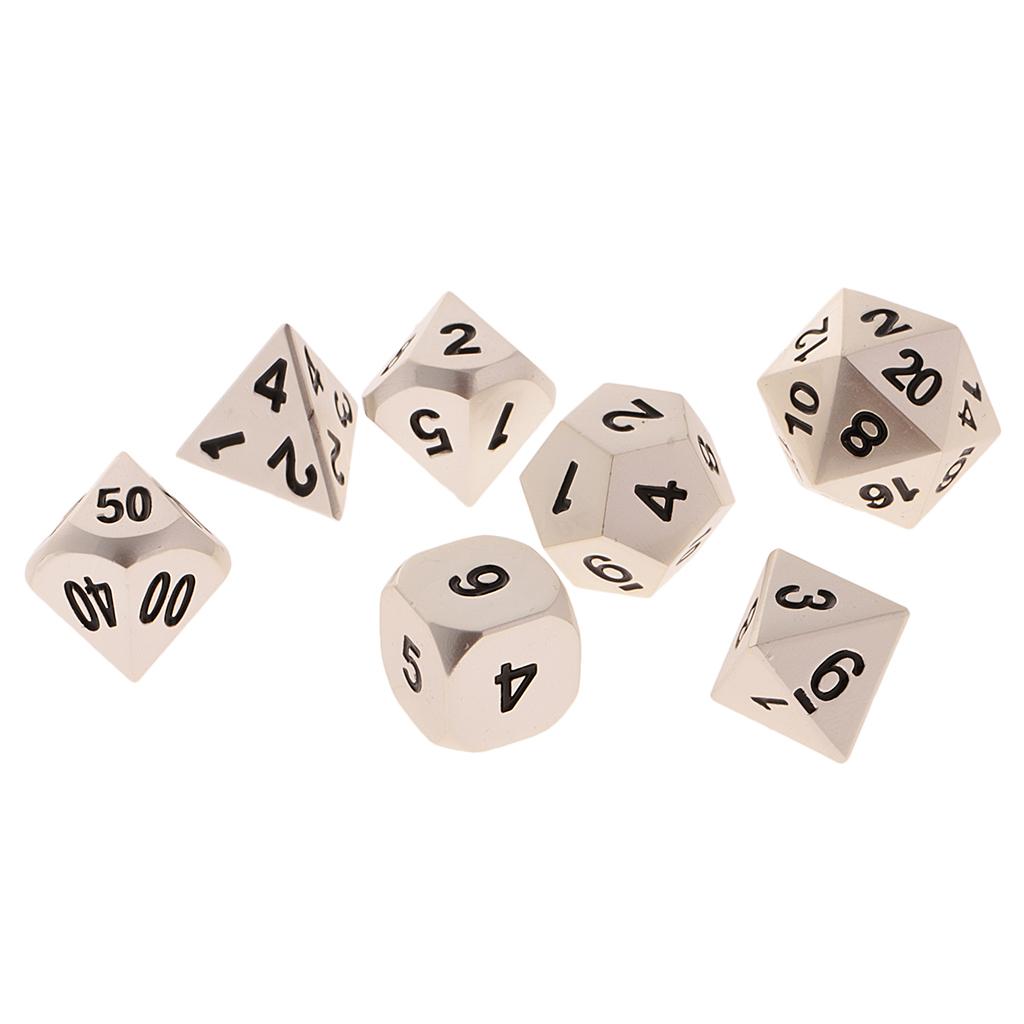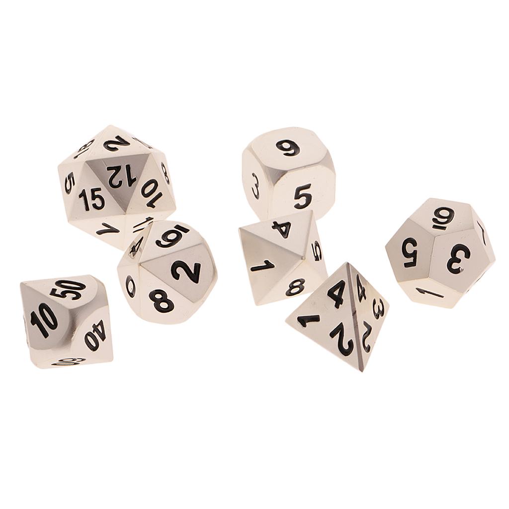 7Pcs Multi-sided Dices Board Game for Dungeons And Dragons Xmas Gift Silver