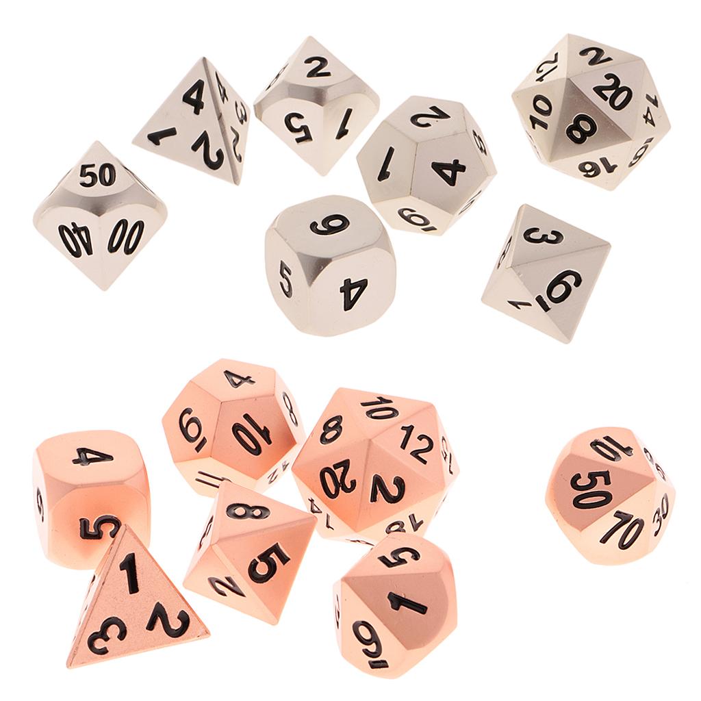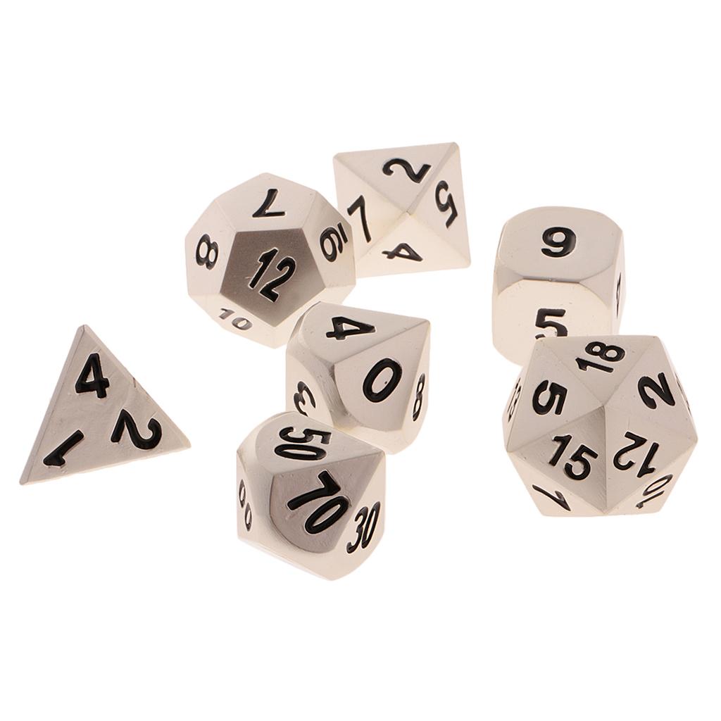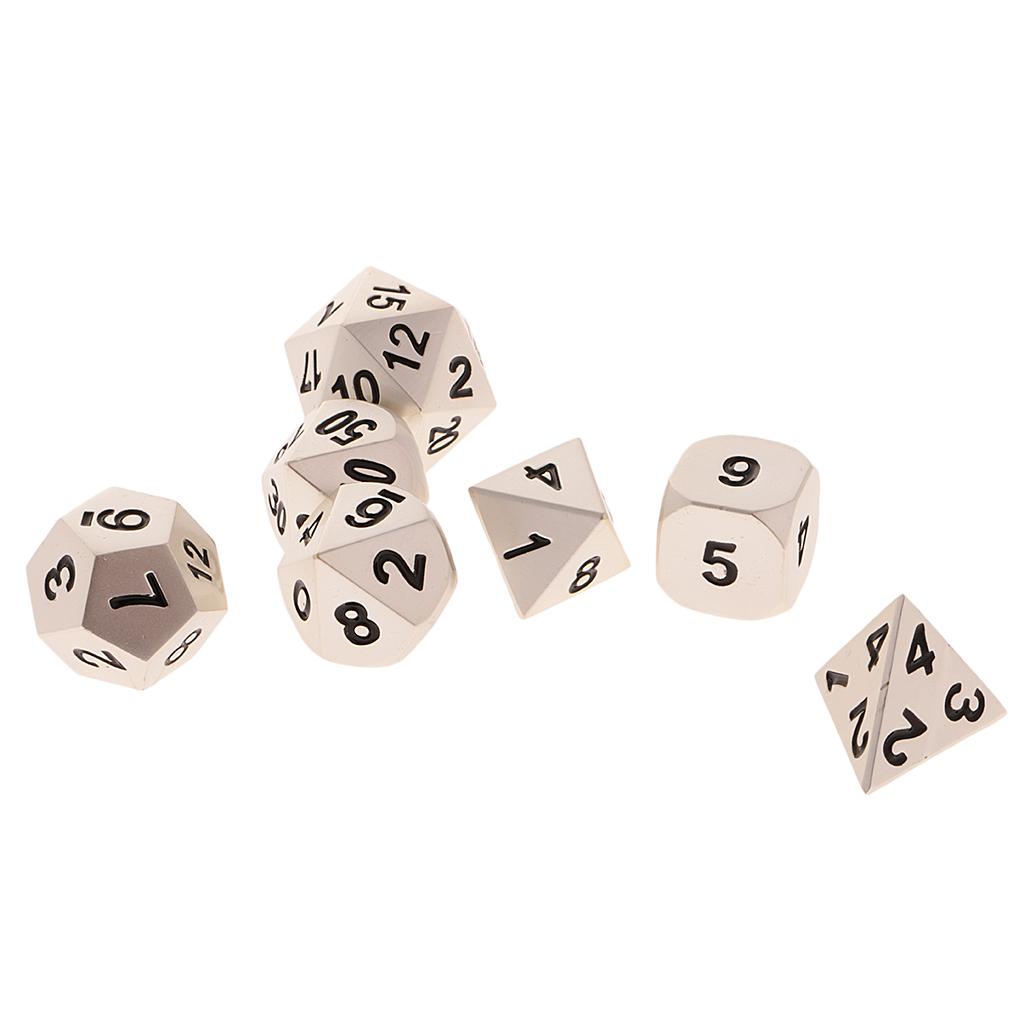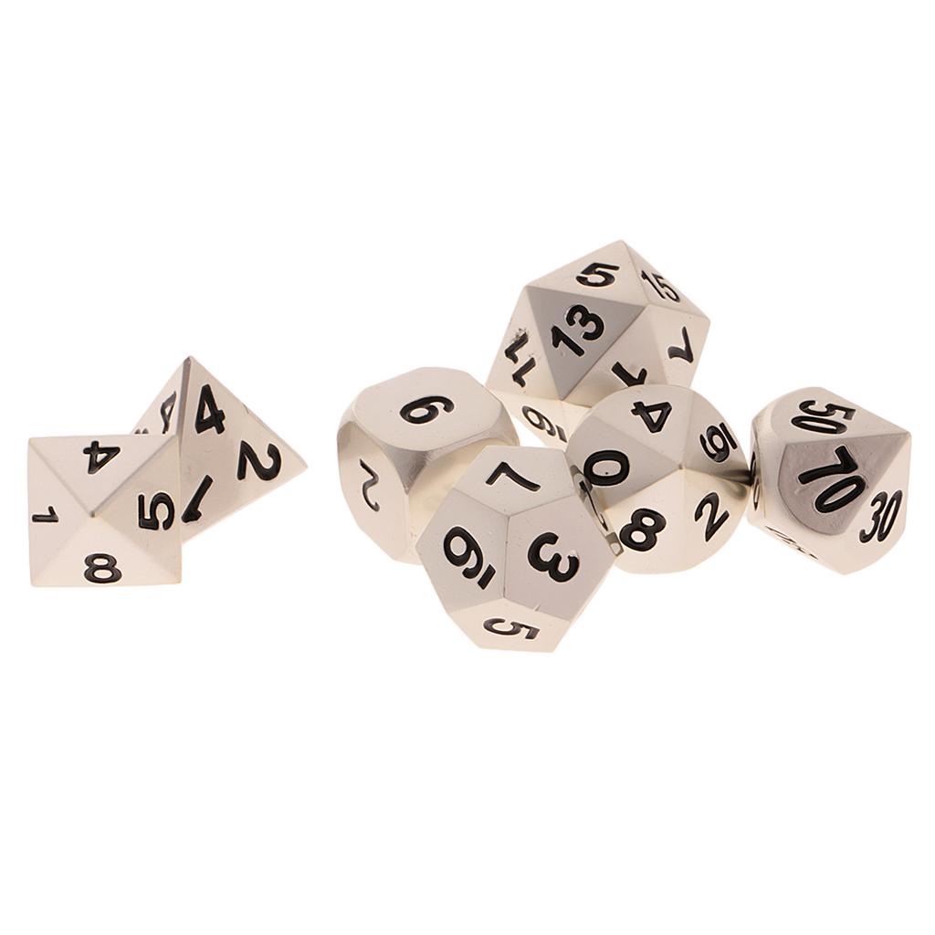 7Pcs Multi-sided Dices Board Game for Dungeons And Dragons Xmas Gift Silver