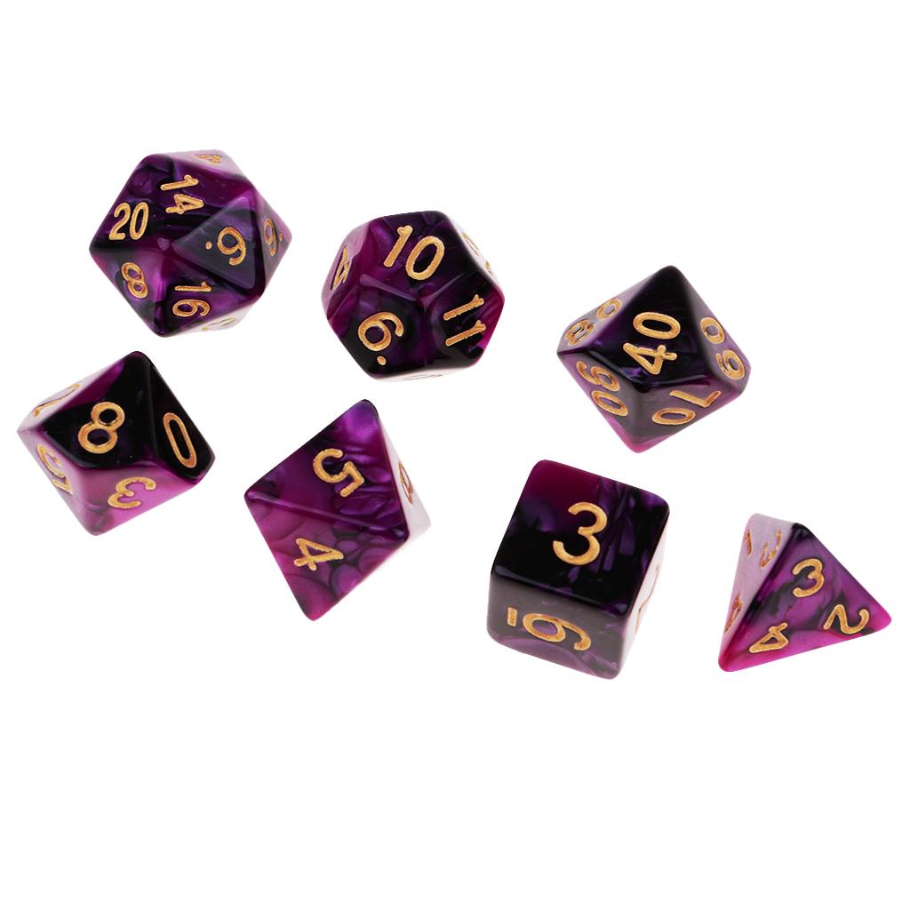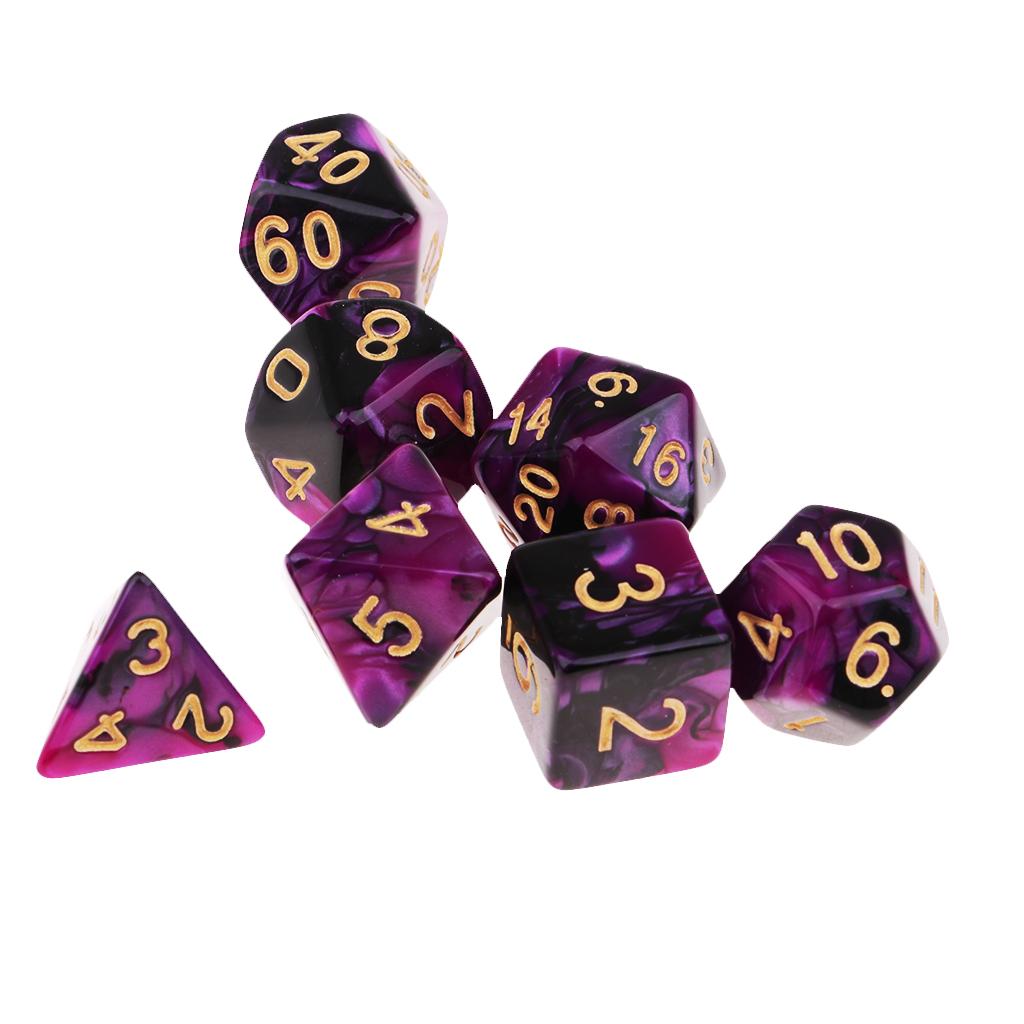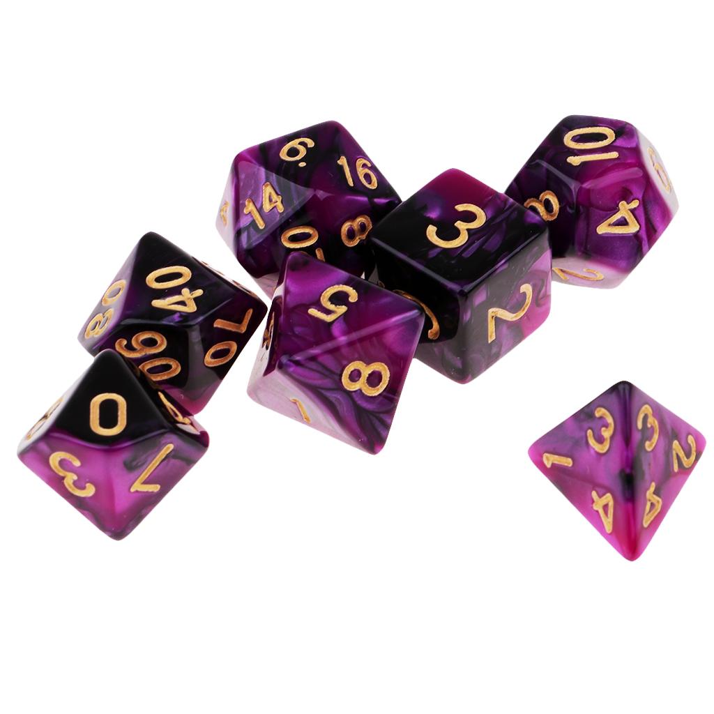 7PCS Polyhedral Dice 16mm for Dungeons and Dragons Party Games - Purple Black