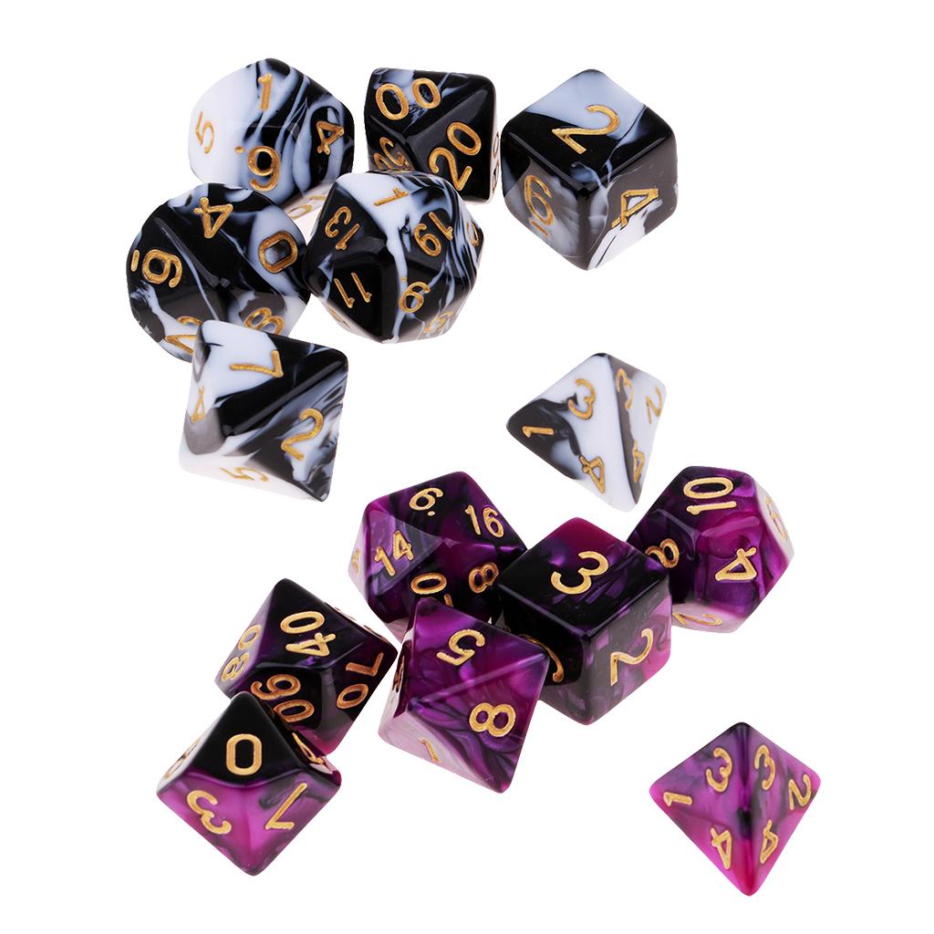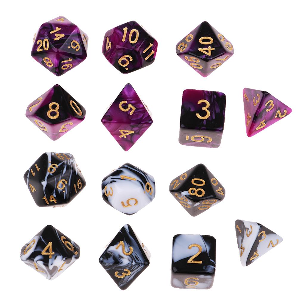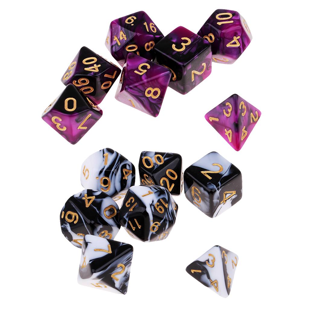 7PCS Polyhedral Dice 16mm for Dungeons and Dragons Party Games - Purple Black