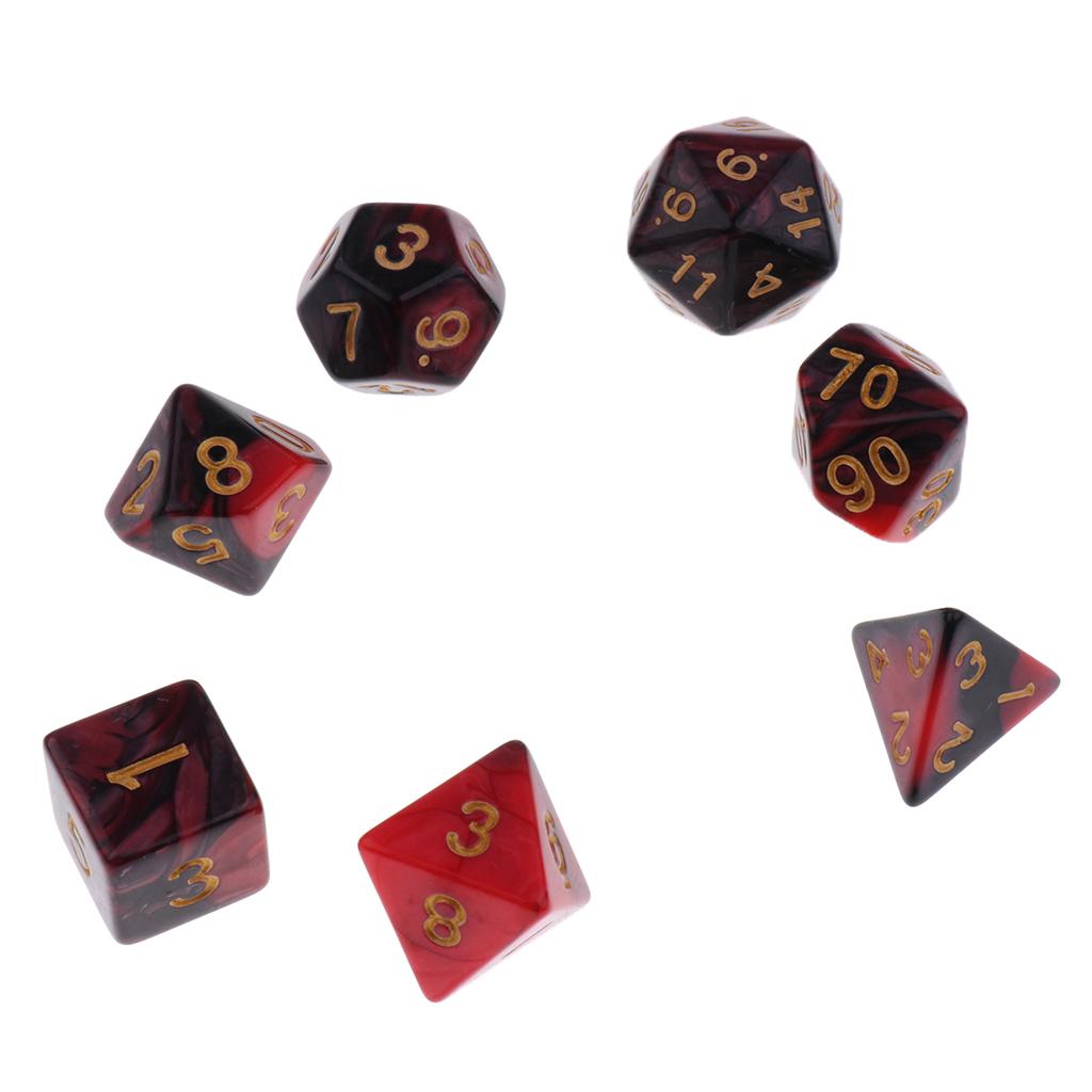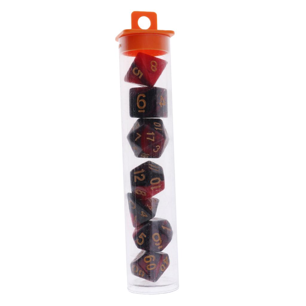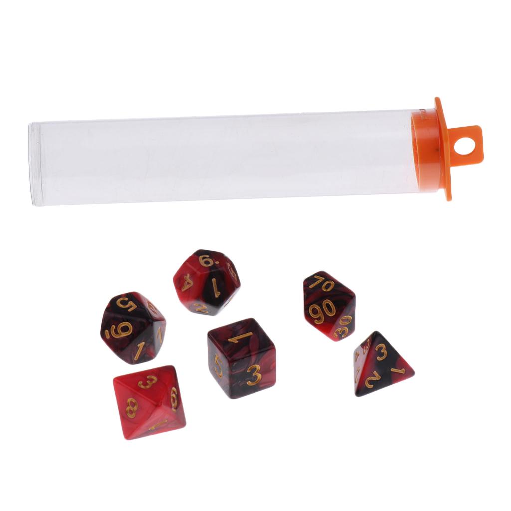 The 7pcs Dice set contains one D4, D6, D8, 2pcs D10, D12, D20 in a Tube