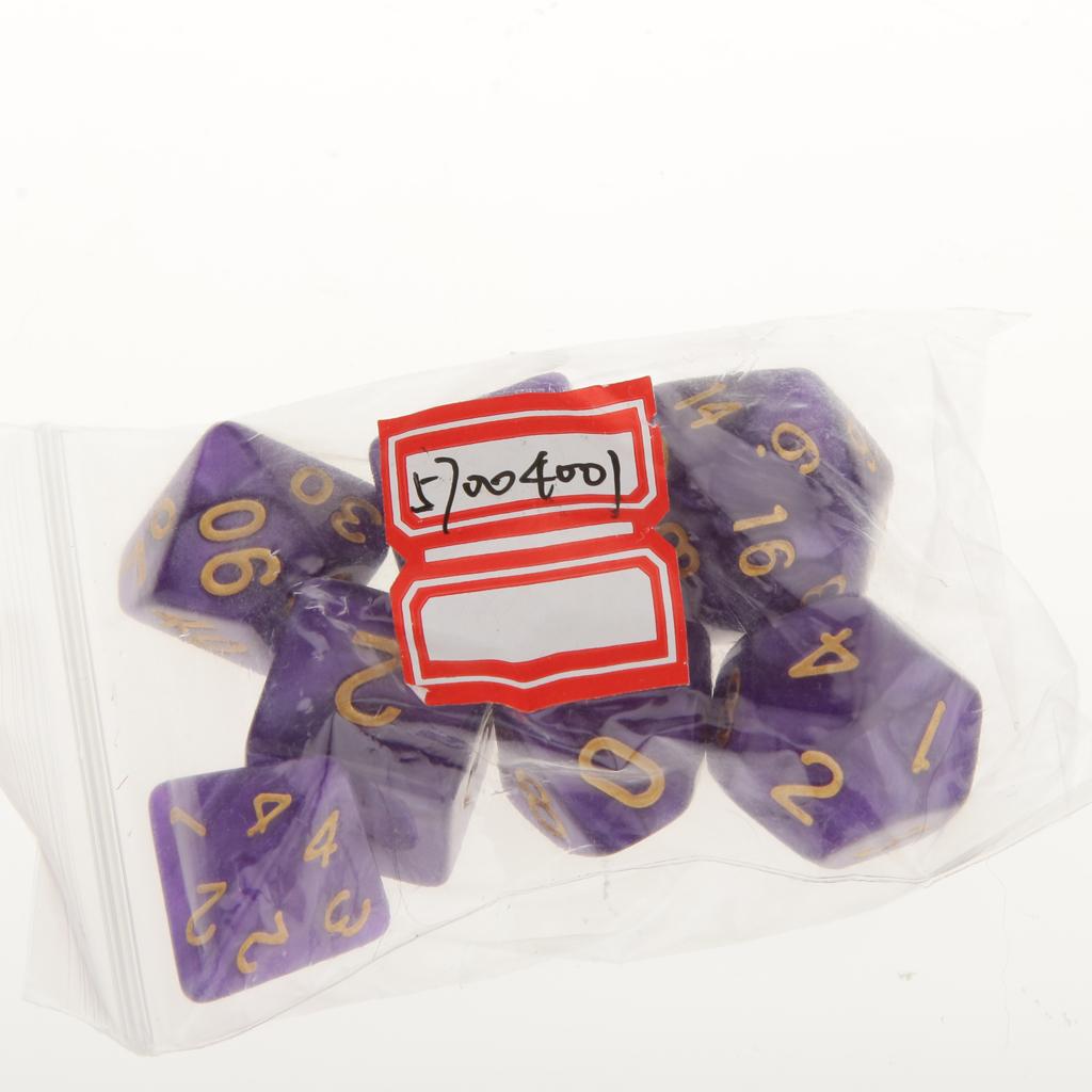The 7PCS Dice set contains one D20, one D12, two D10 (00-90 and 0-9), one D8, one D6, and one D4.