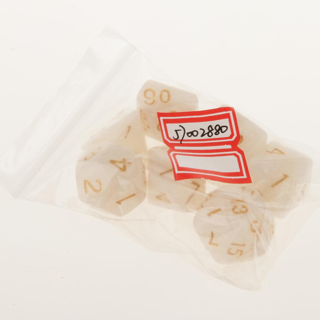 The 7PCS Dice set contains one D20, one D12, two D10 (00-90 and 0-9), one D8, one D6, and one D4.