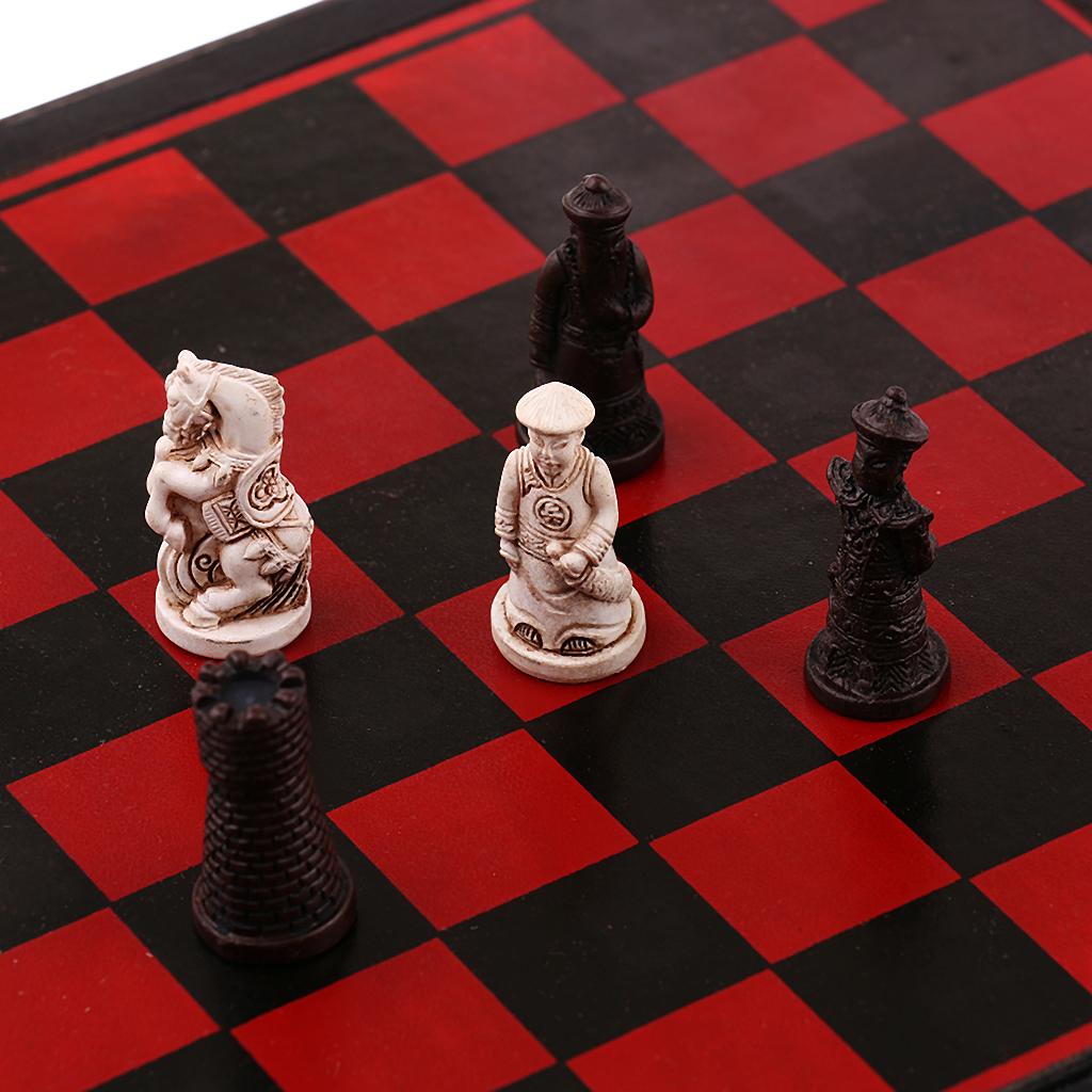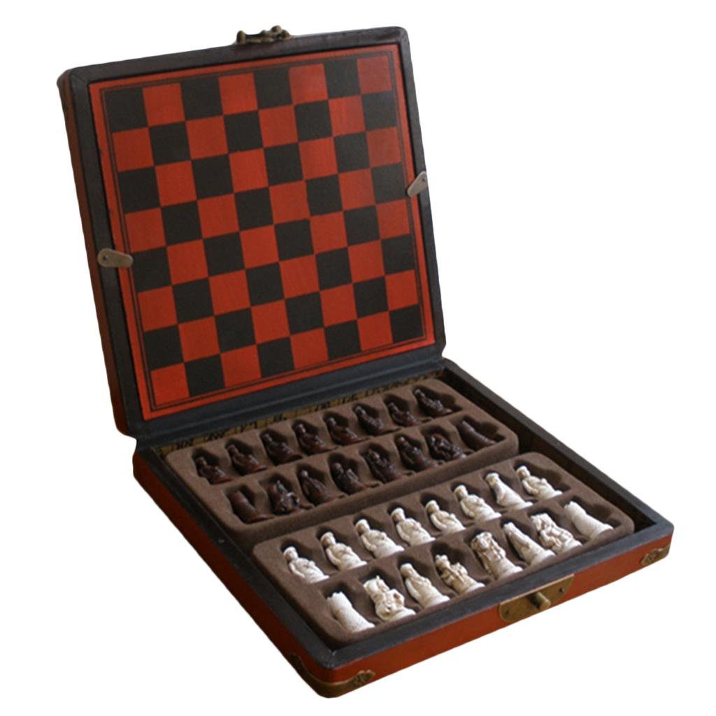 Antique Chinese Chess Set Wooden Table Miniature Chess Board Chess Pieces Move Box Retro Collectibles
