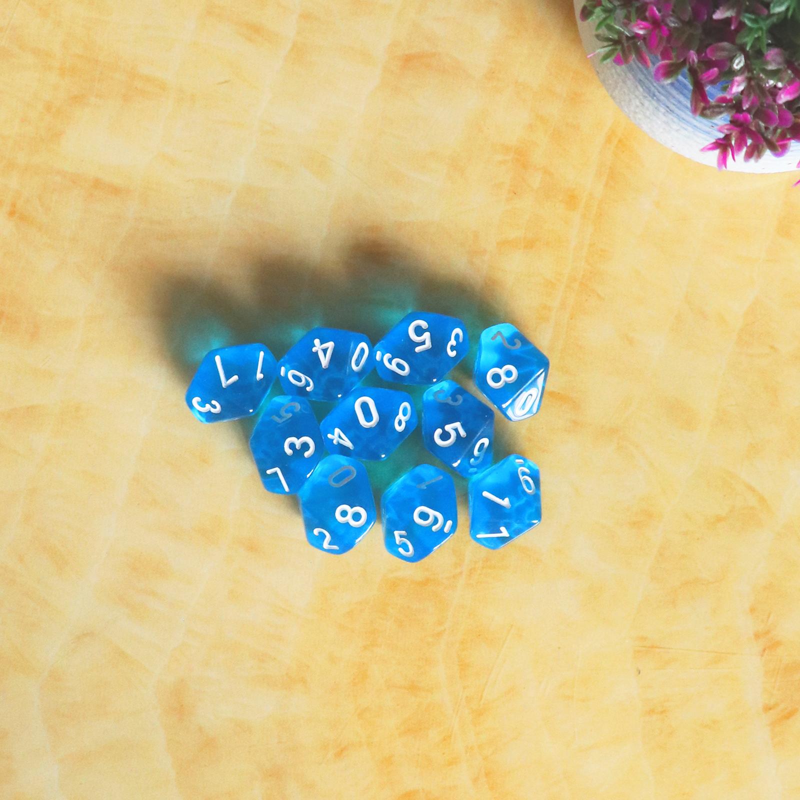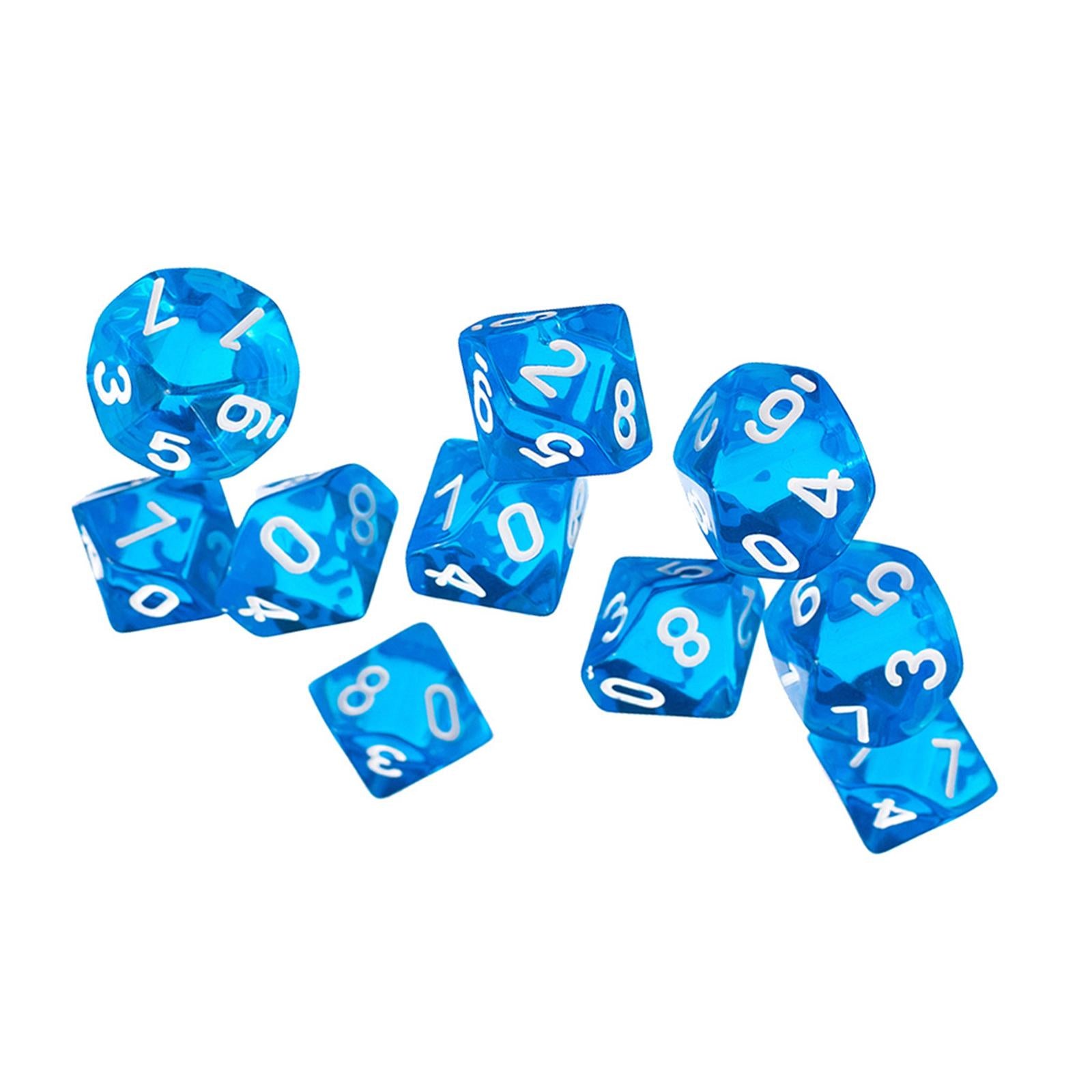 D10 Blue Ten Sided Gem Dice for RPG Dungeons & Dragons Games Set of 10 Dice