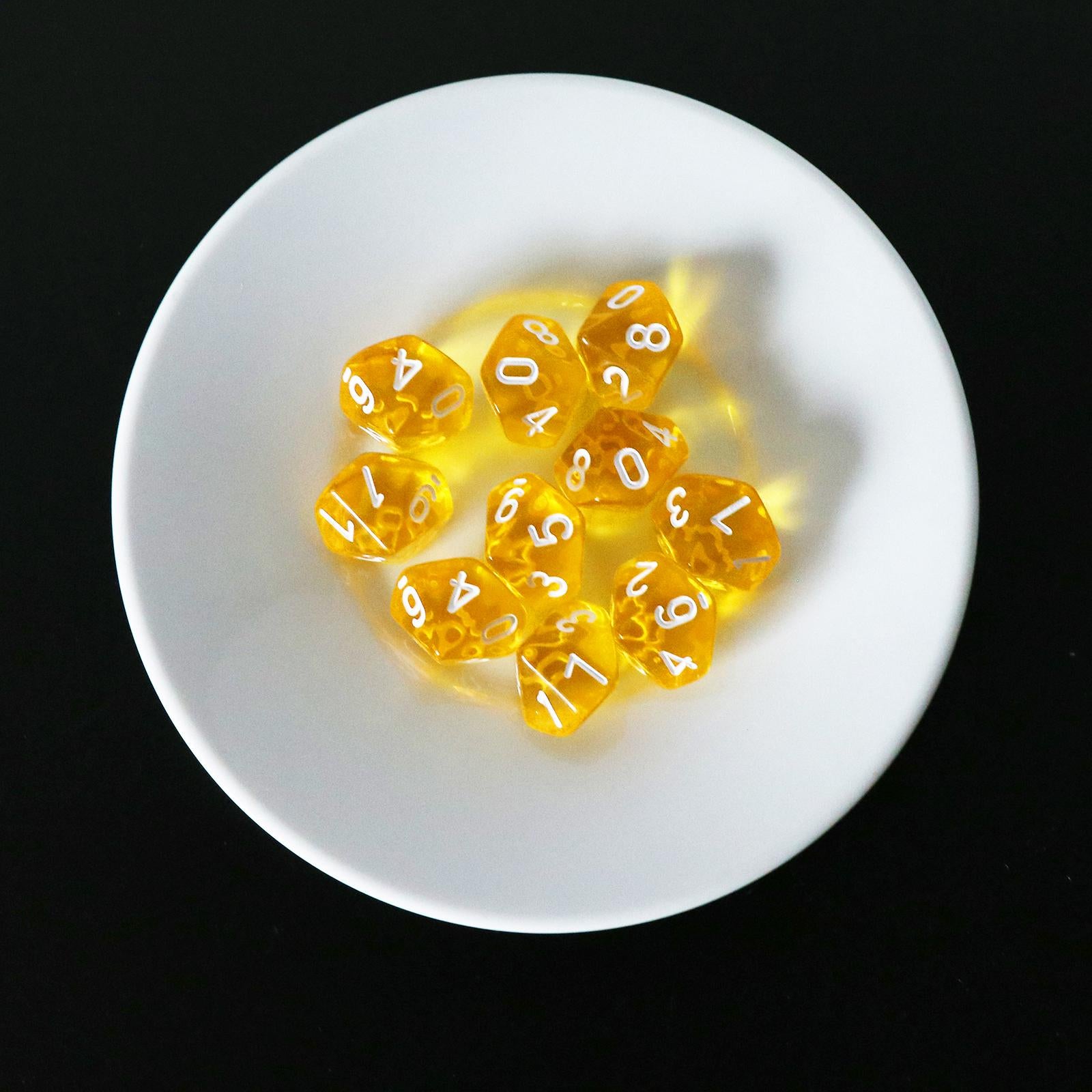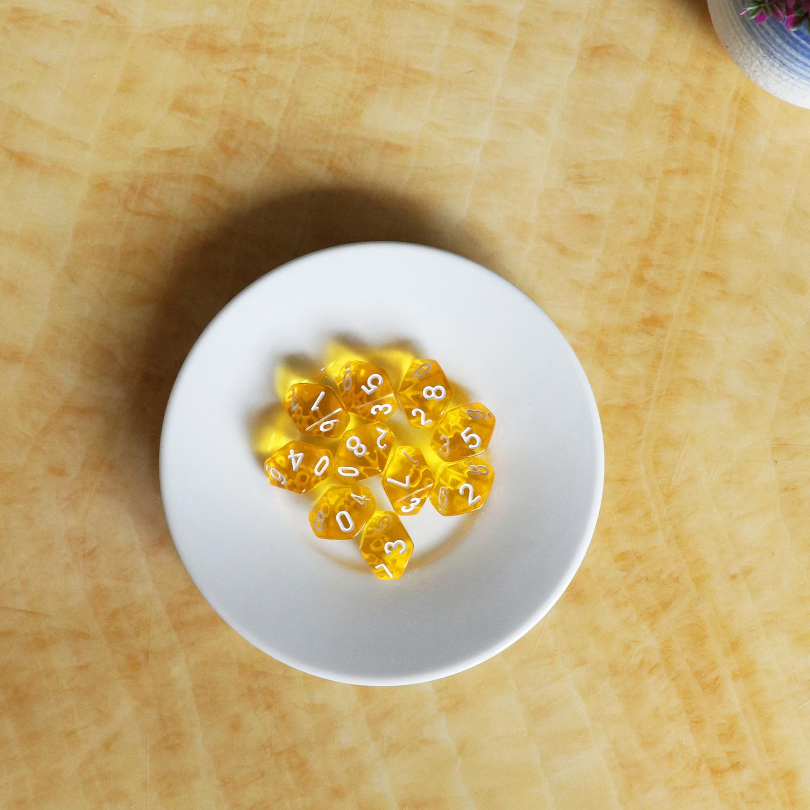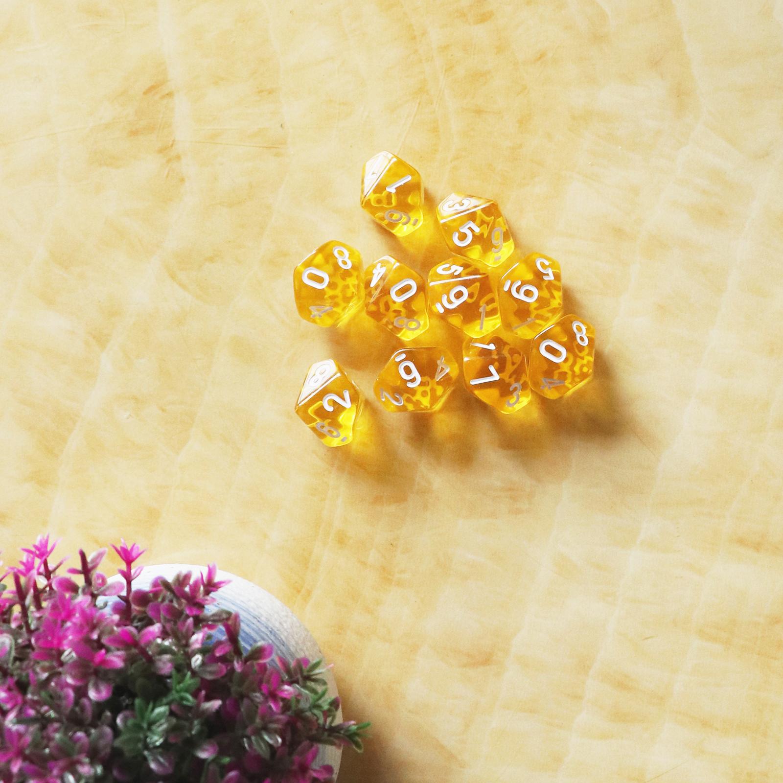D10 Yellow Ten Sided Gem Dice for RPG Dungeons Dragons Games Set of 10 Dice