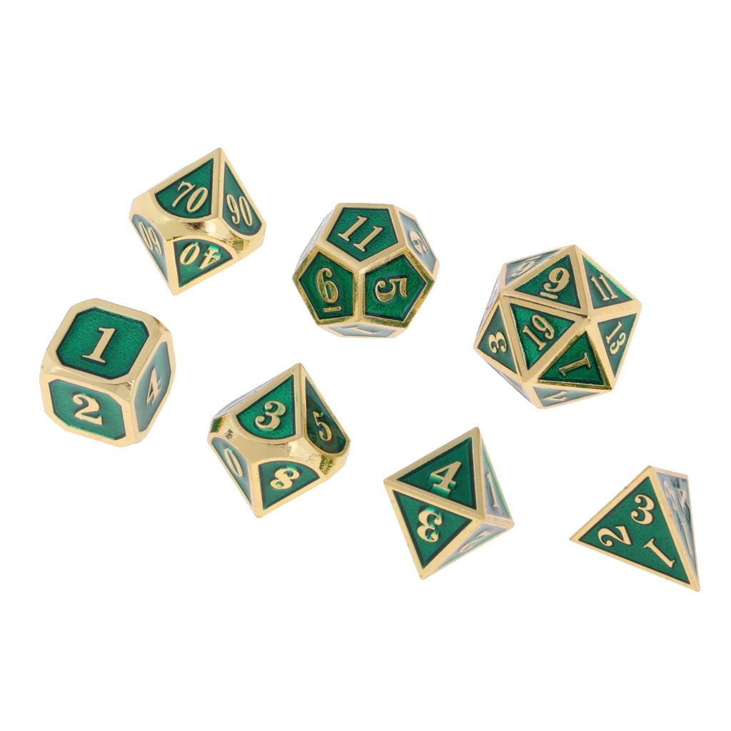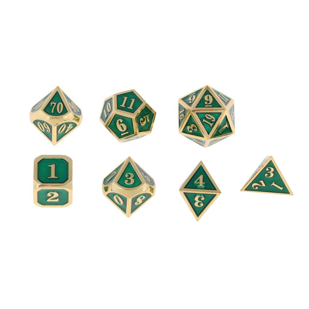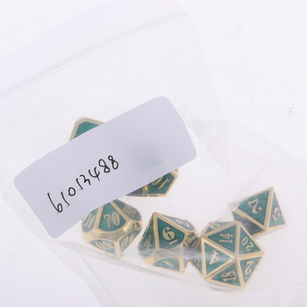 1 Set Dice comes with 7 different dice: 4, 6, 8, 10, 12, 20 sided dice and a percentage (%) dice.