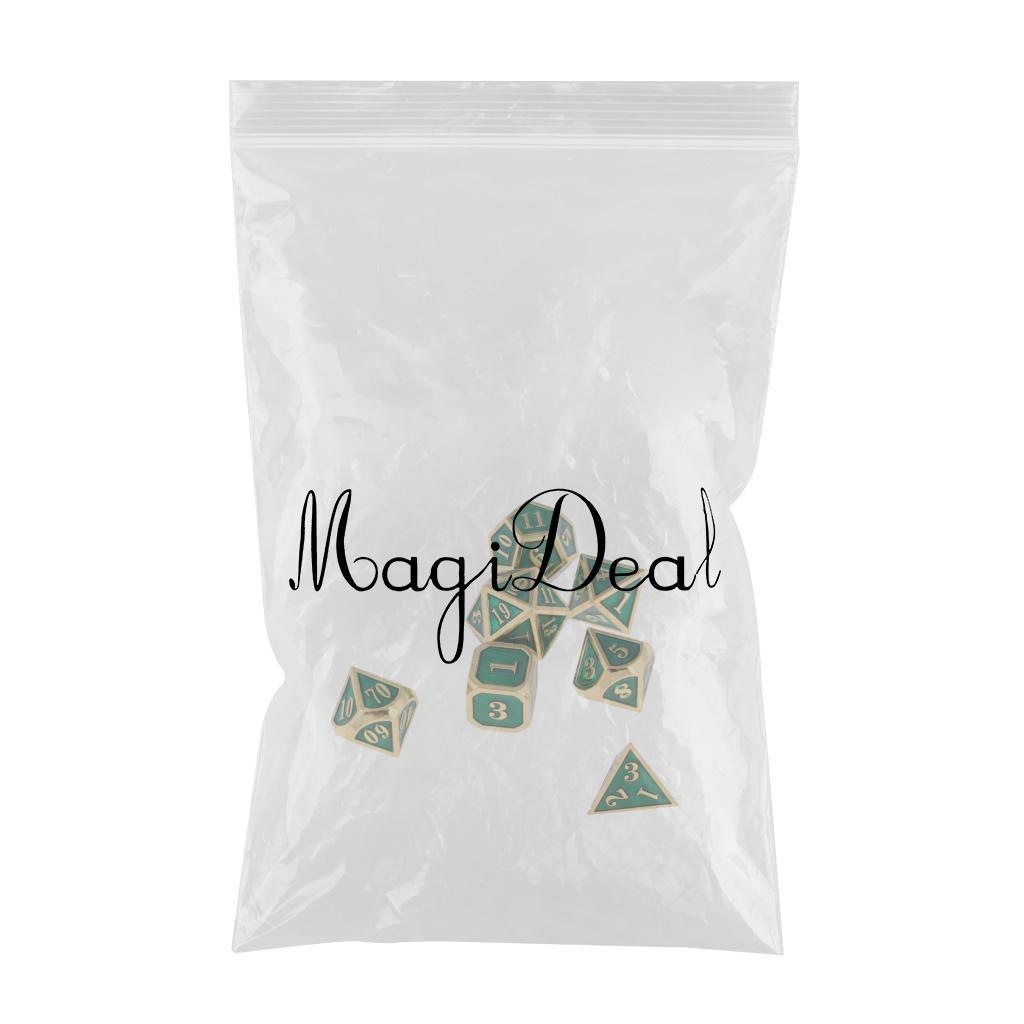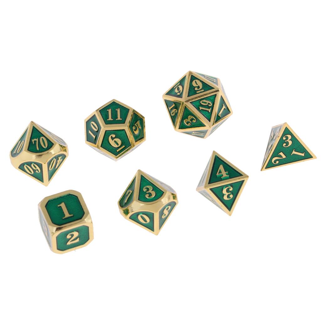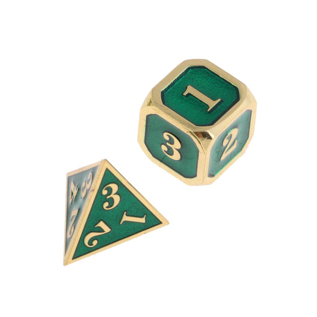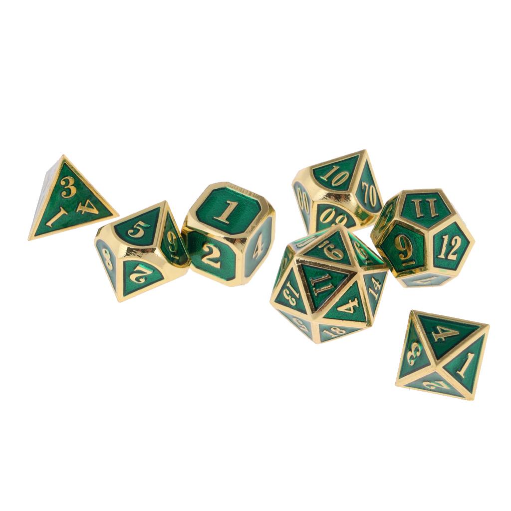 1 Set Dice comes with 7 different dice: 4, 6, 8, 10, 12, 20 sided dice and a percentage (%) dice.