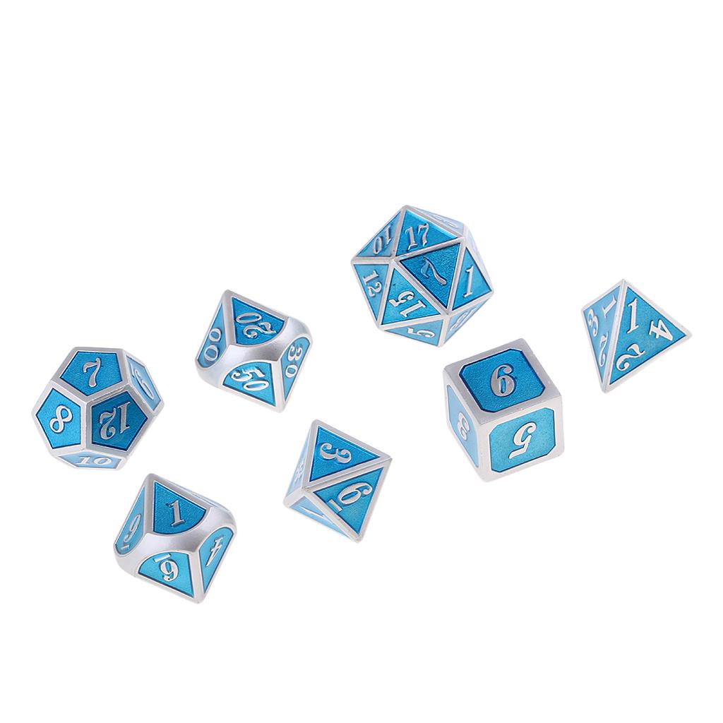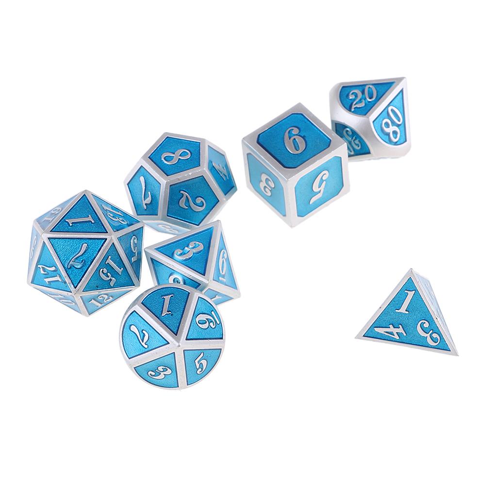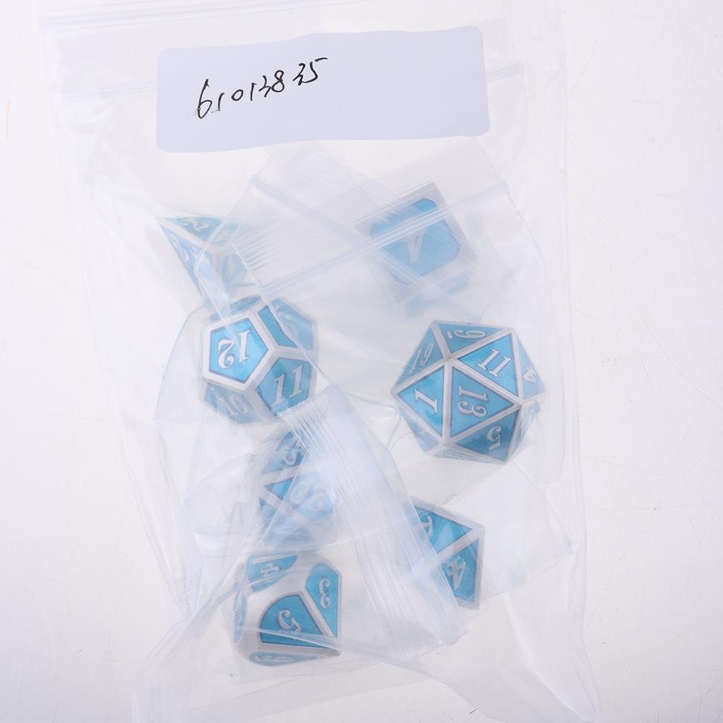 1 Set Dice comes with 7 different dice: 4, 6, 8, 10, 12, 20 sided dice and a percentage (%) dice.