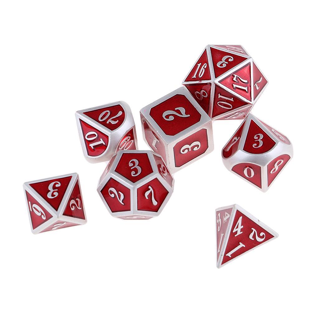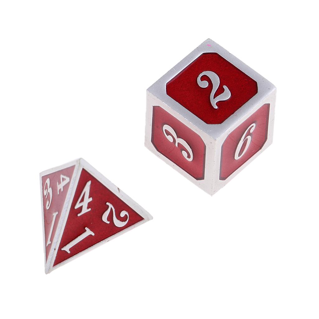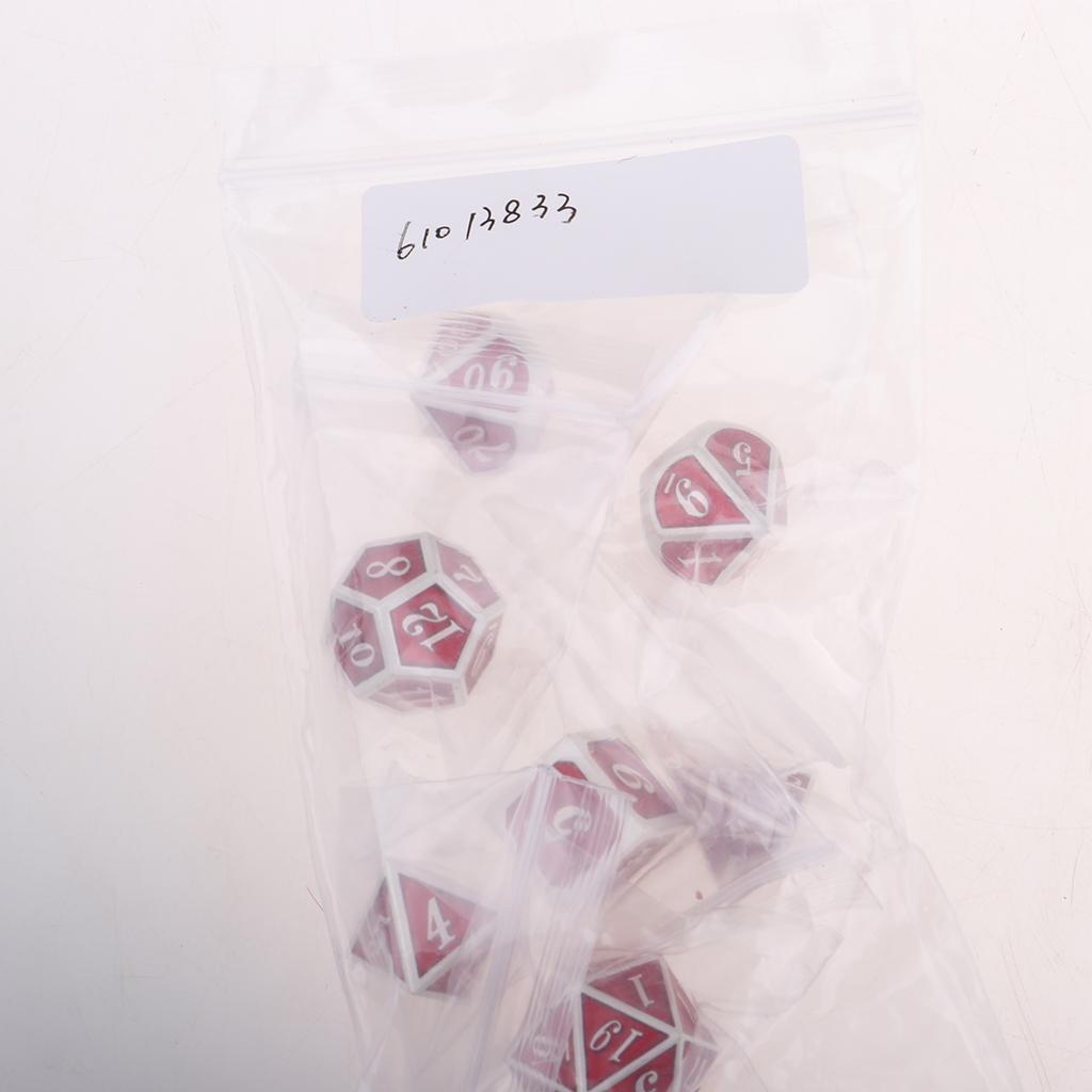 1 Set Dice comes with 7 different dice: 4, 6, 8, 10, 12, 20 sided dice and a percentage (%) dice.