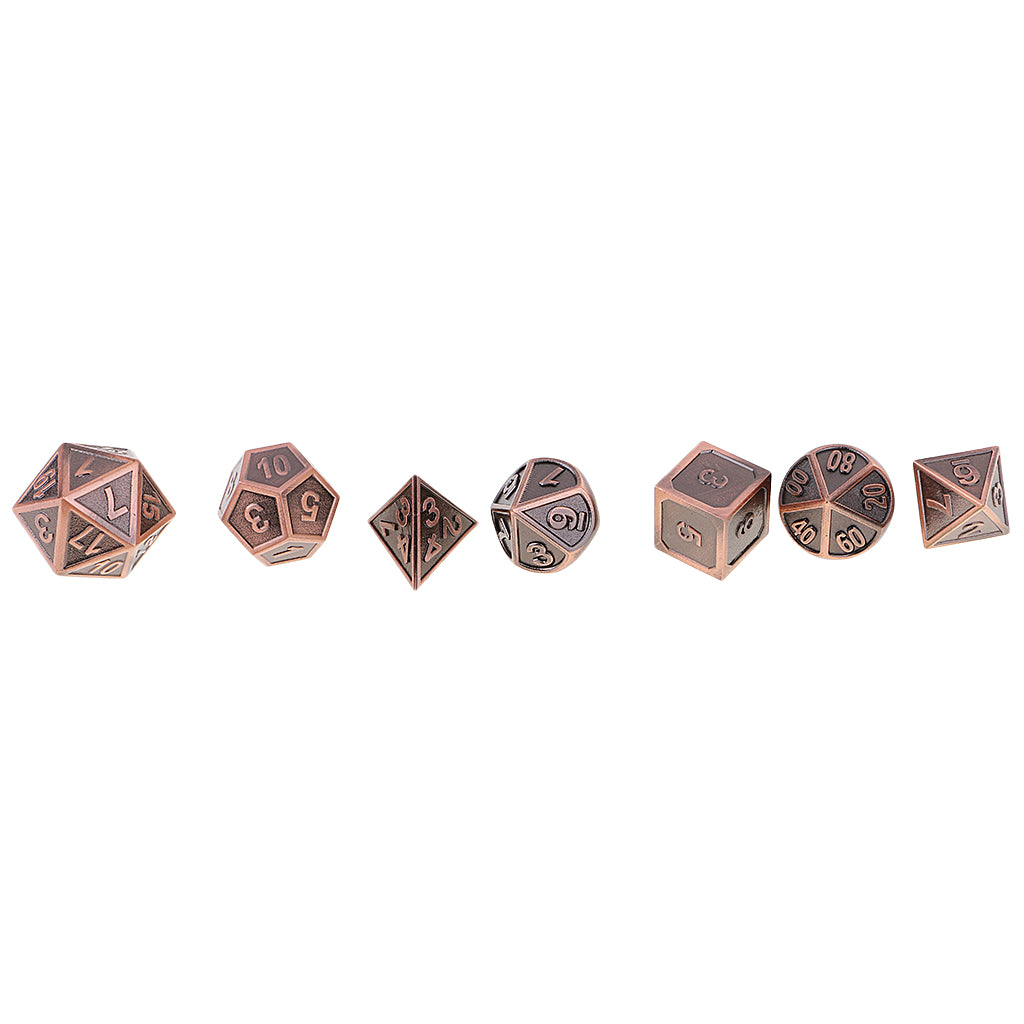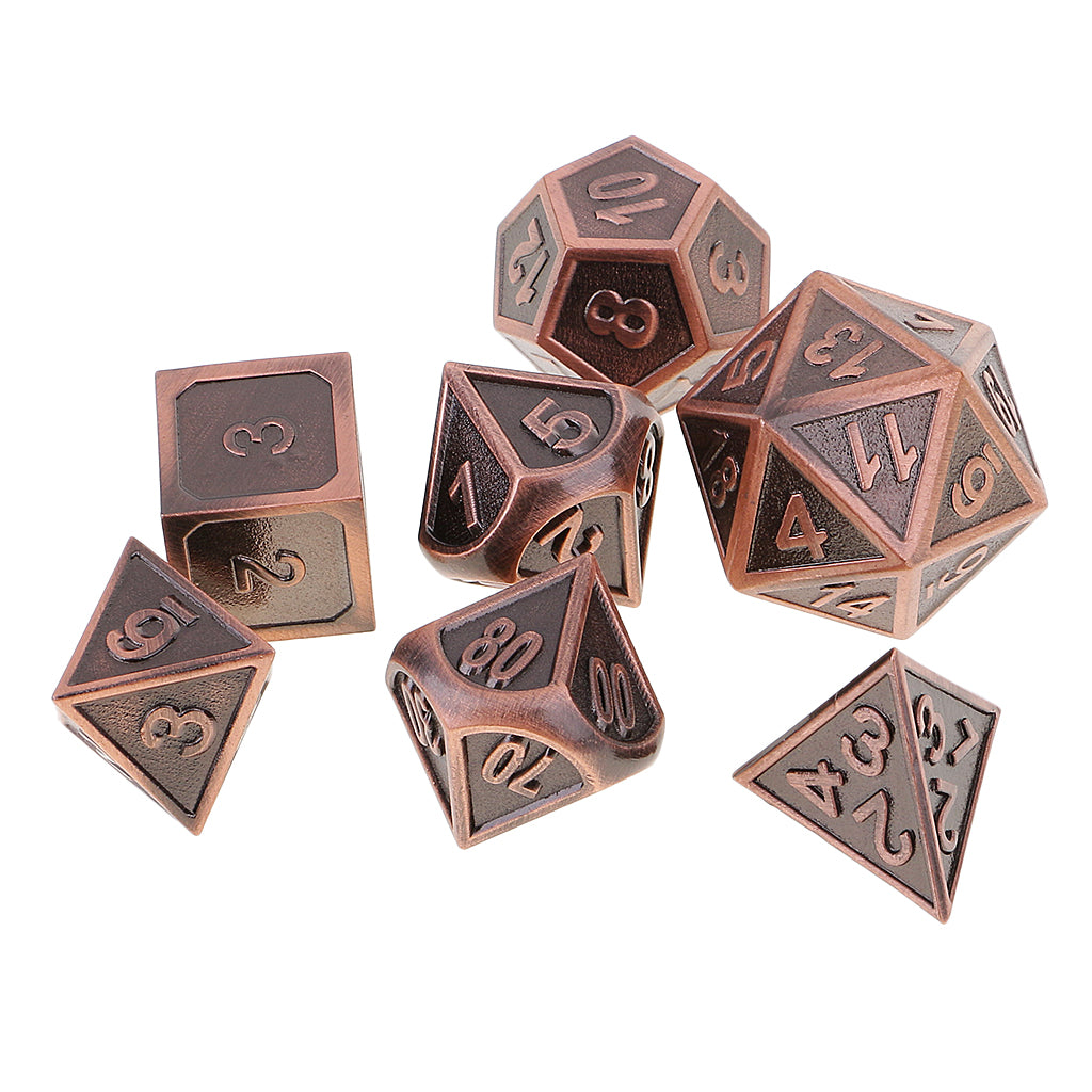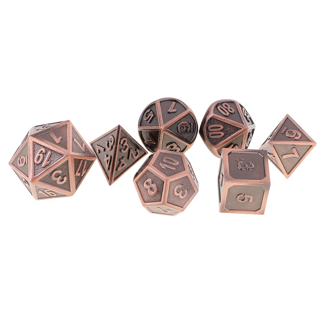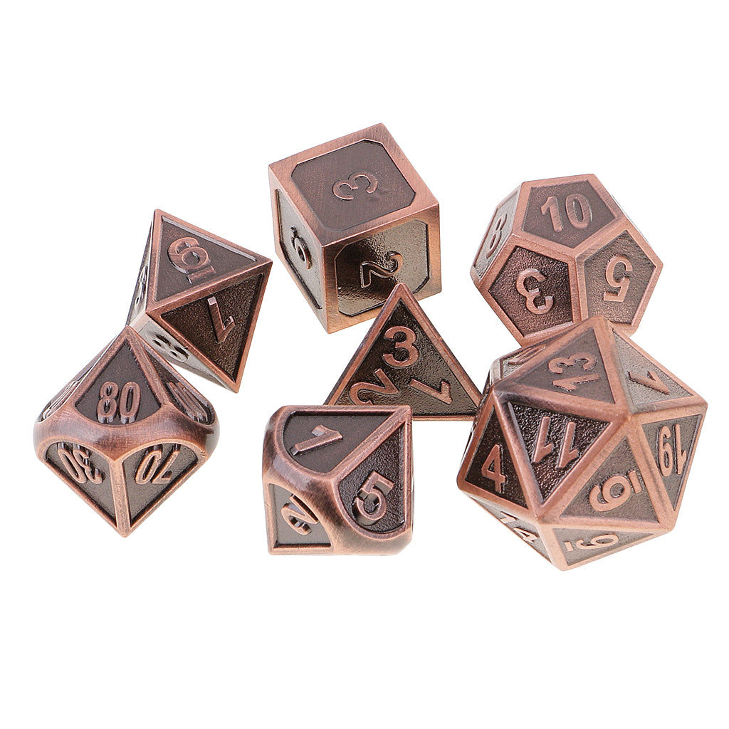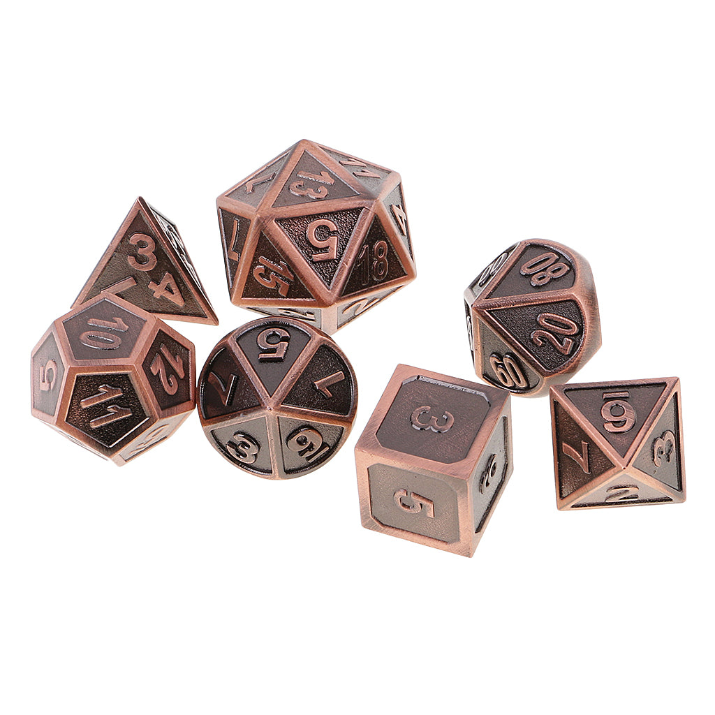 Durable 7 Pieces Multi Sided Dice D4-D20 for Party Board Card Games DIY, Copper Color 0.62inch