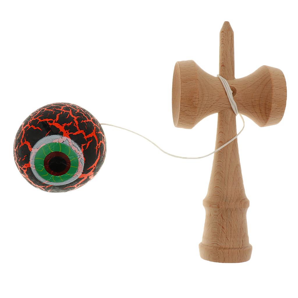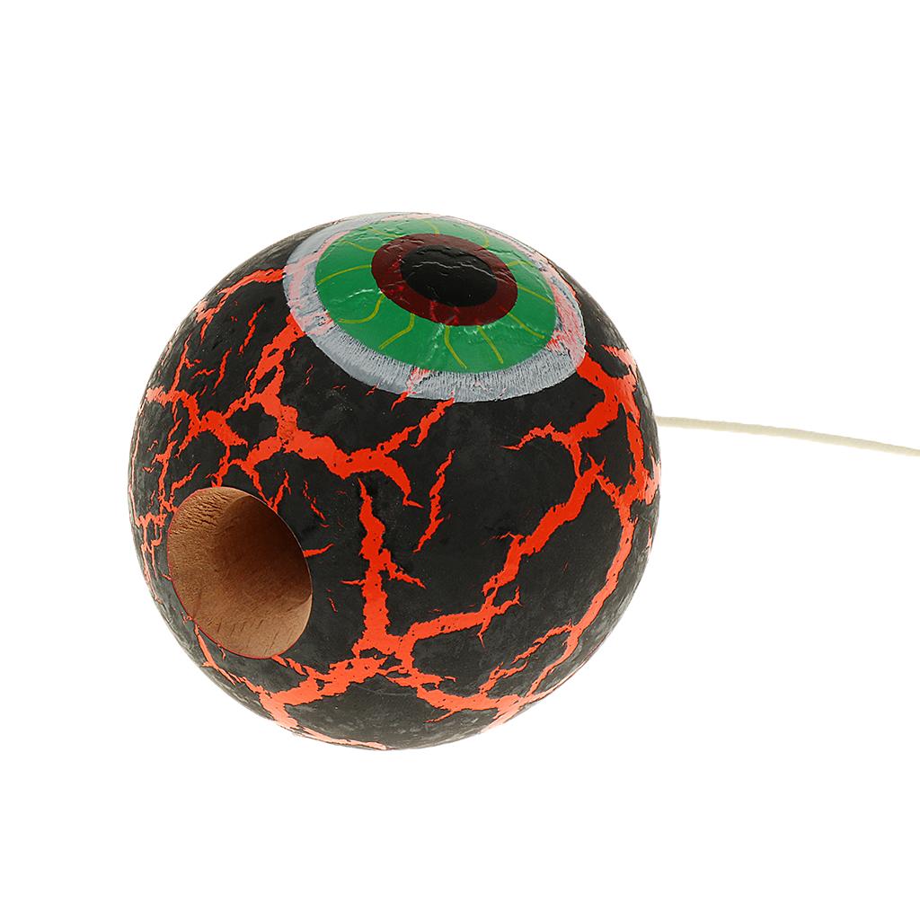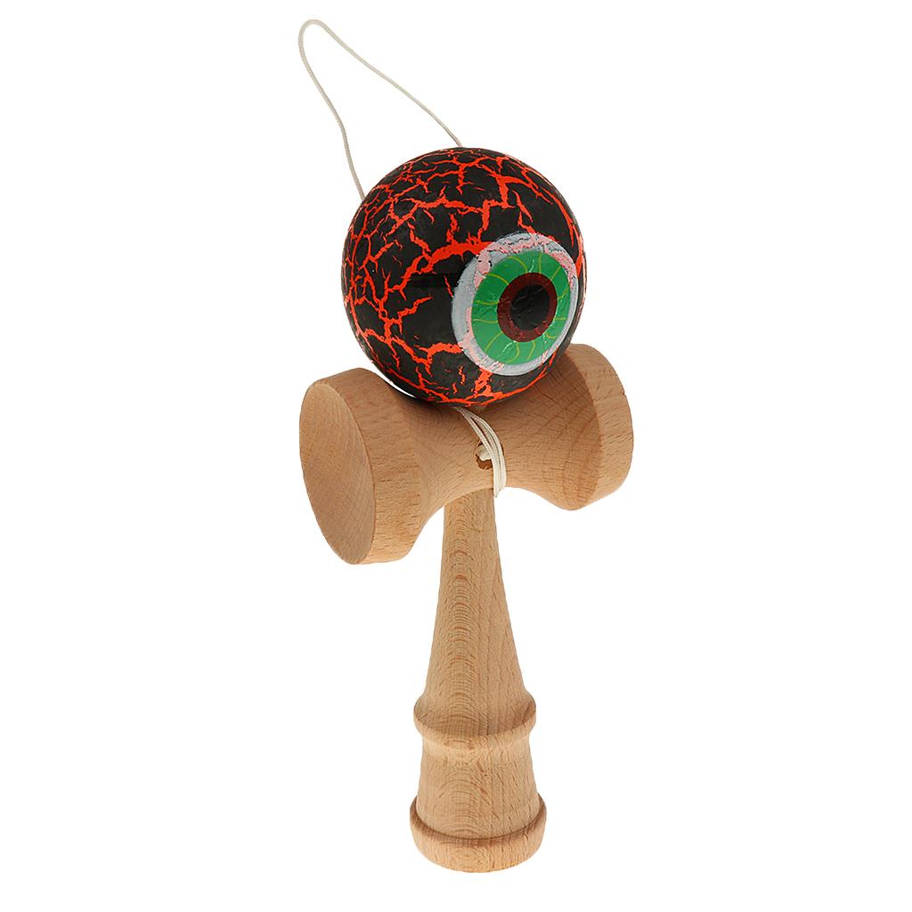 Eye Shape Crackle Paint Wooden Kendama Kids Skill Ball Game Toy Black&Orange