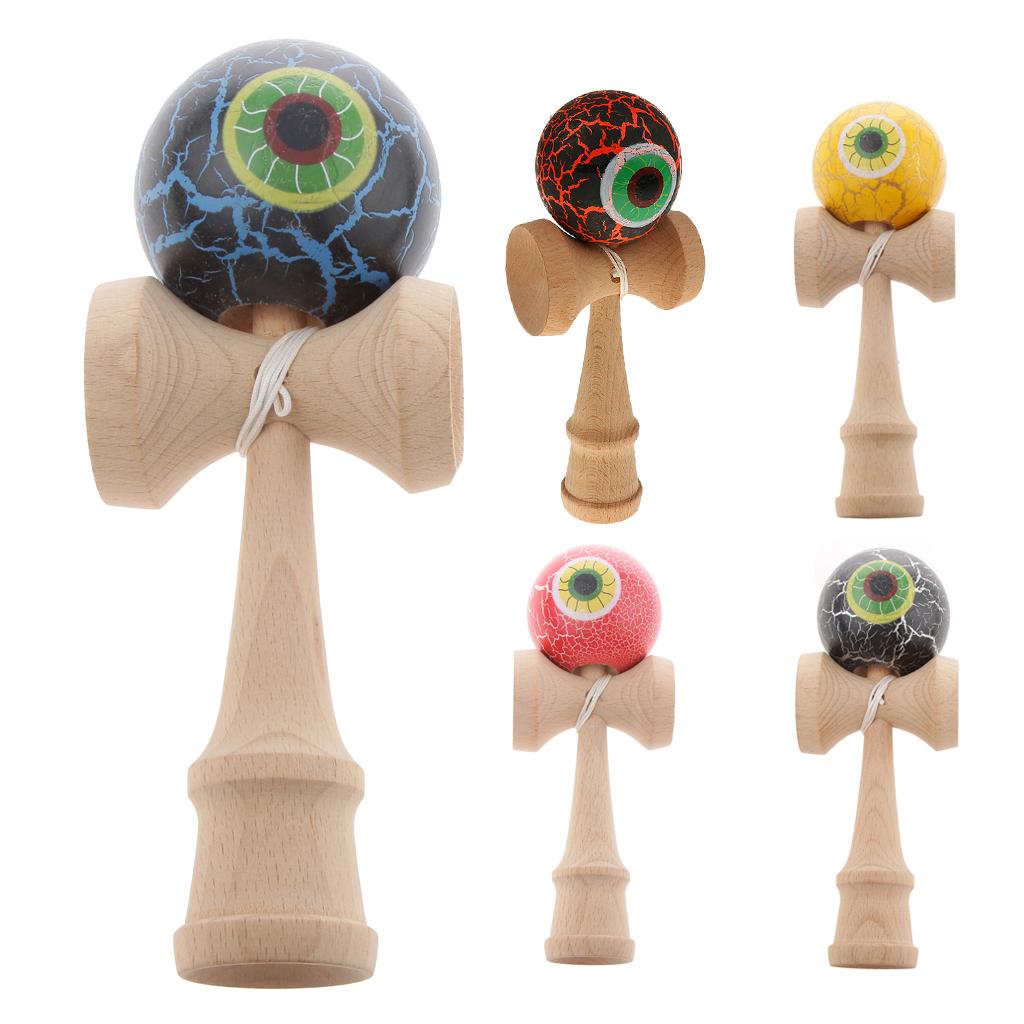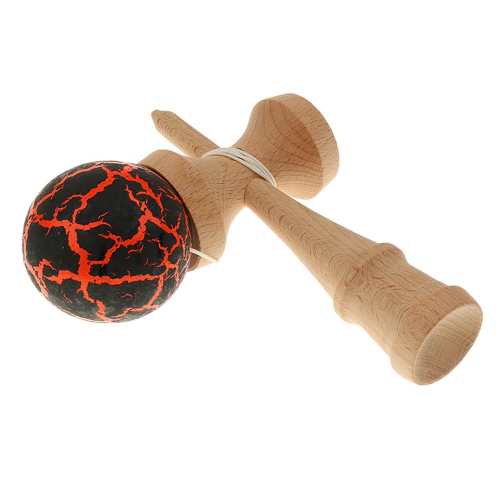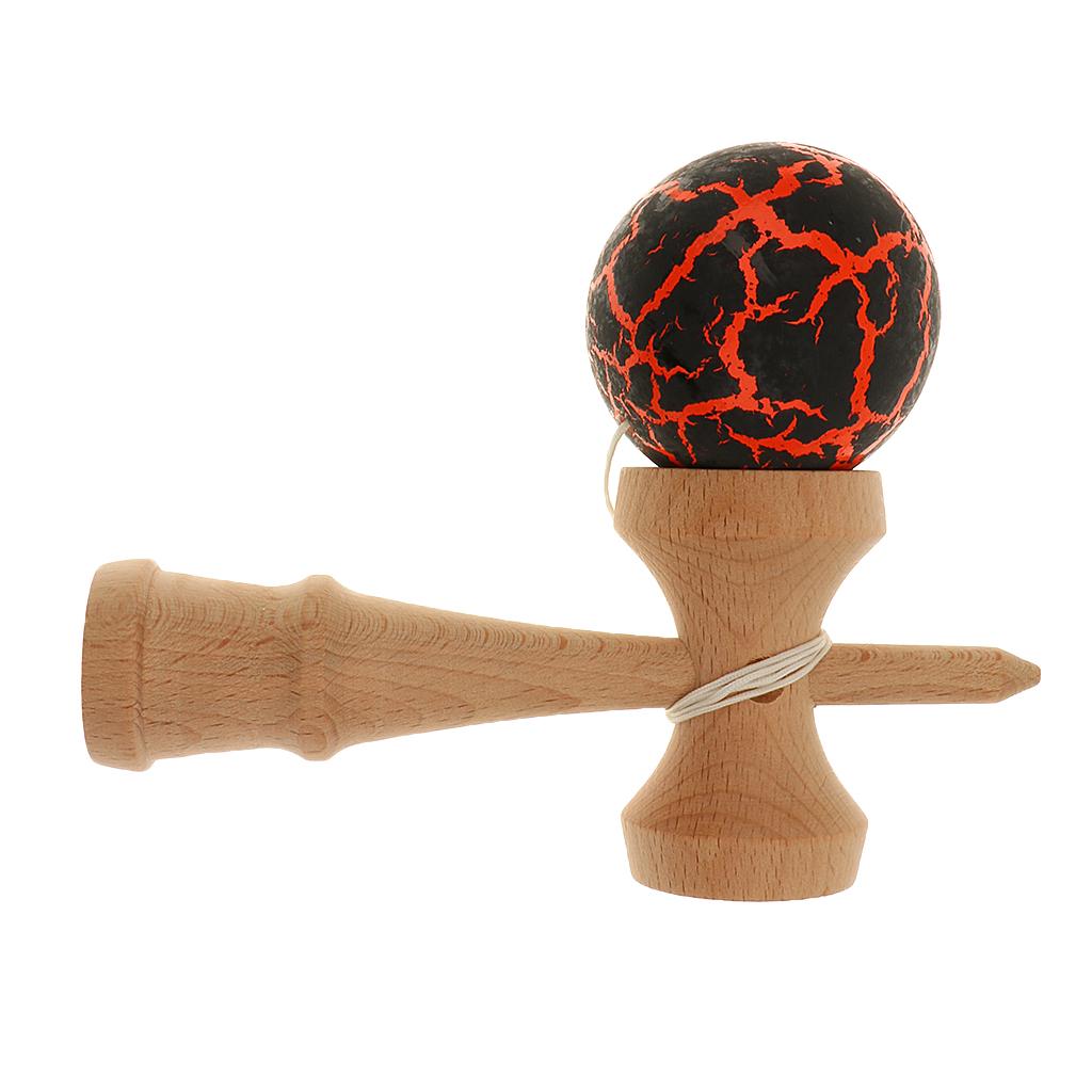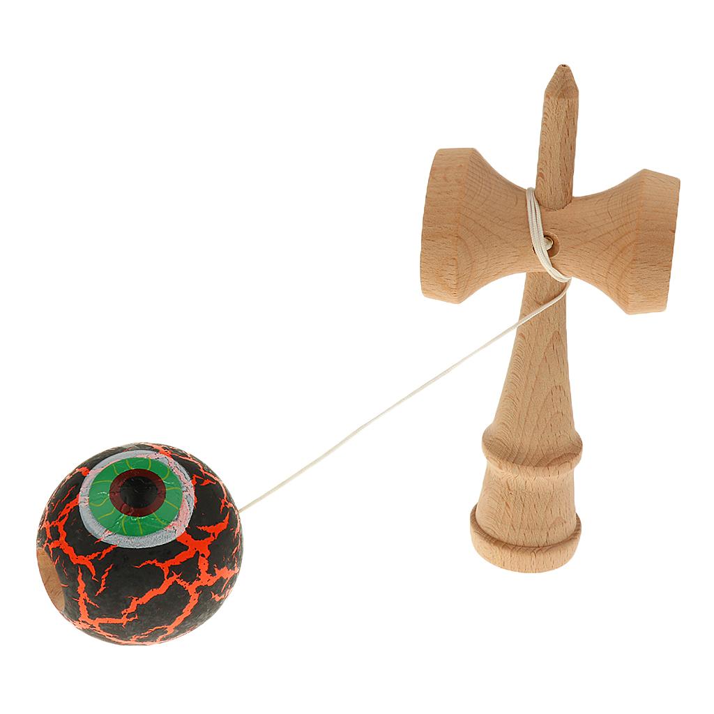 Eye Shape Crackle Paint Wooden Kendama Kids Skill Ball Game Toy Black&Orange