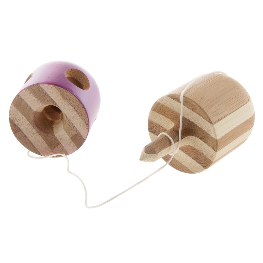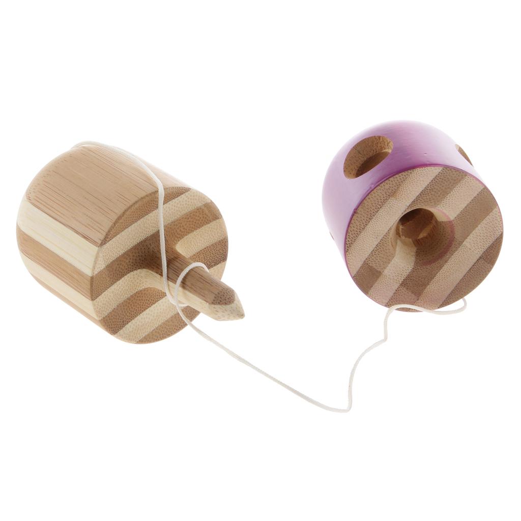 Japanese Traditional 5 Hole Bamboo Capsule Pill Kendama Bilboquet Toy Purple