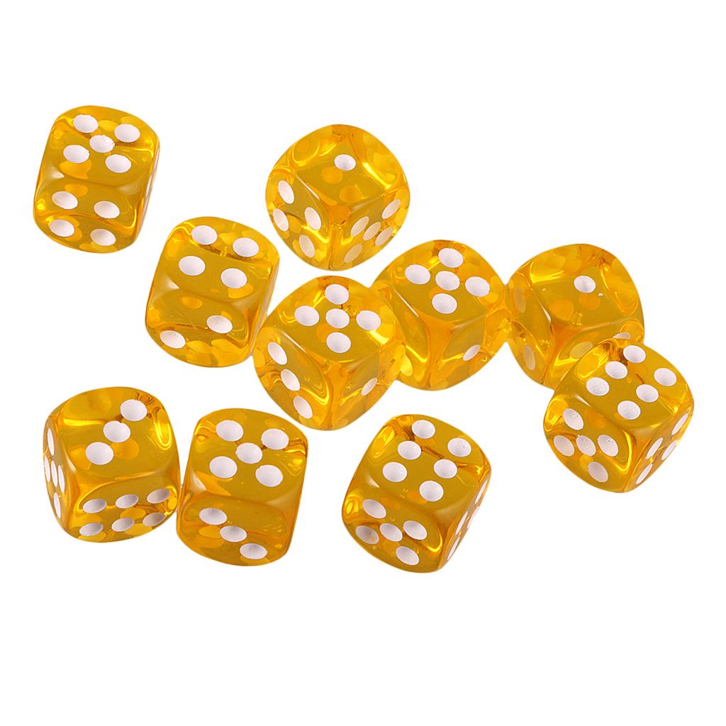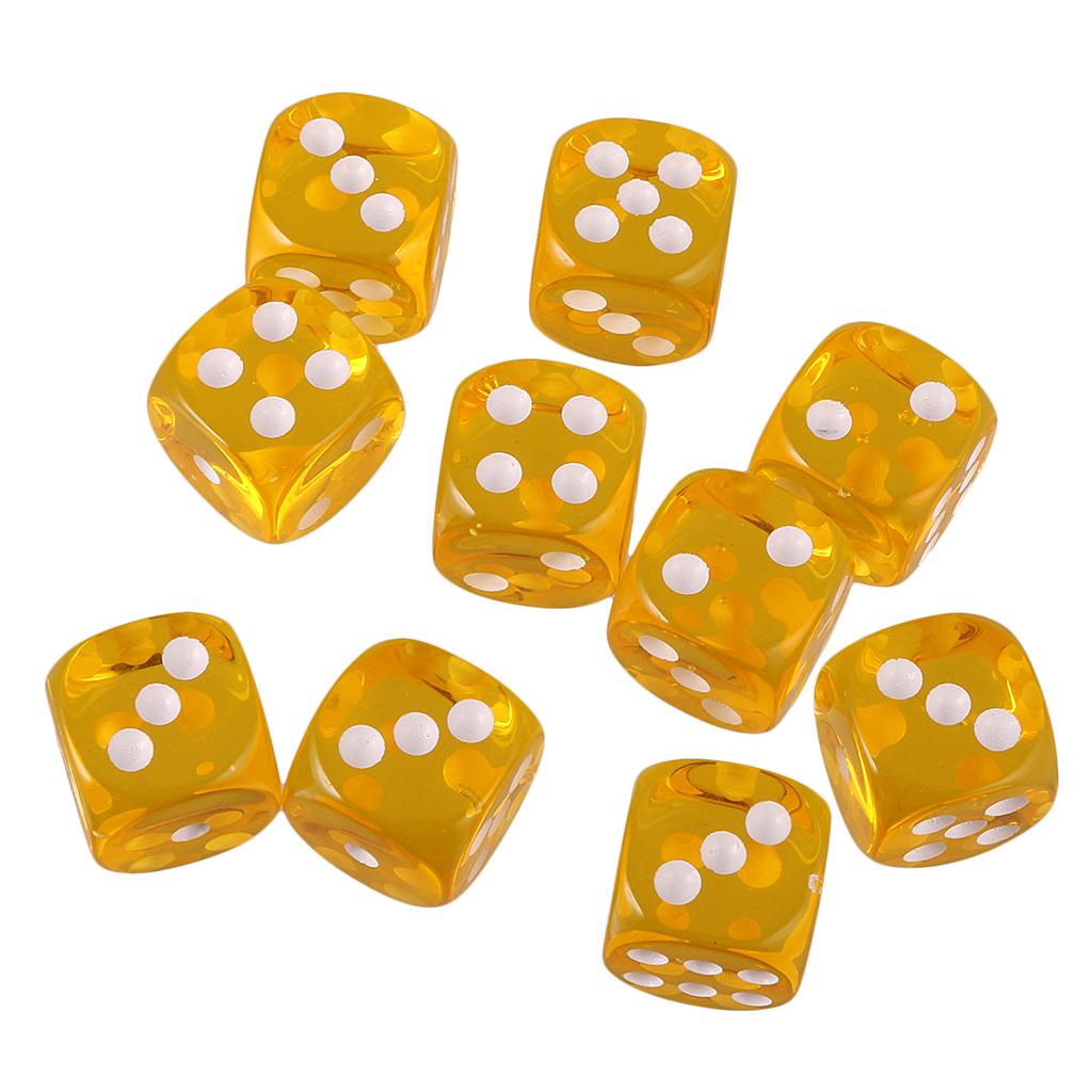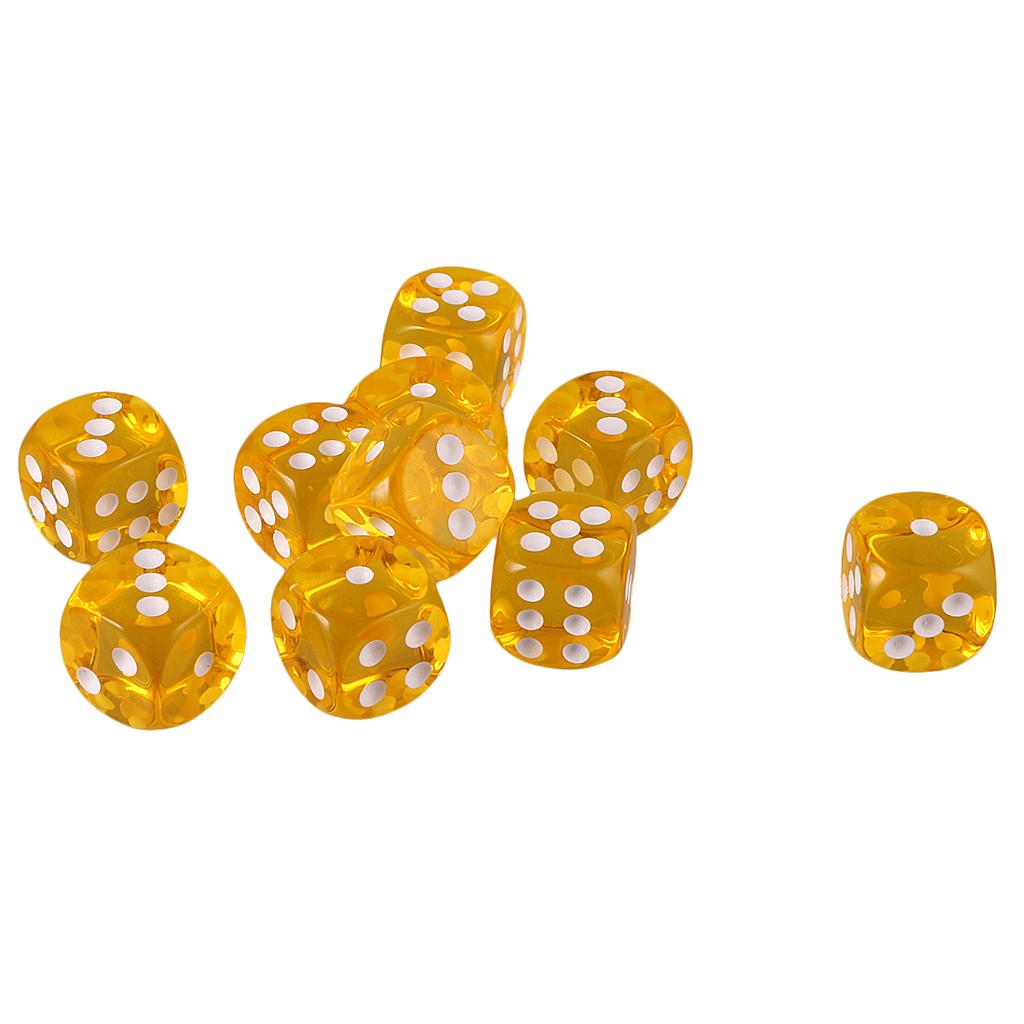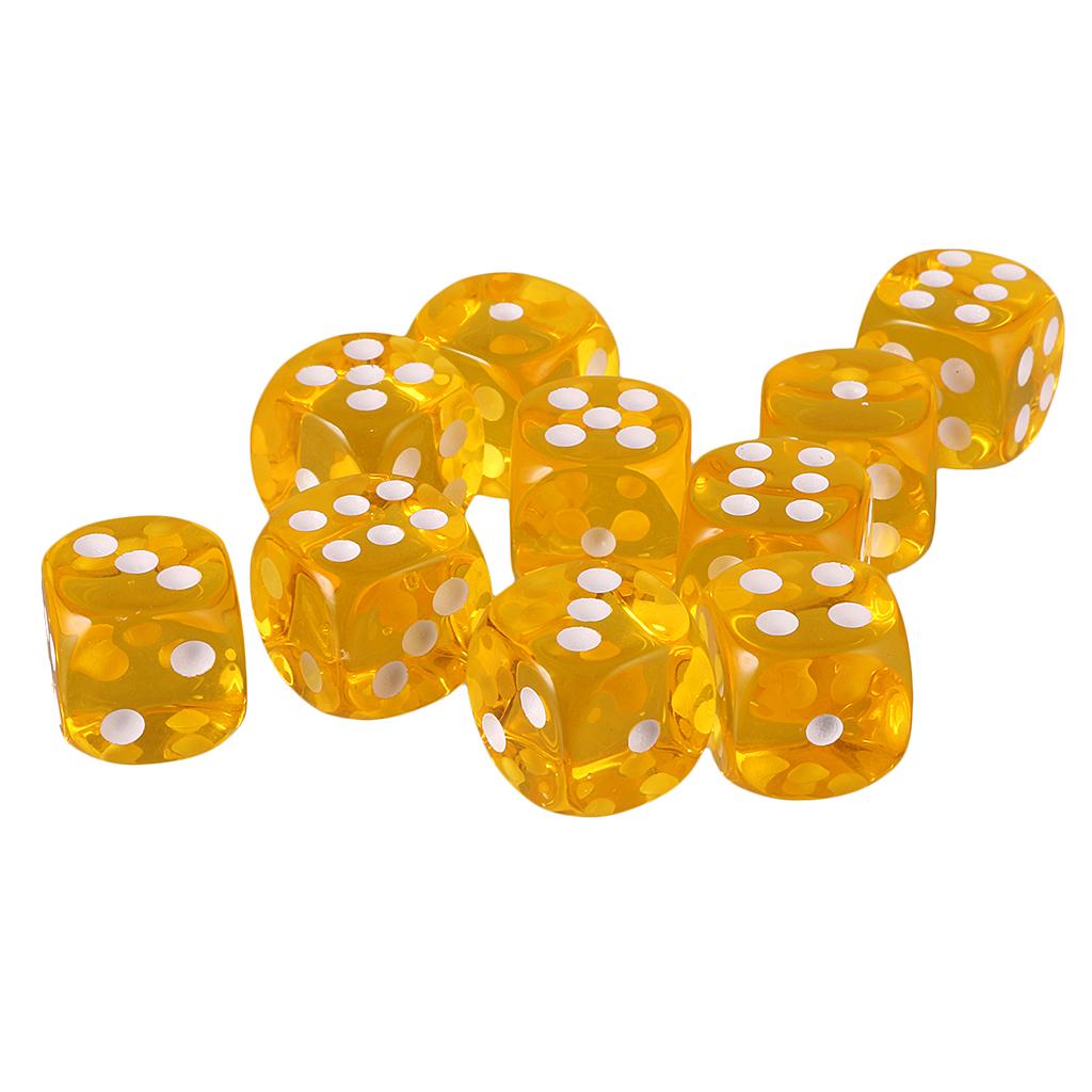 Pack of 10 Acrylic Six Sided D6 Dice for D&D TRPG Party Board Game Toys Yellow