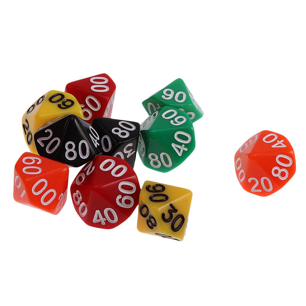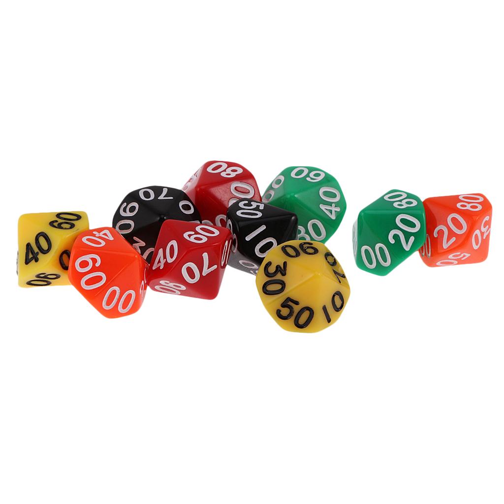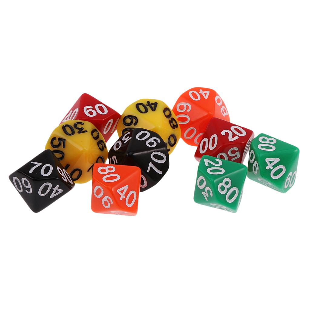Pack of 10 Acrylic Ten Sided D(00-90) Dices for D&D TRPG Party Game Toys