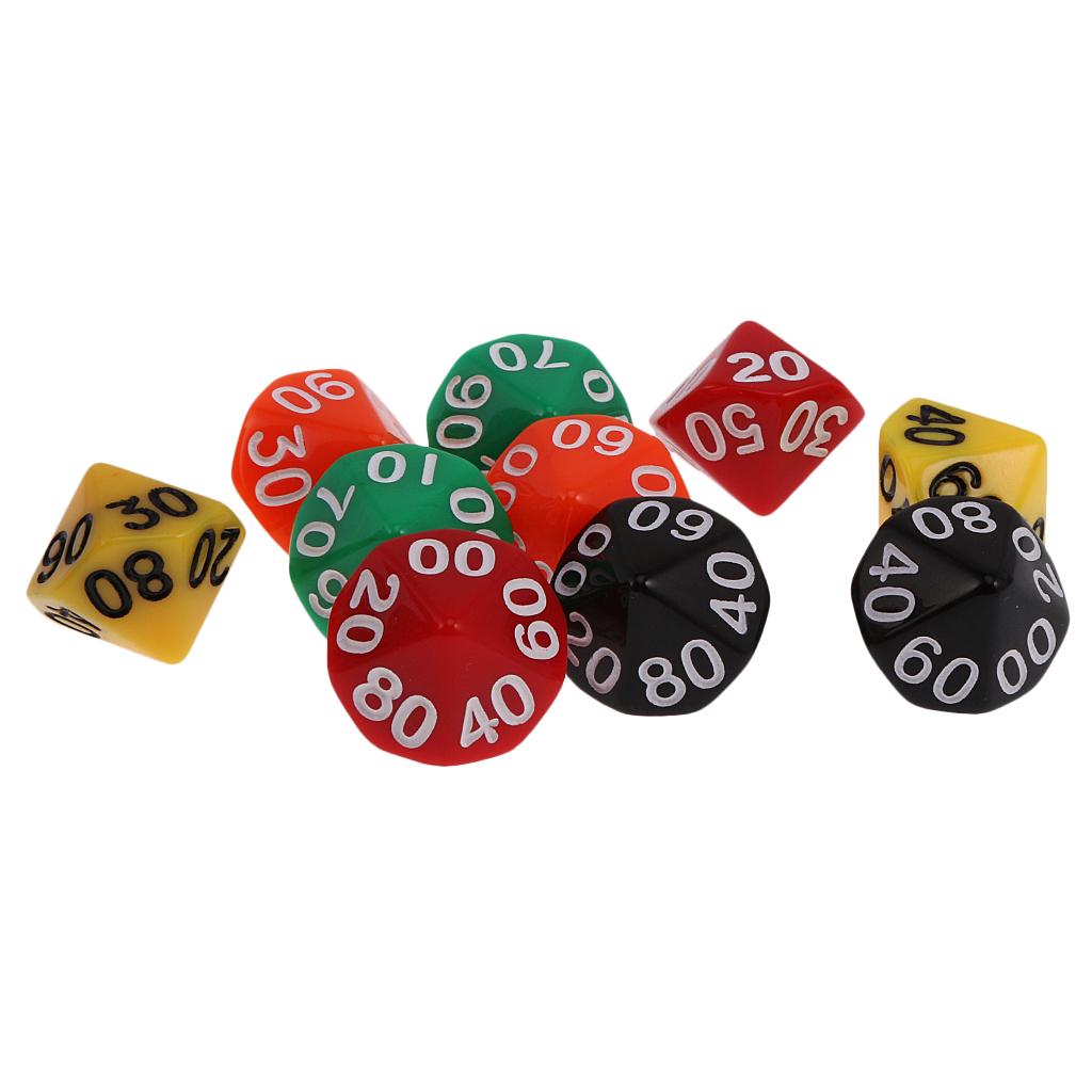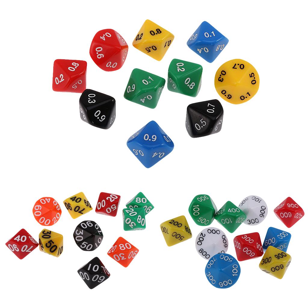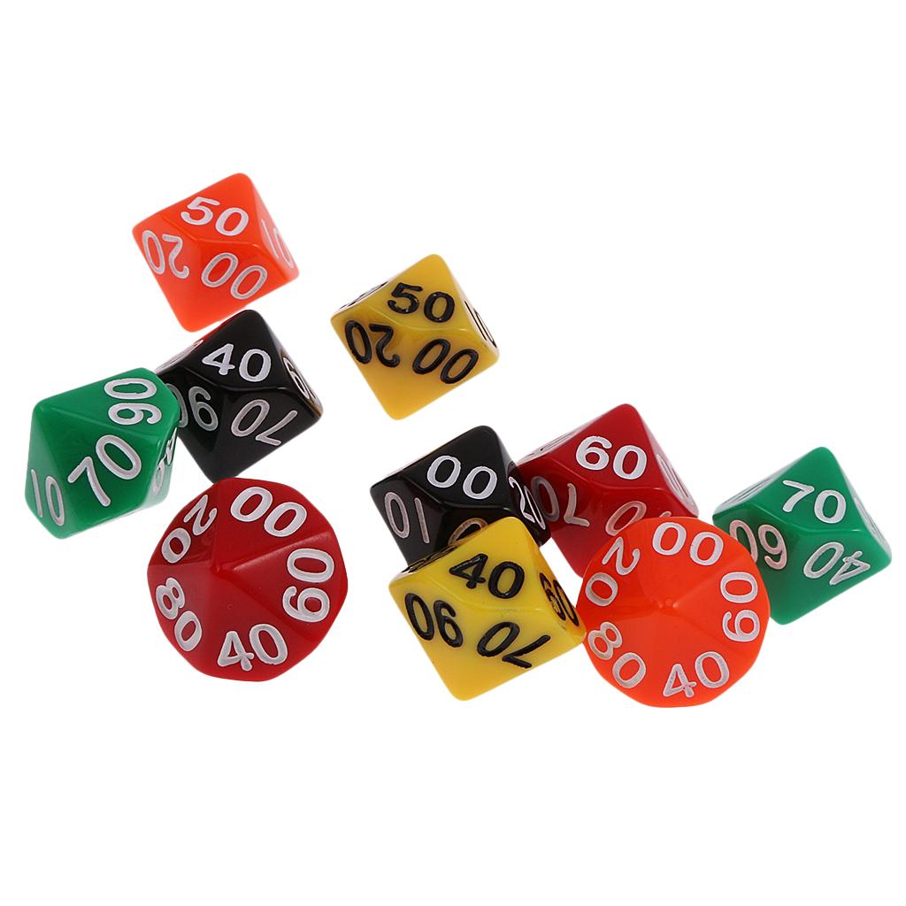 Pack of 10 Acrylic Ten Sided D(00-90) Dices for D&D TRPG Party Game Toys