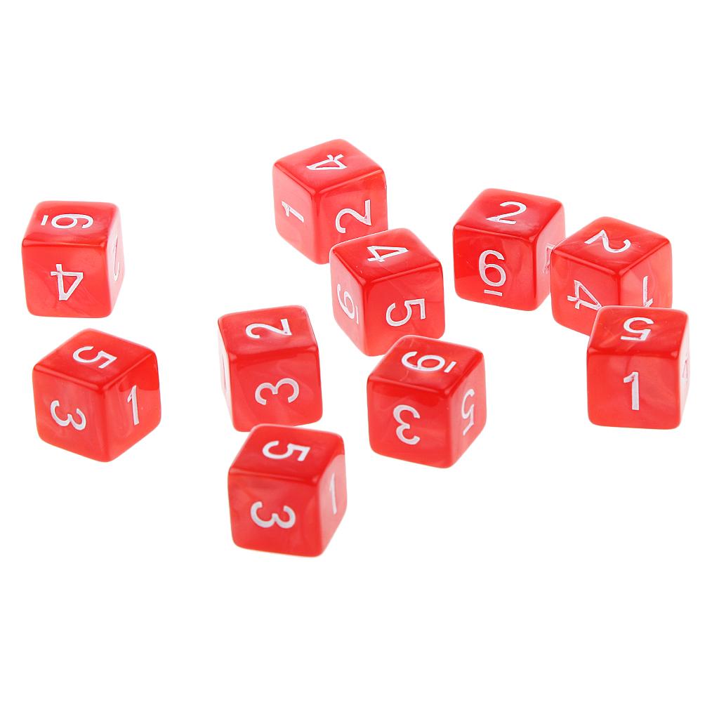 Pack of 10pcs Pearl Red D6 Six Sided Game Dice D&D TRPG Games Party Supplies Toys