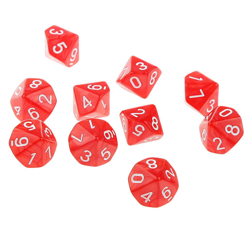 Pack of 10pcs Ten Sided Dice D10 Playing Dungeons & Dragons D&D TRPG Board Game Red