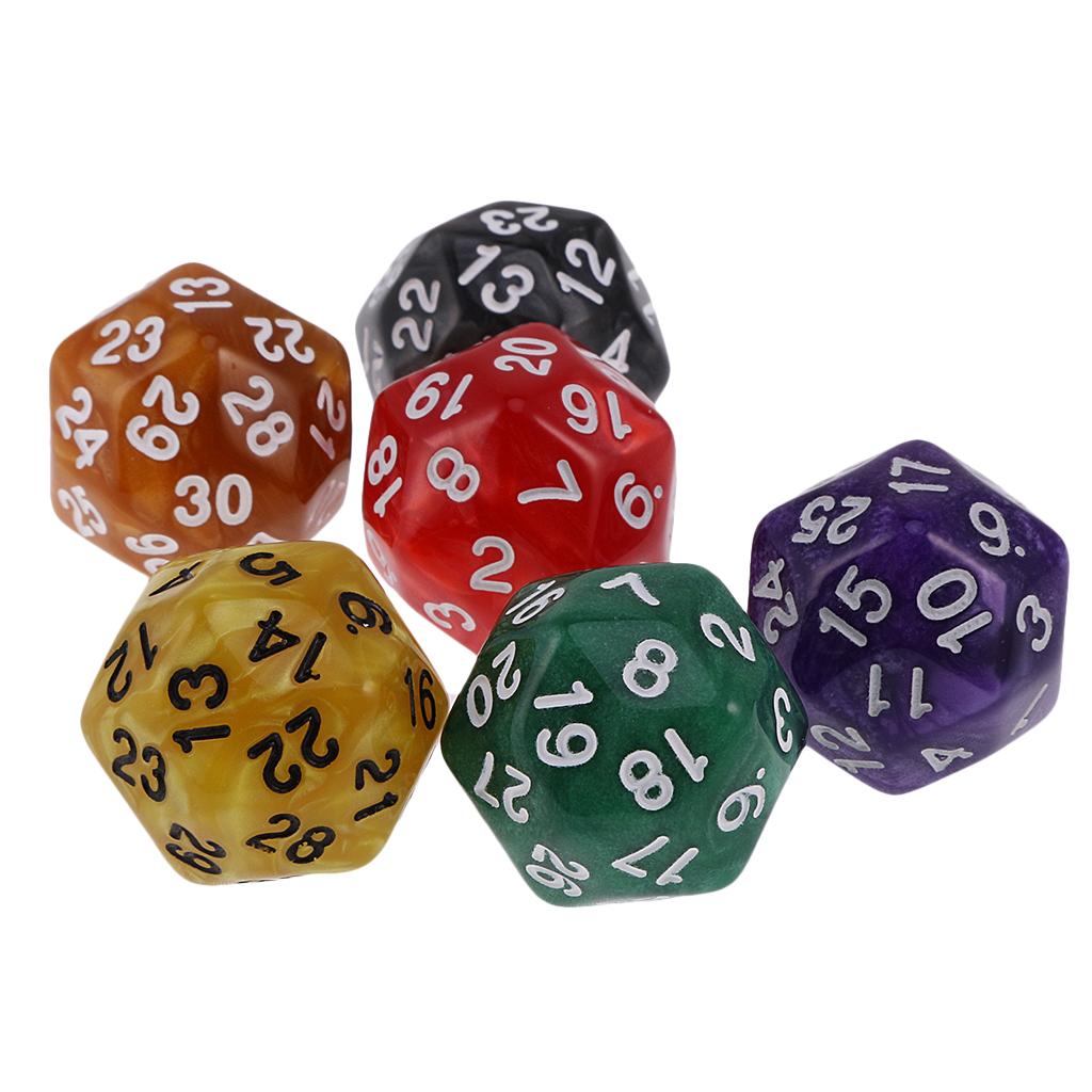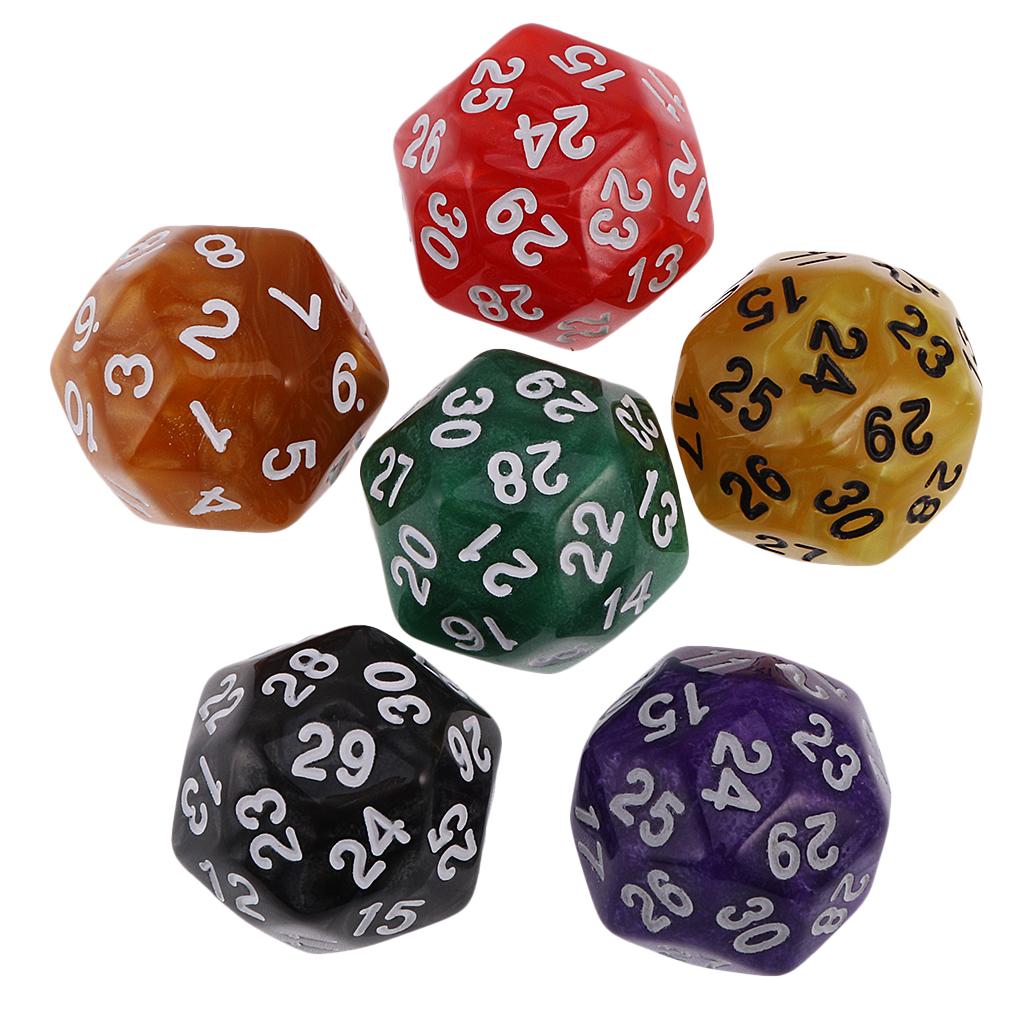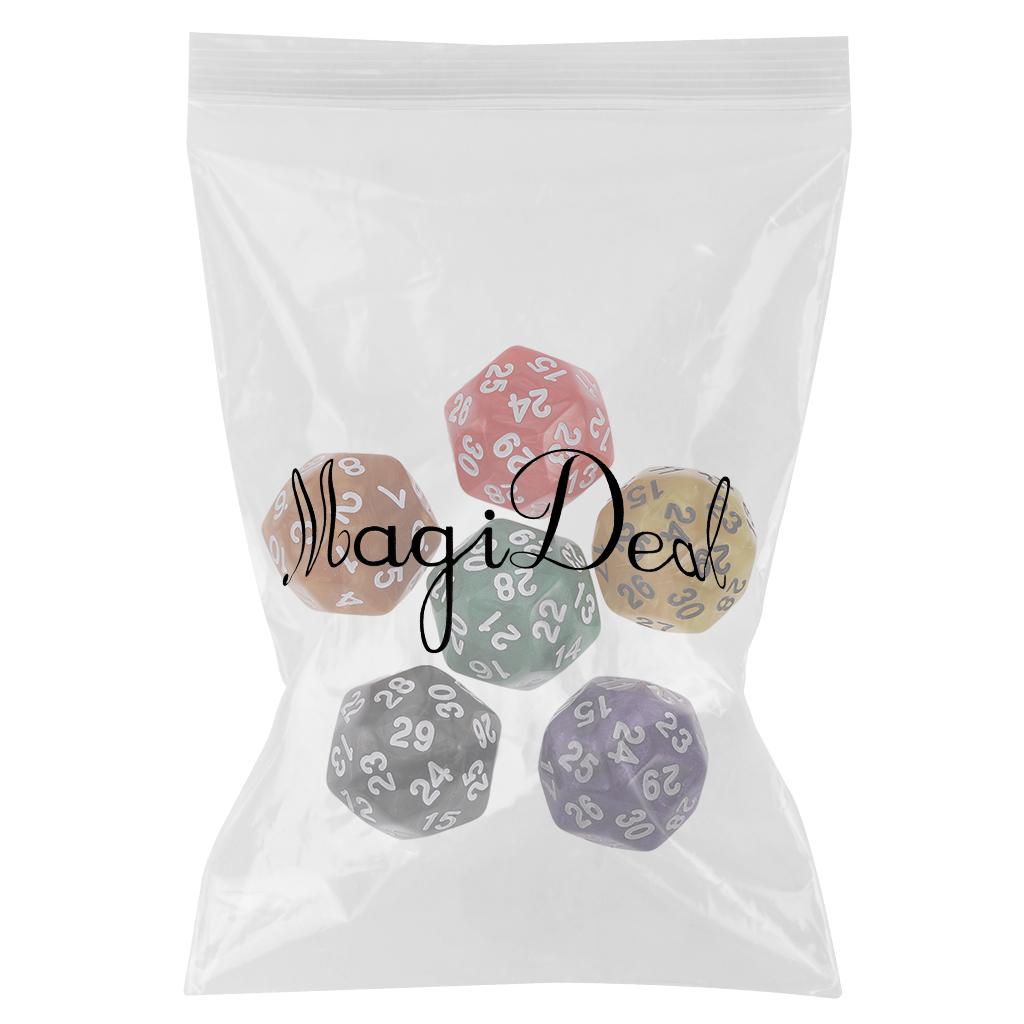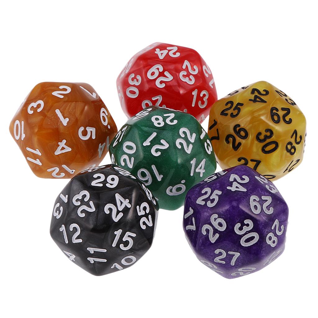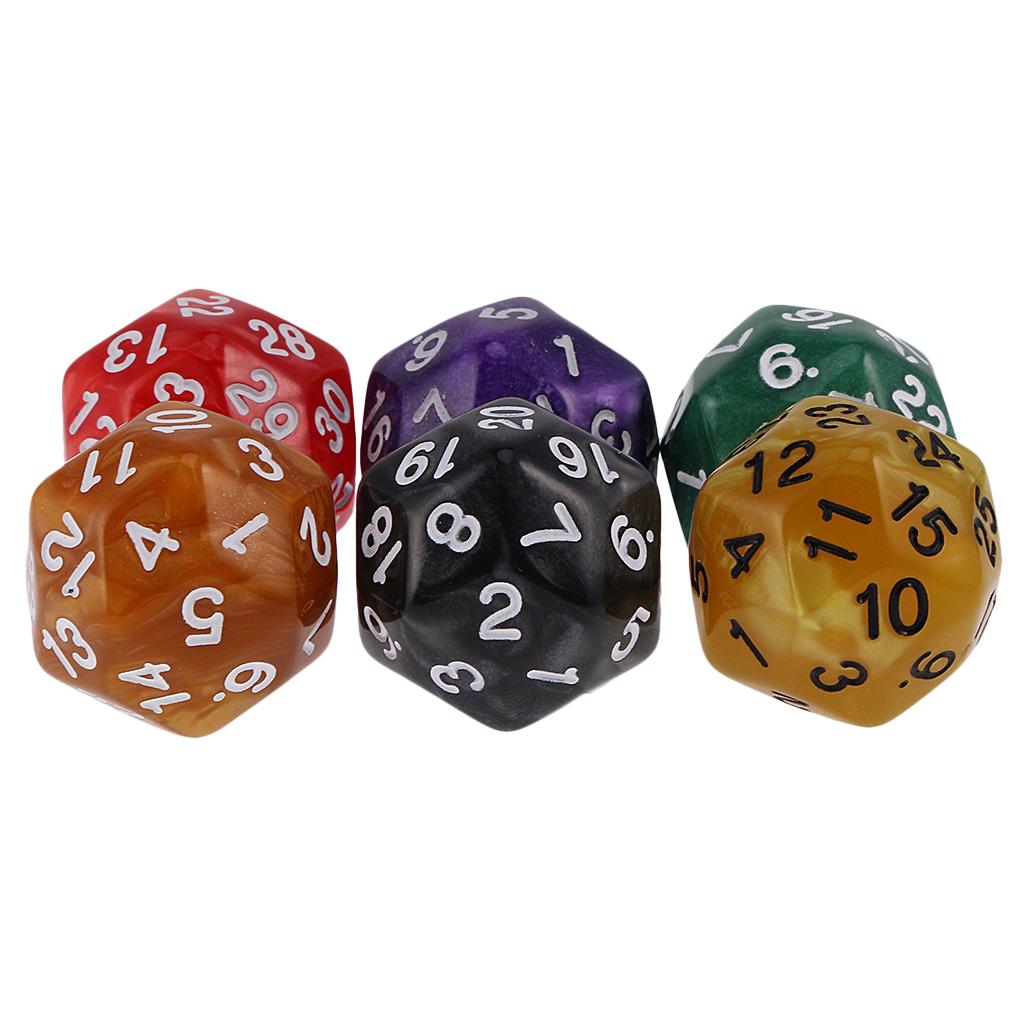 Pack of 6pcs Multi Sided Dice for D&D TRPG Party Board Game Toys Pearl D30