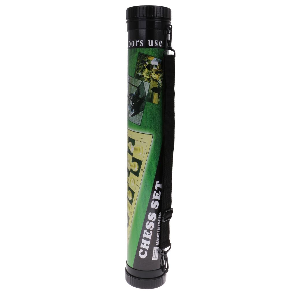 Portable Travel Chess Set Roll Up Mat in Tube Shaped Box Shoulder Strap L