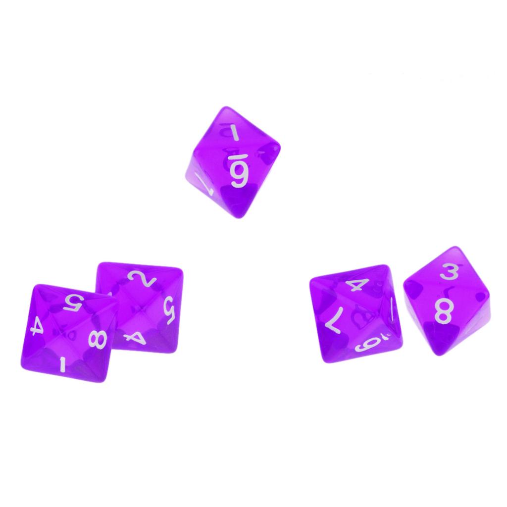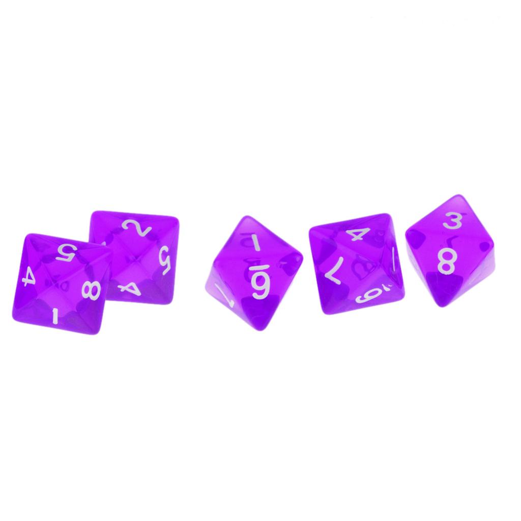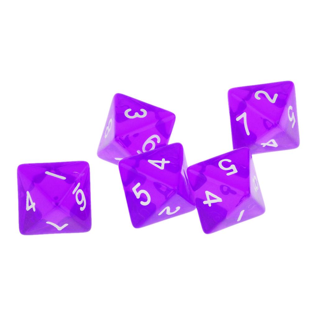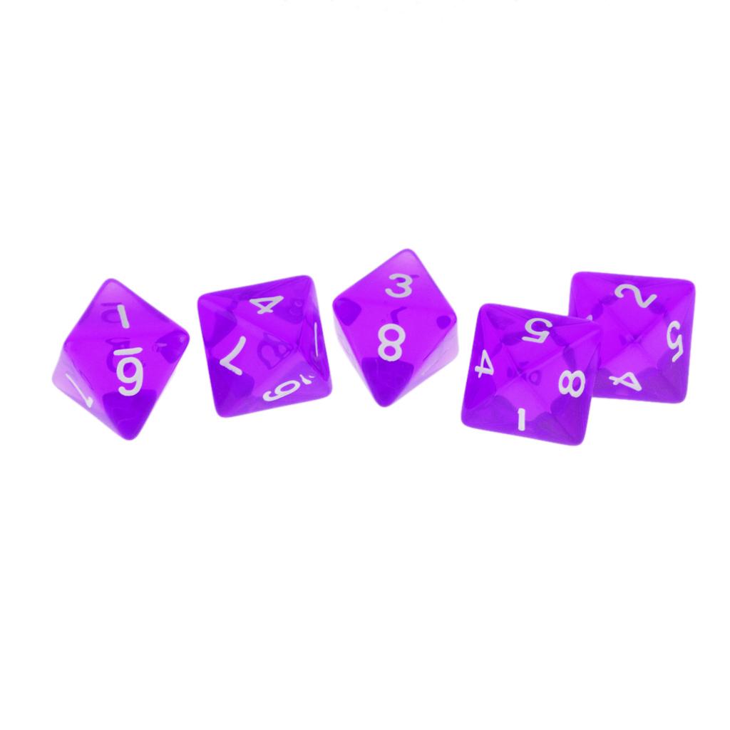 Purple Multi Sided Dice Set of 5 D8 Dungeons & Dragons TRPG Games Roleplay