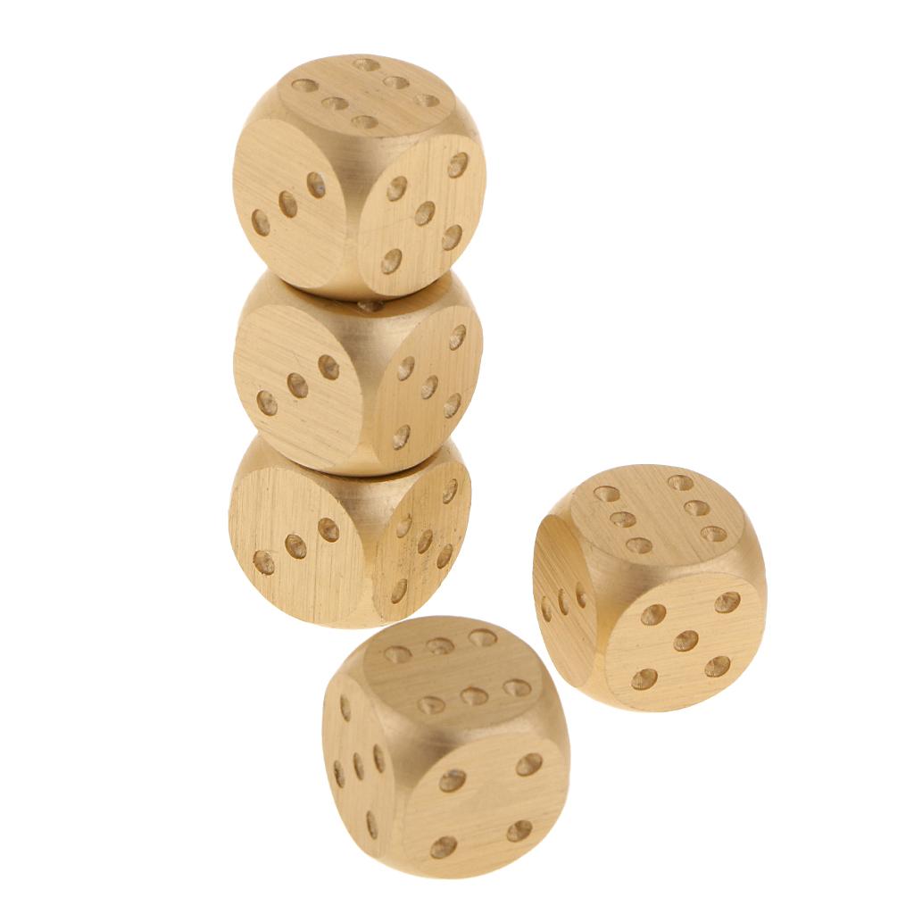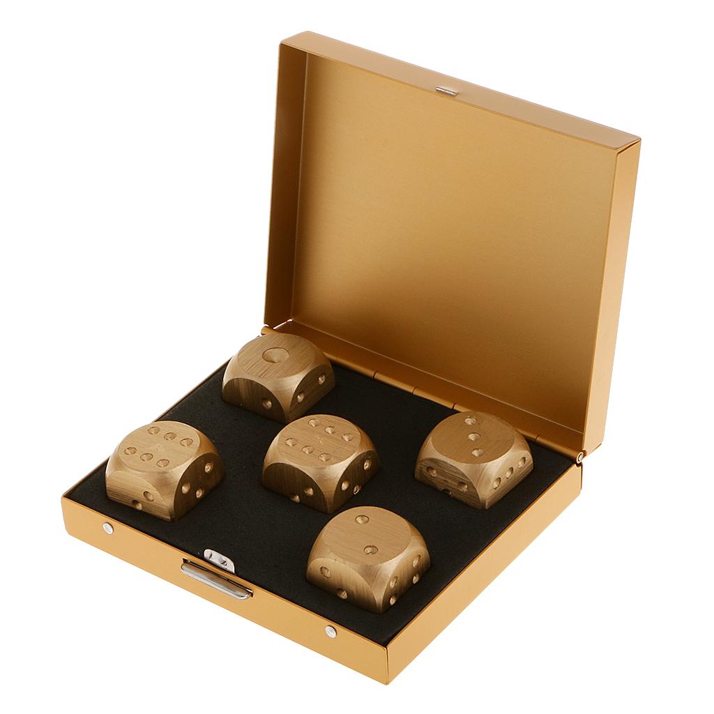 Set of 5 Aluminum Alloy Six Sided Square Golden Dice with Square Box
