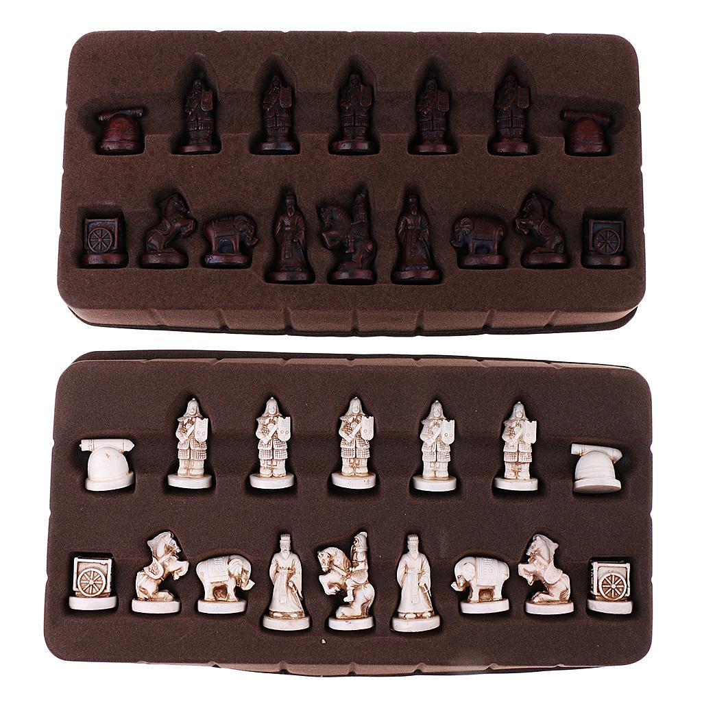 Vintage Chinese Traditional Chess with Folding Imitation Leather Chess Board Stereoscopic Chess Pieces Set