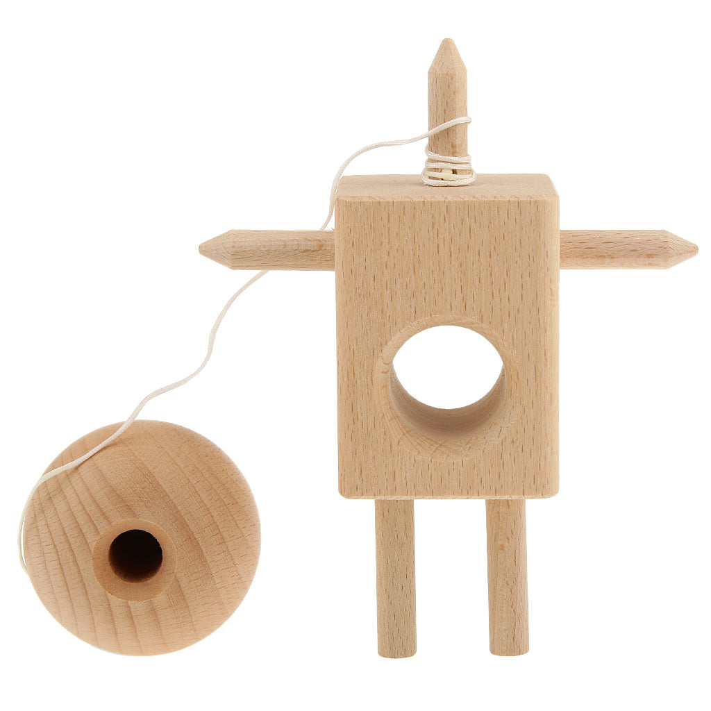 Wooden Robot Shape Kendama Toy Kids Ball Games Wood Color