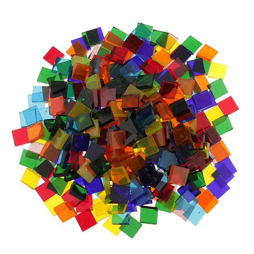 250 Pieces Square Shape Mixed Color Clear Glass Mosaic Tiles Tessera for Mosaic Making Crafts Supplies 10x10mm