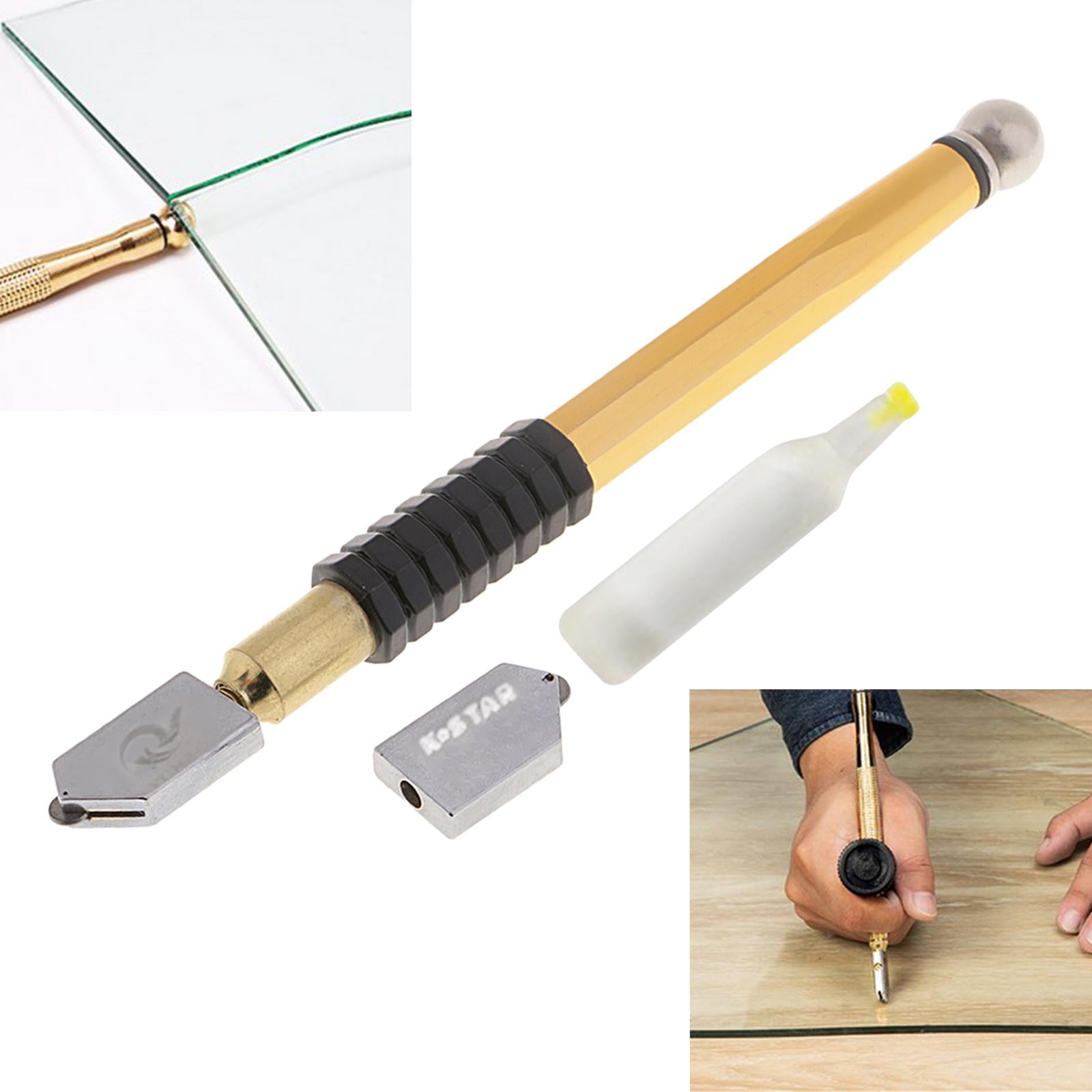 This Lubricated Oil Feed Glass Cutter has a hardened alloy steel cutting wheel that is great for cutting glass, mirrors and stained glasses.