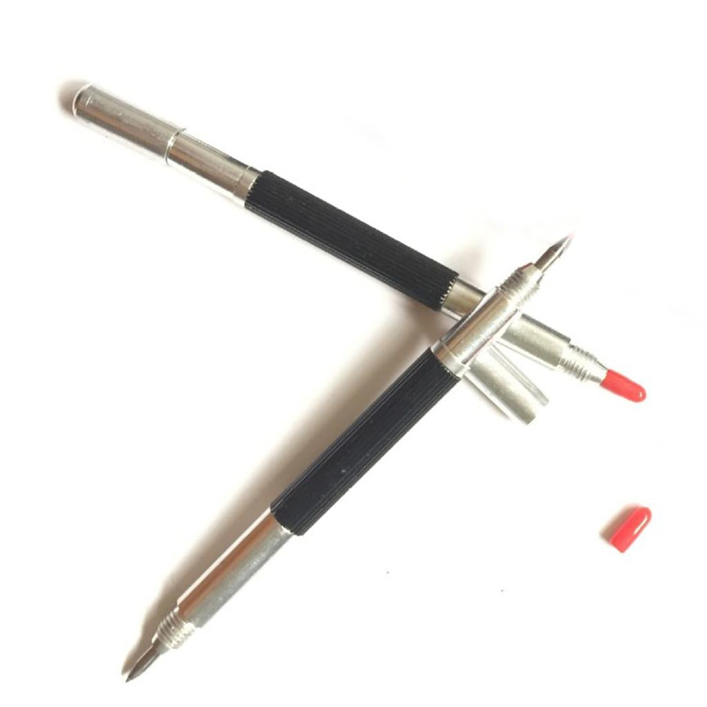 The carbide scribe pen is the perfect tool for making sharp accurate lines on hardened materials like hardened steel, stainless steel, ceramics and glass.