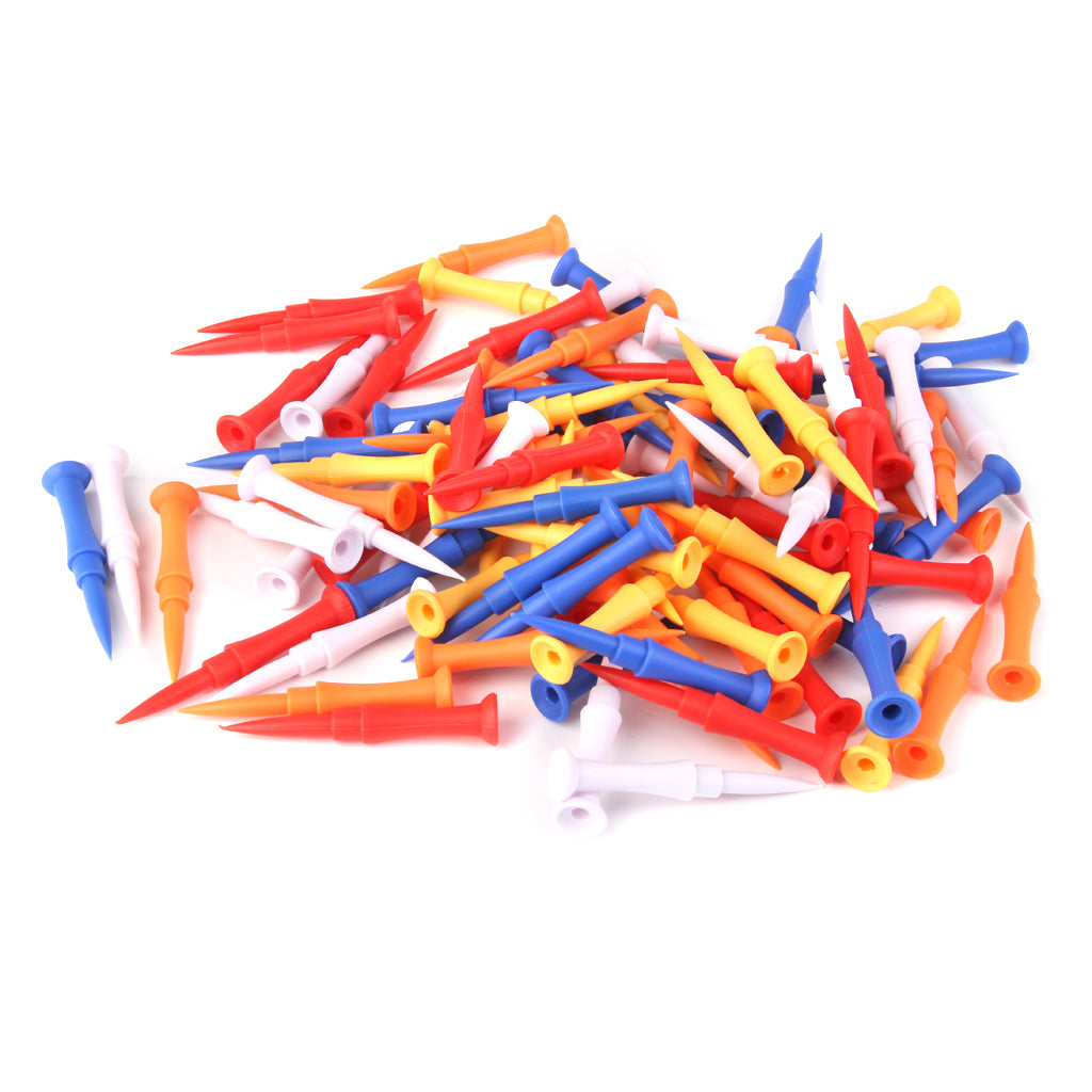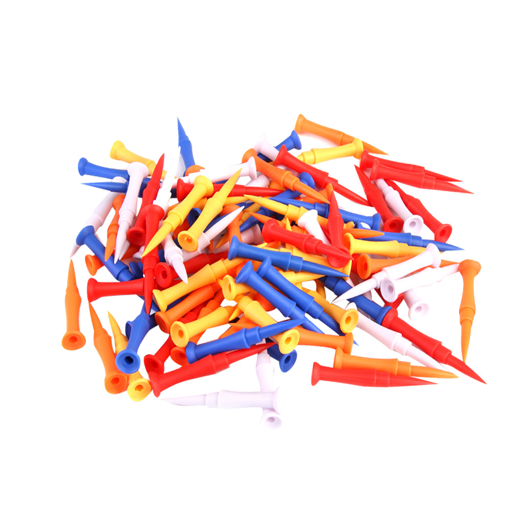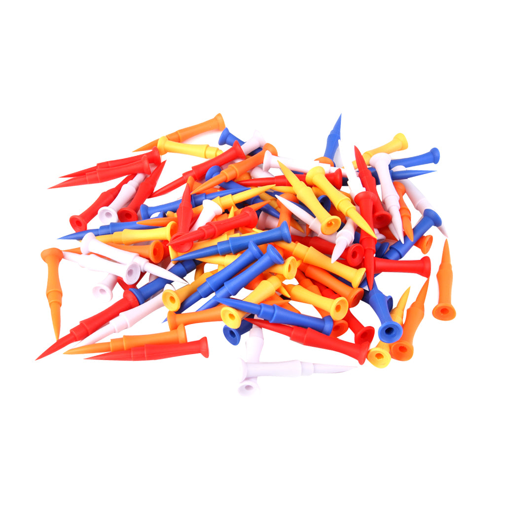 100pcs Mixed Colors Plastic Golf Tees 75mm Golfer Training Accessories