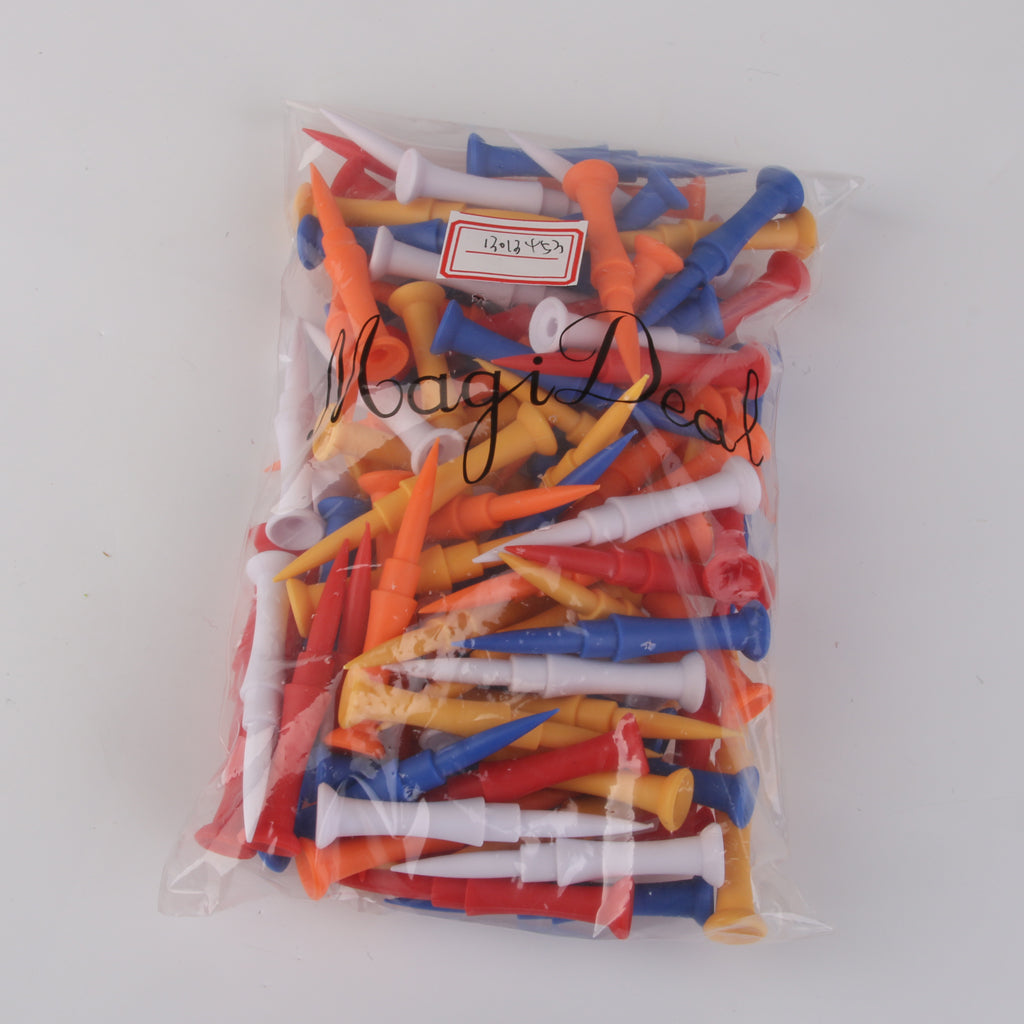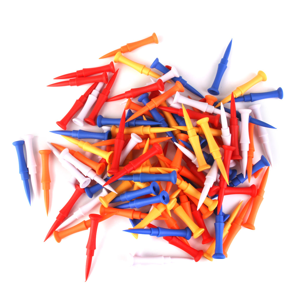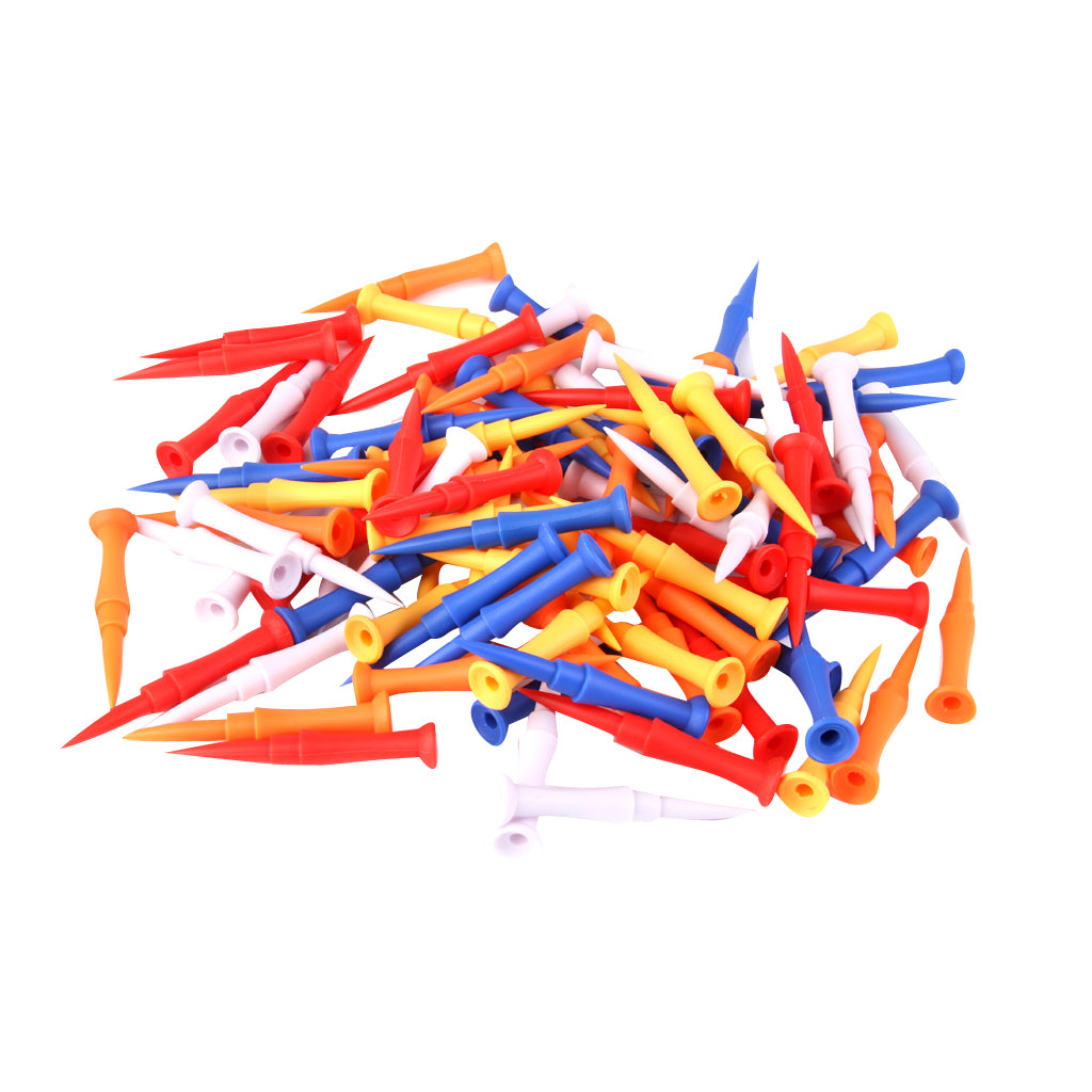 100pcs Mixed Colors Plastic Golf Tees 75mm Golfer Training Accessories