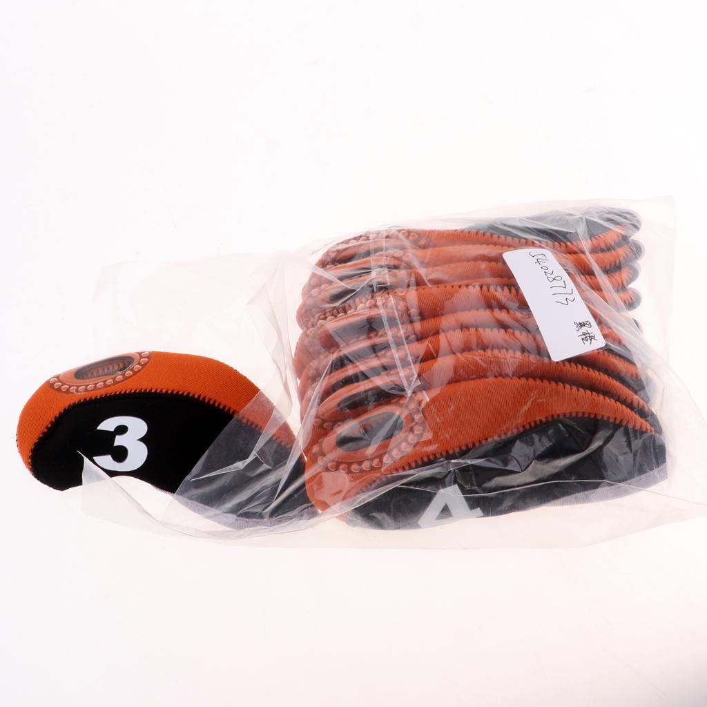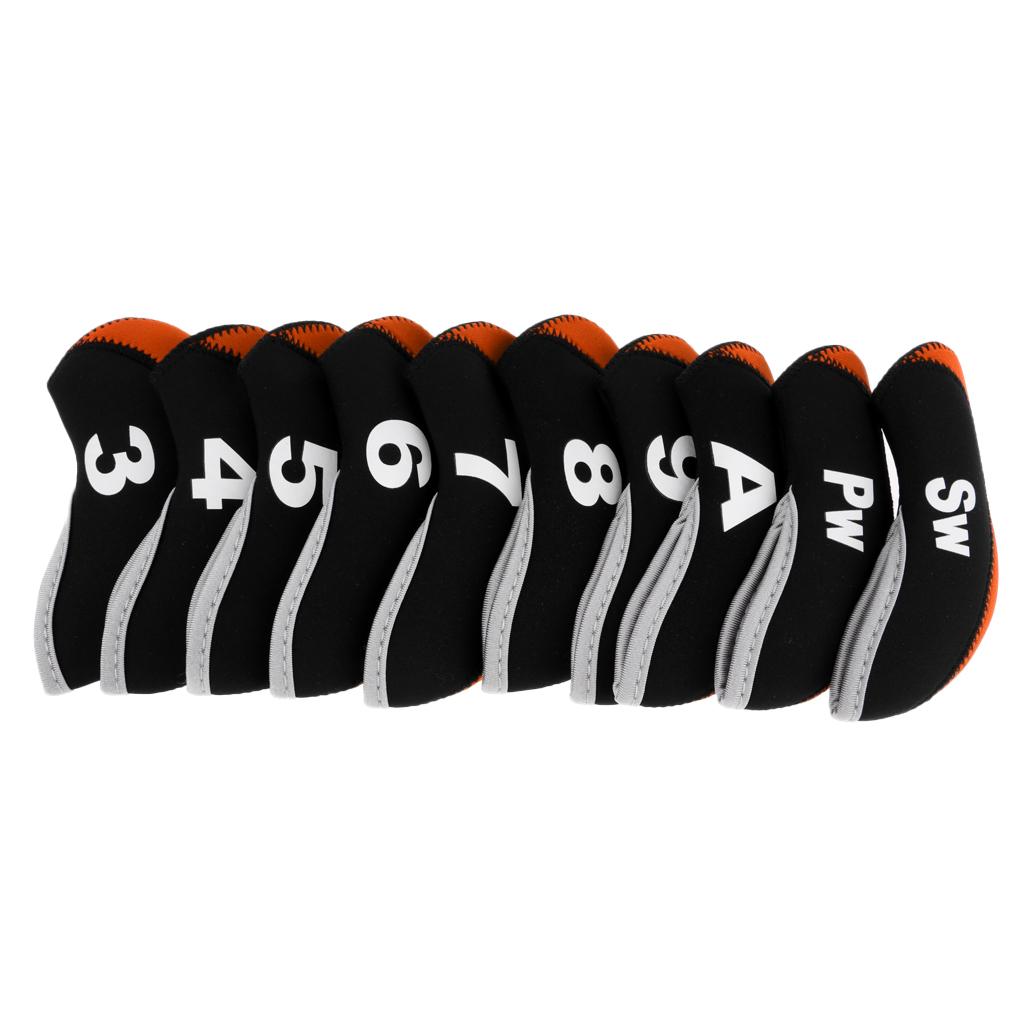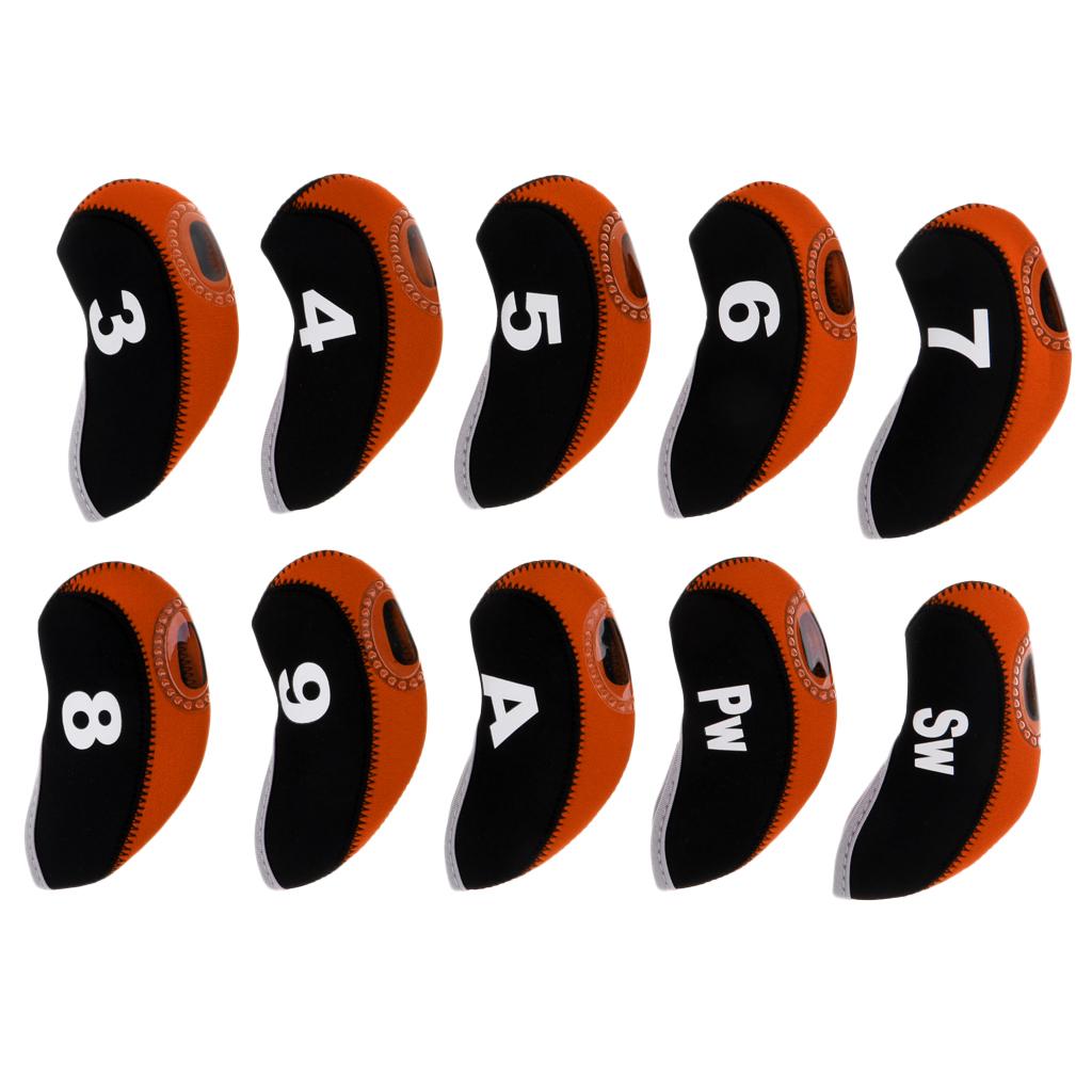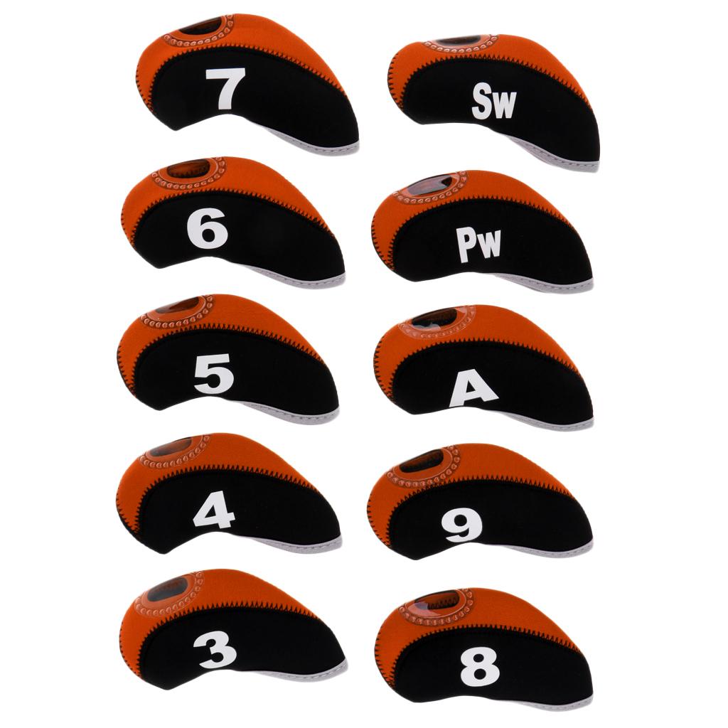10pcs Neoprene Golf Club Head Covers Wedge Iron Protective Black+Orange
