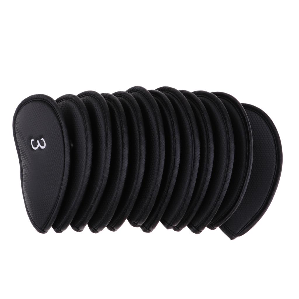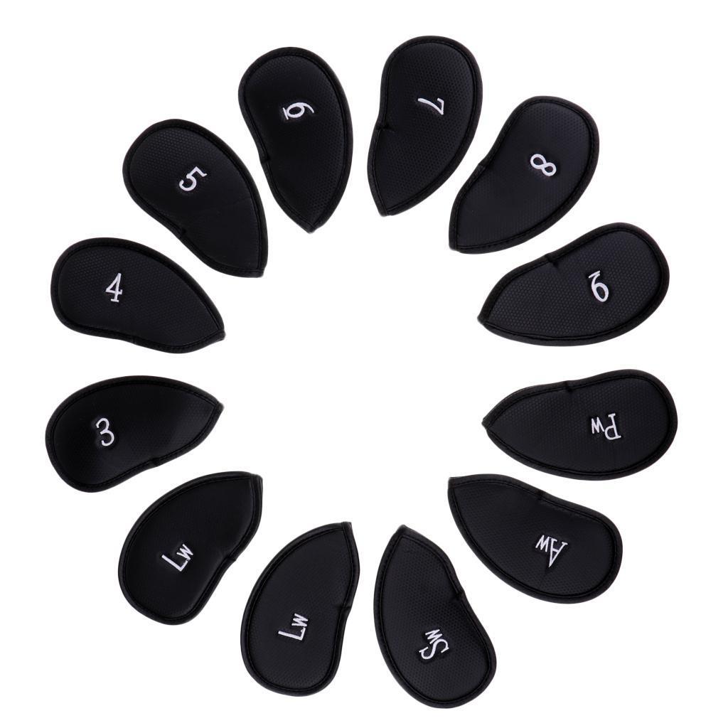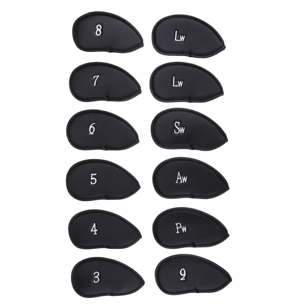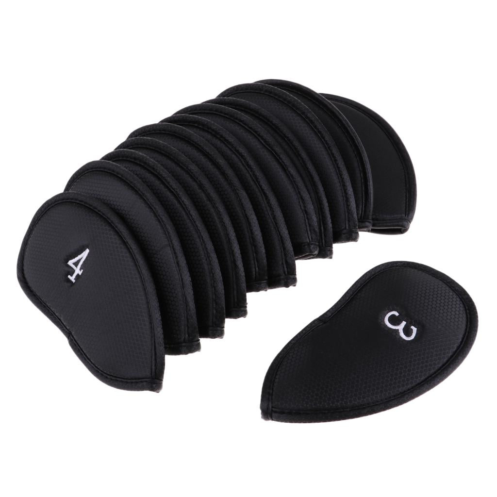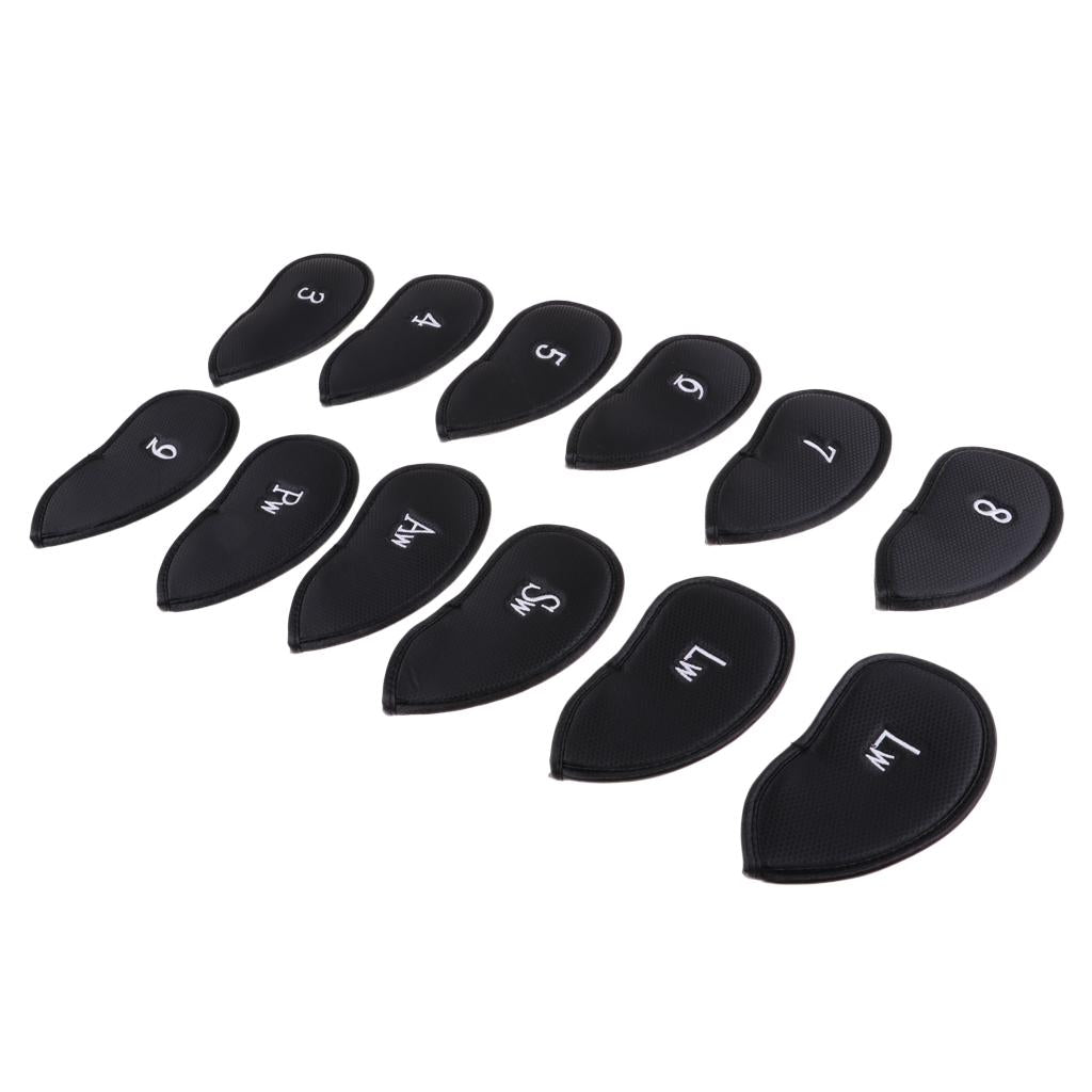 12 Pieces Waterproof PU Leather Golf Iron Head Cover Headcover Set Black 2