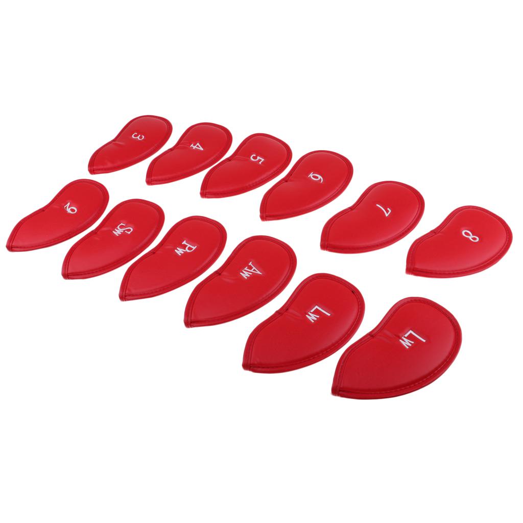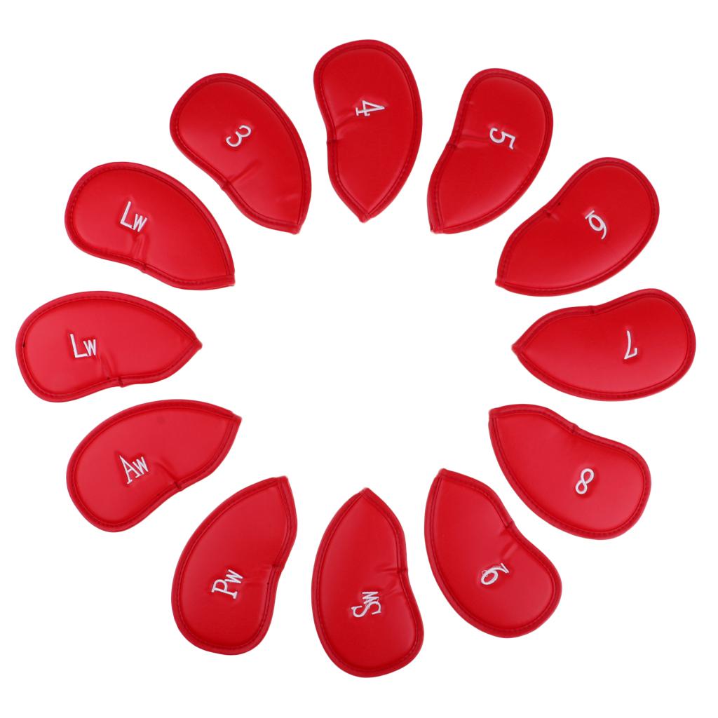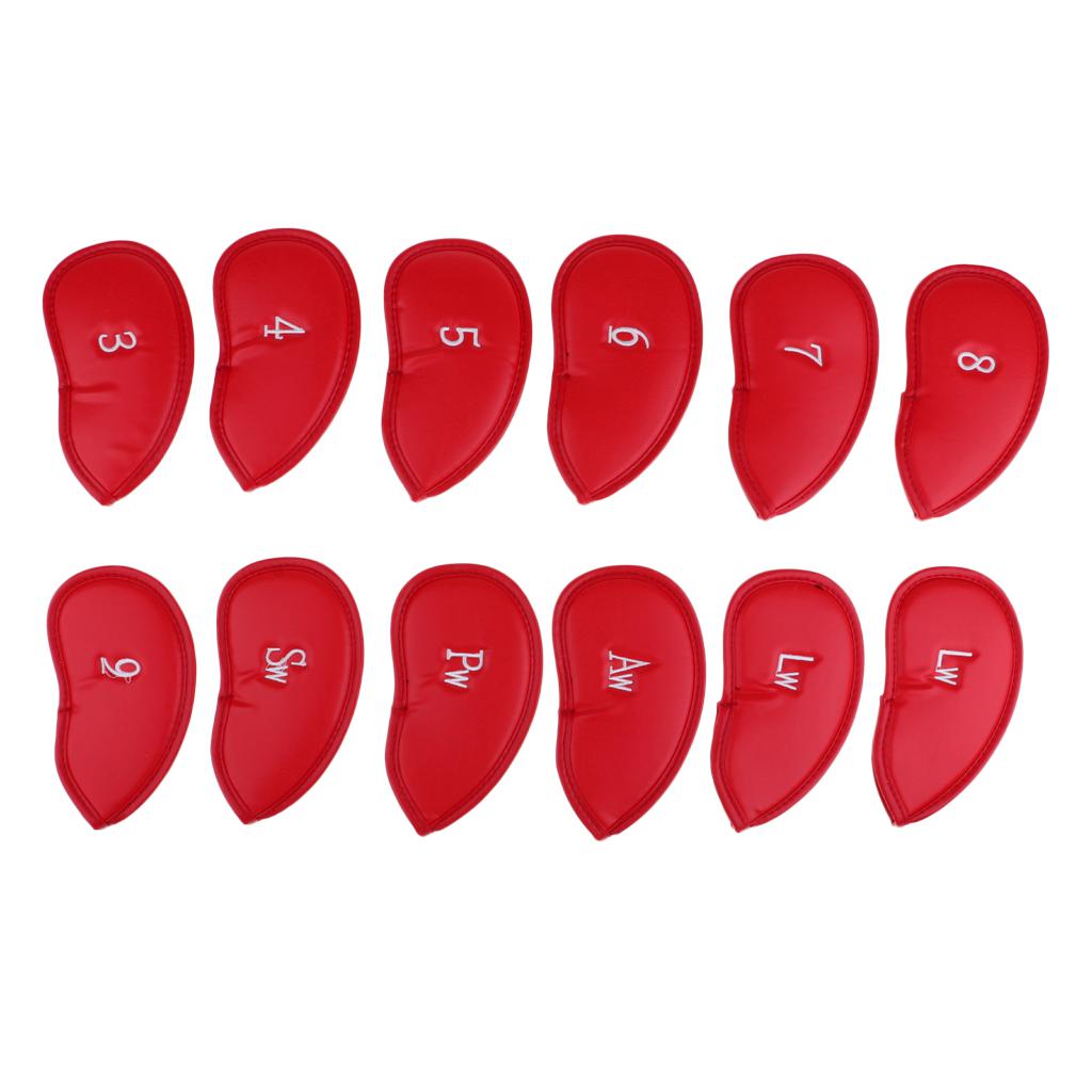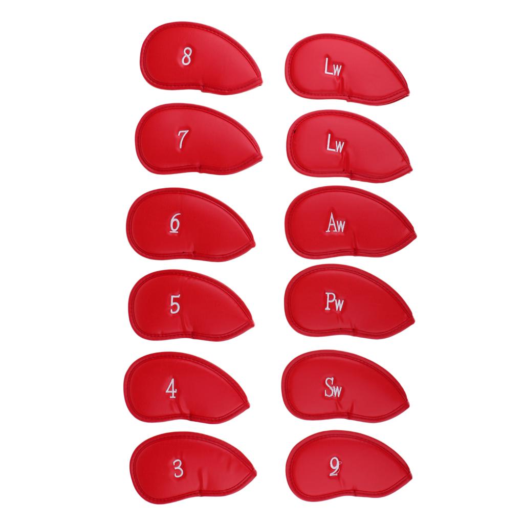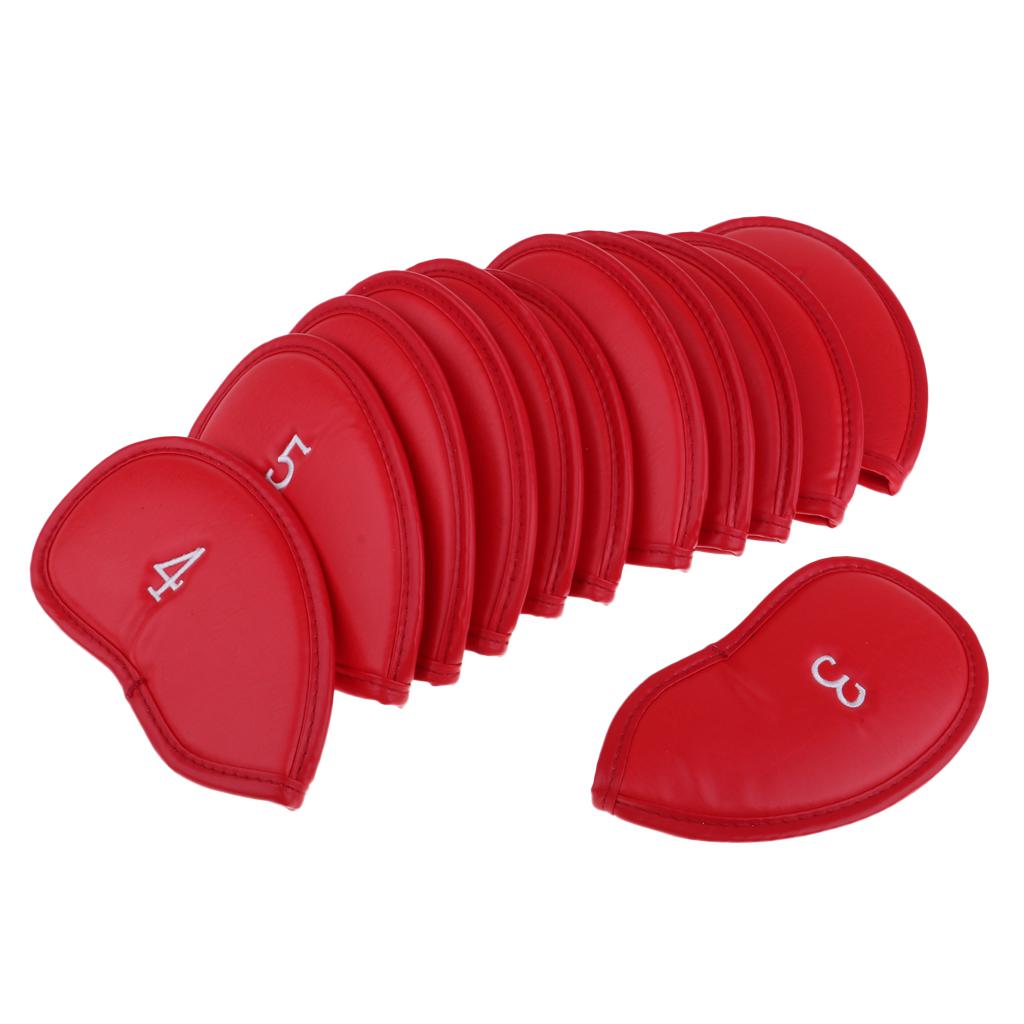 12 Pieces Waterproof PU Leather Golf Iron Head Cover Headcover Set Red