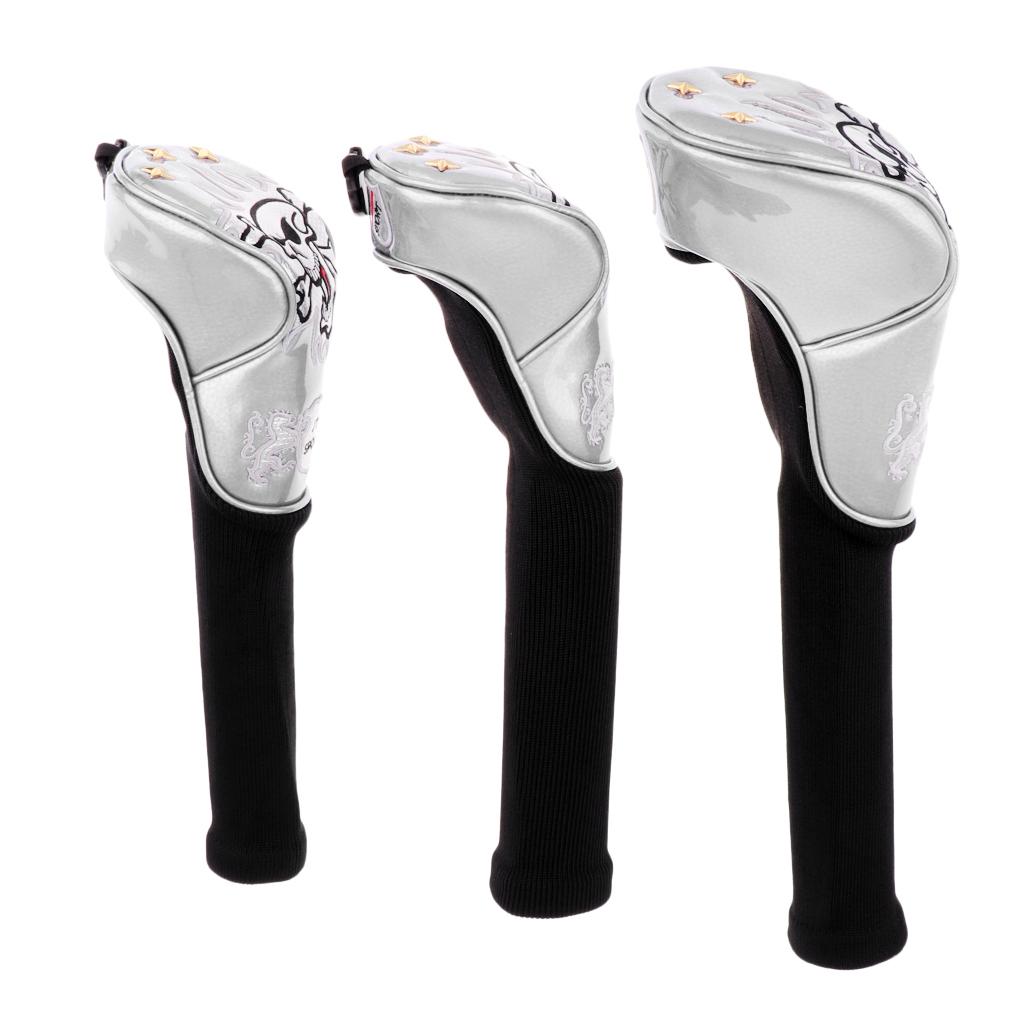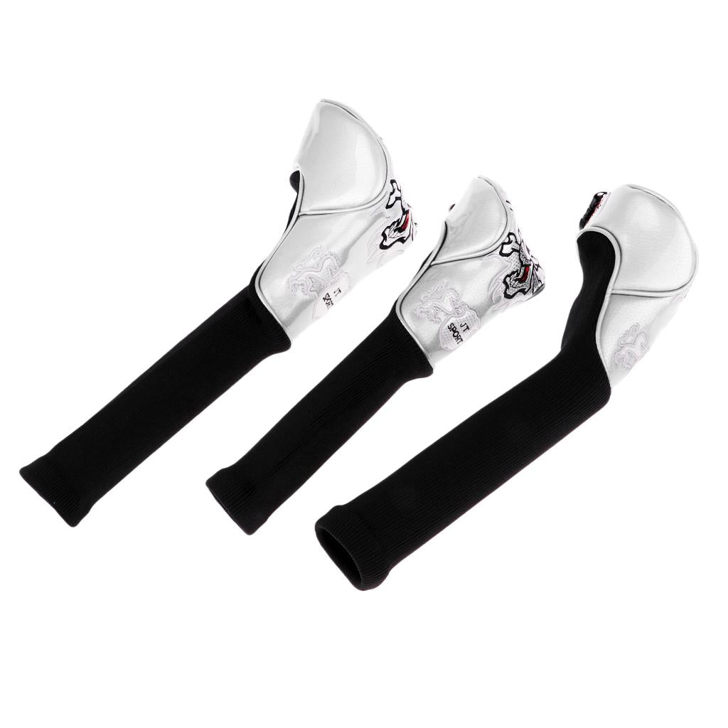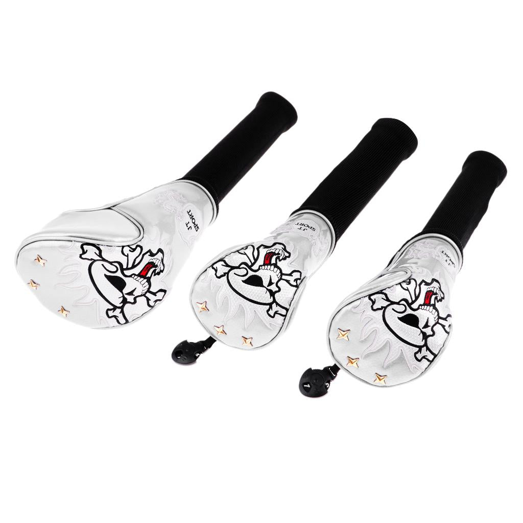 3 Pack Durable Skull Head Golf Cover Headcover for Driver Fairway Wood White