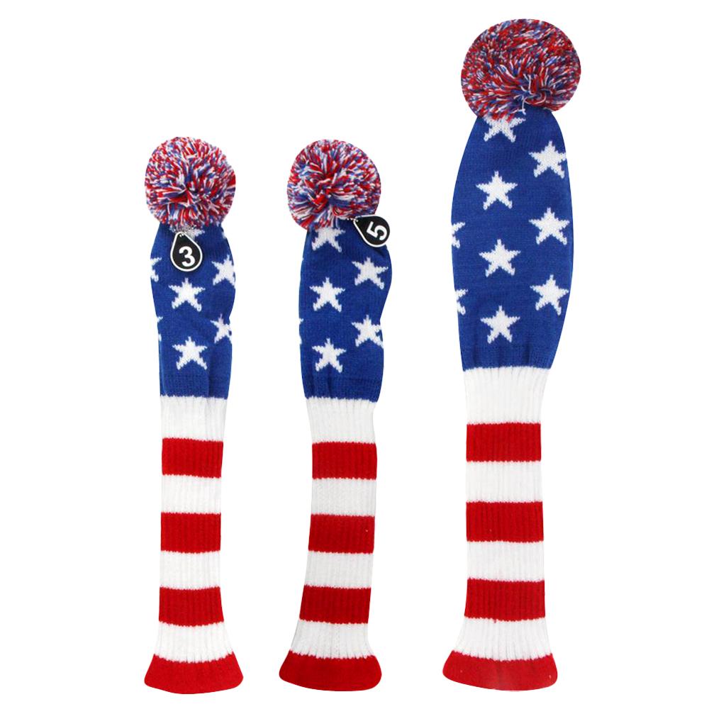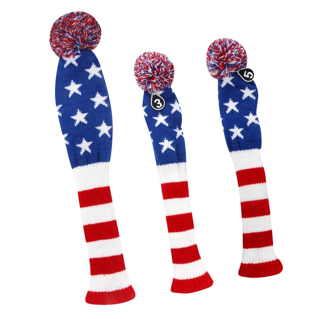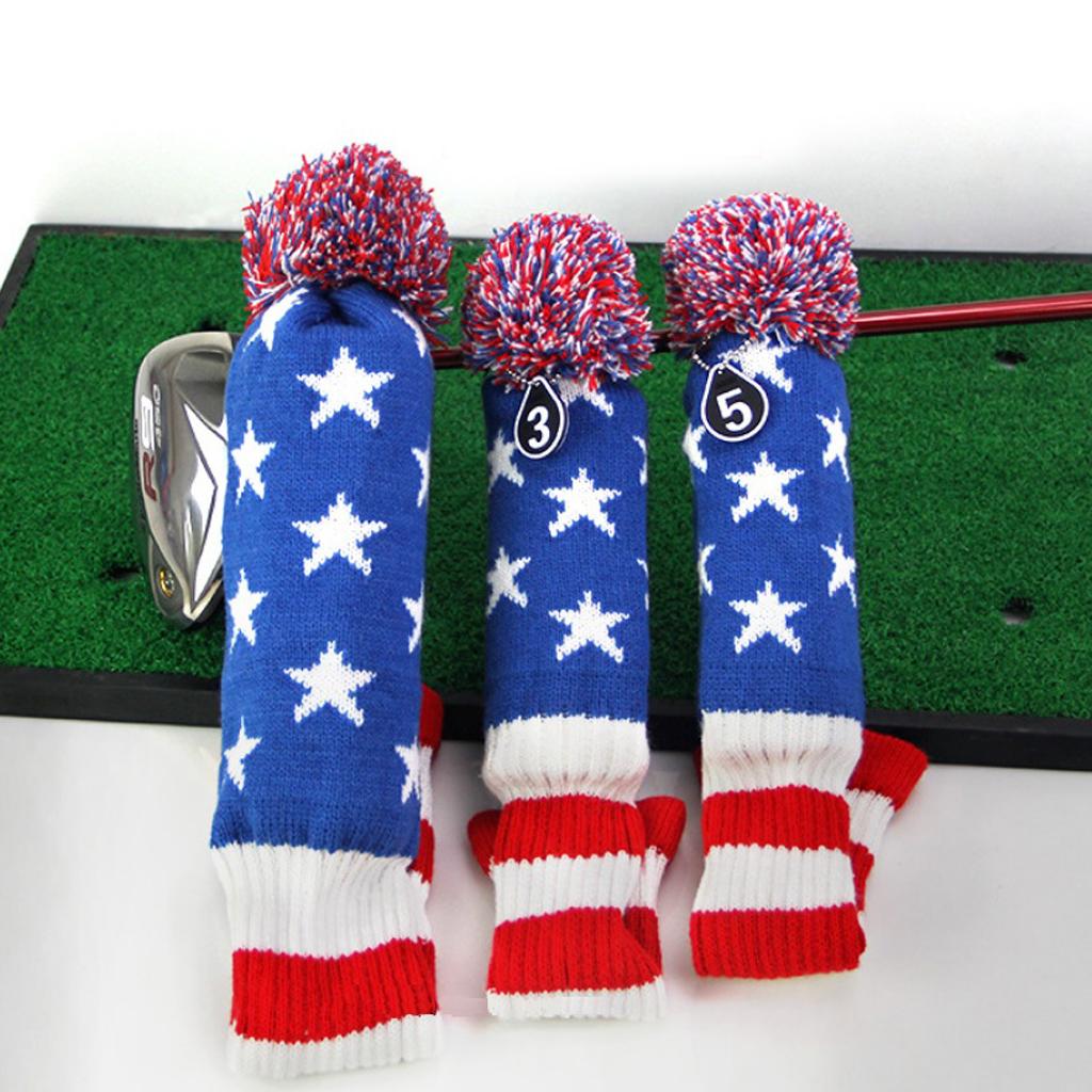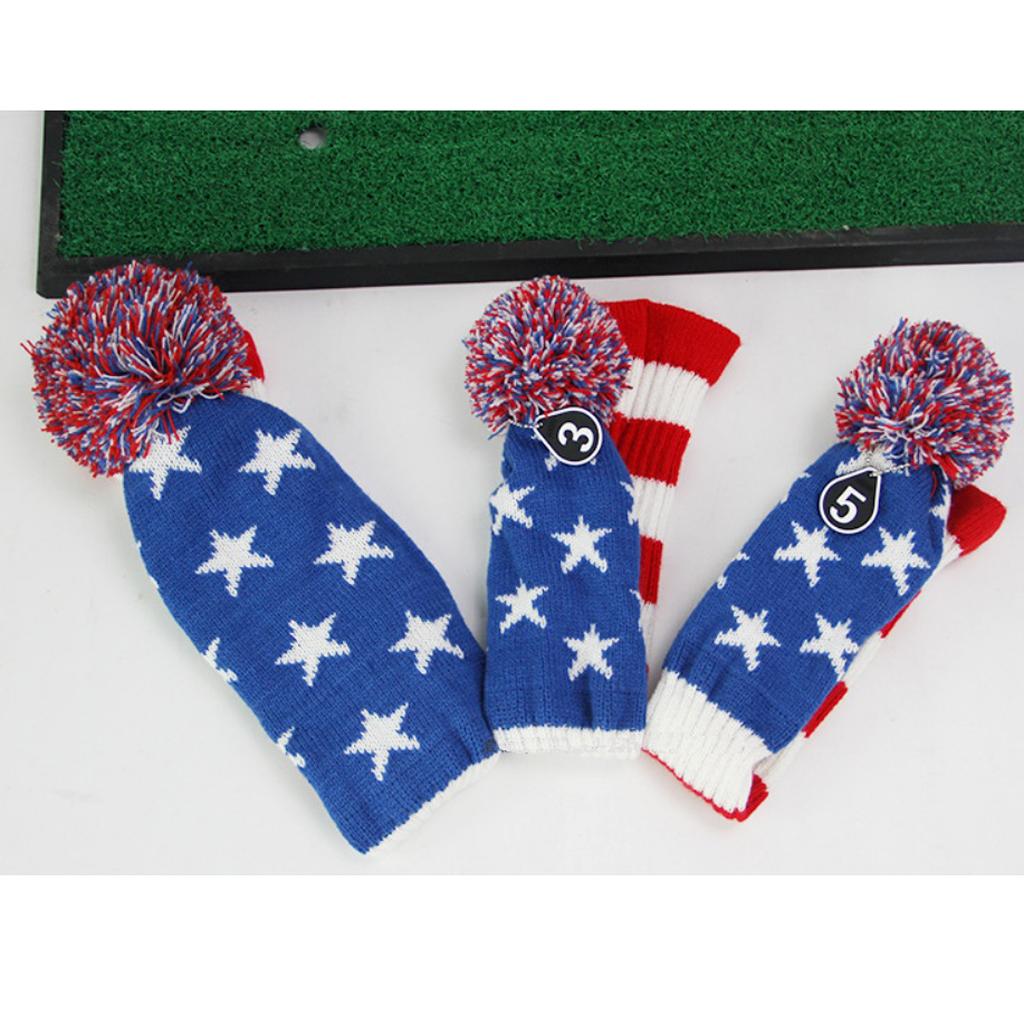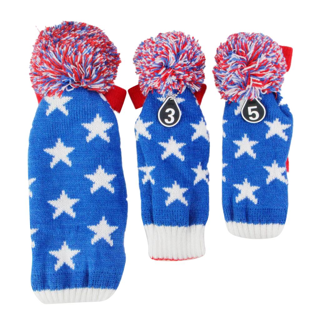 3 Pieces Golf Pom Pom Headcover Wood Driver Club Head Cover Set Star