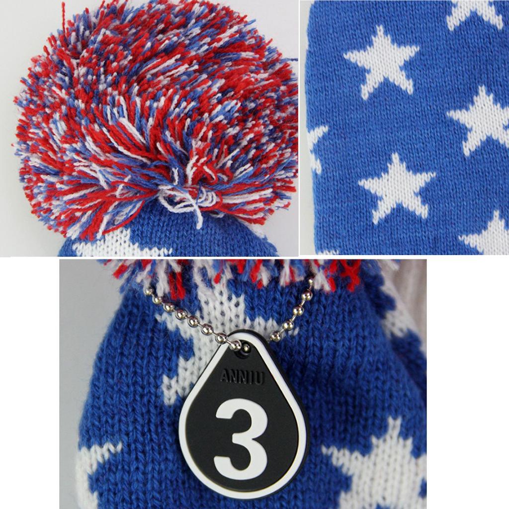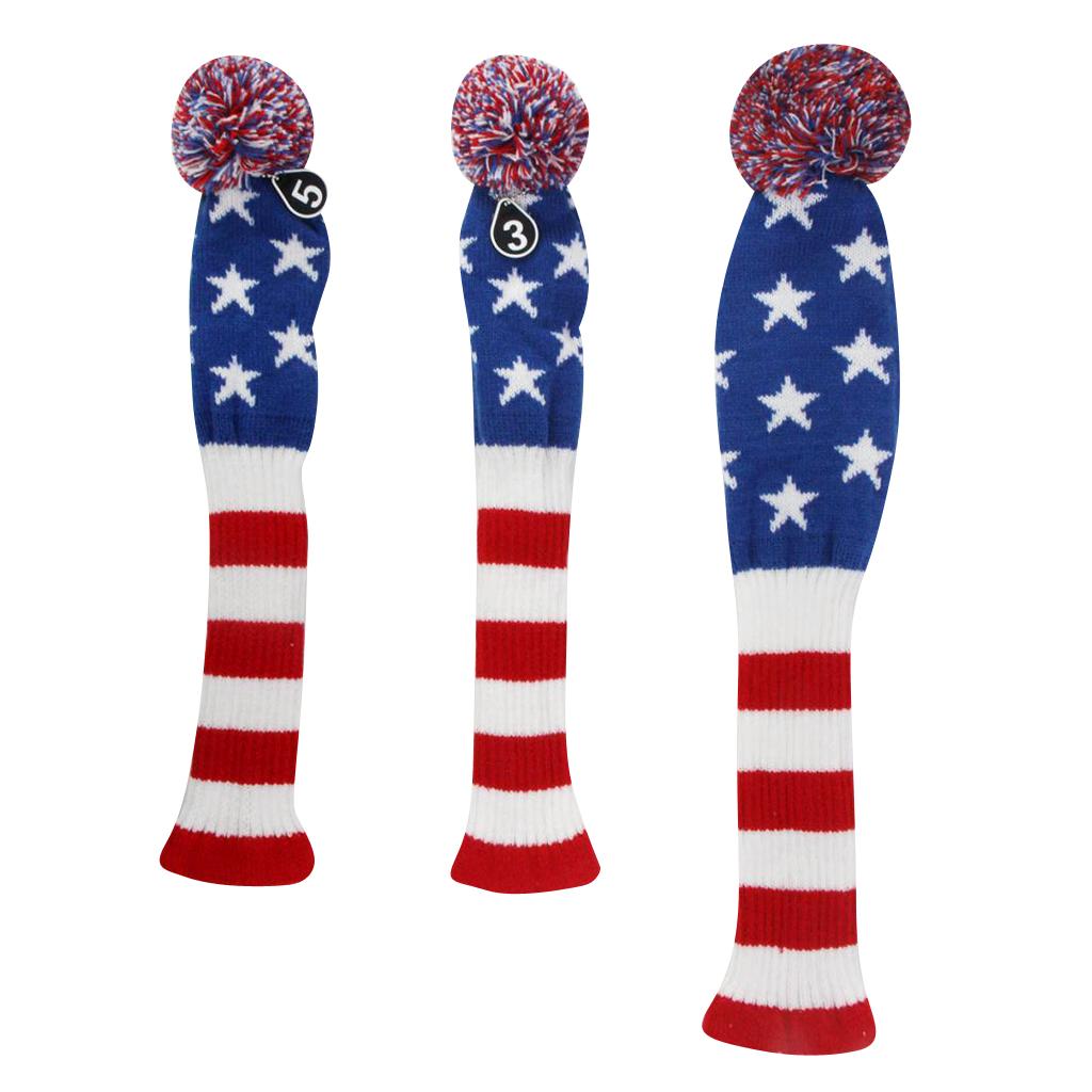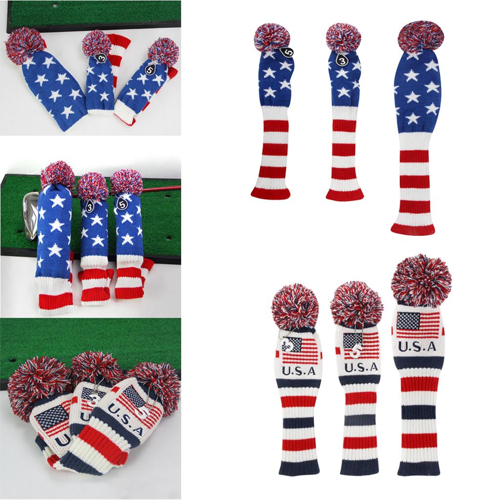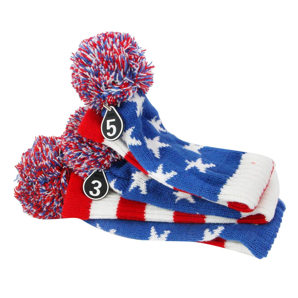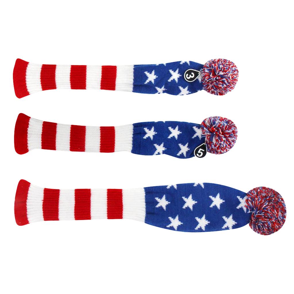 3 Pieces Golf Pom Pom Headcover Wood Driver Club Head Cover Set Star