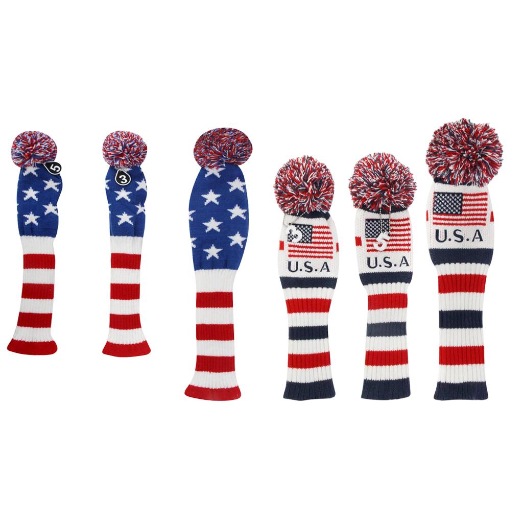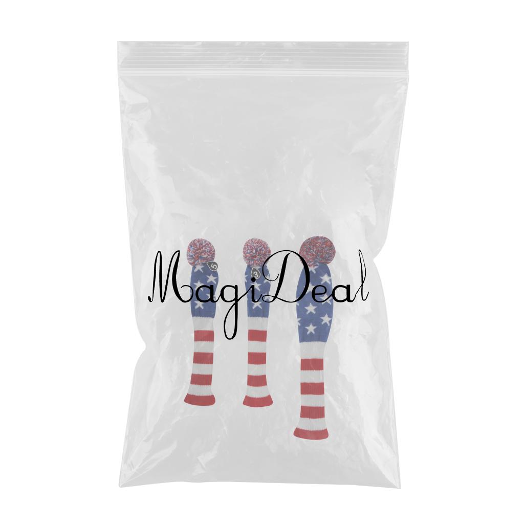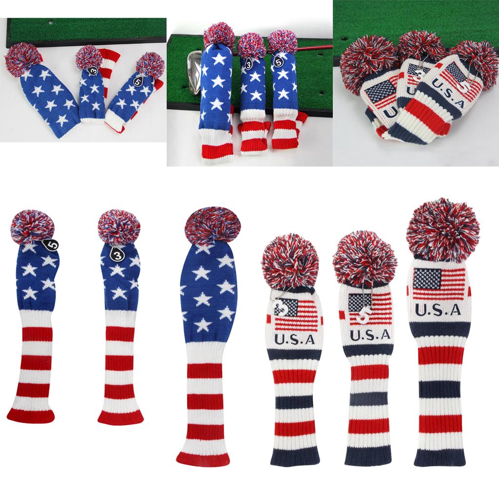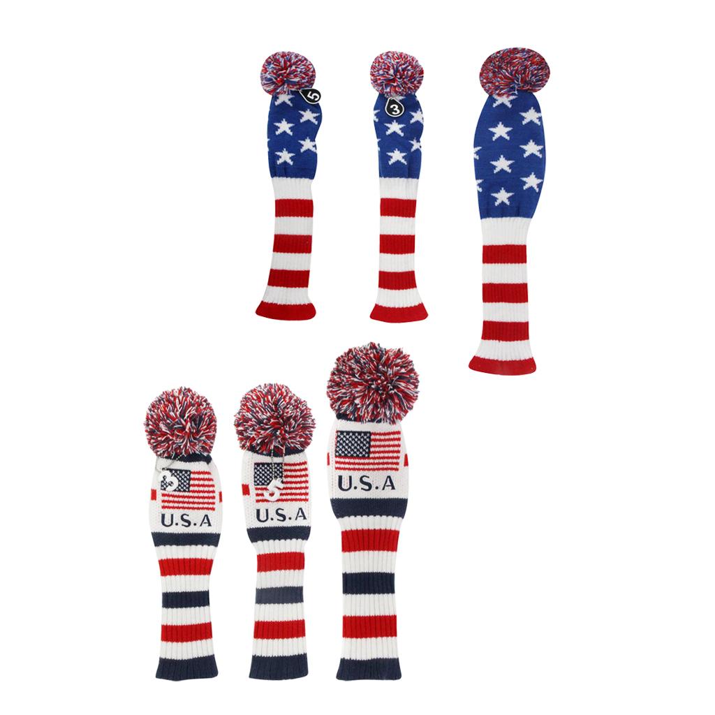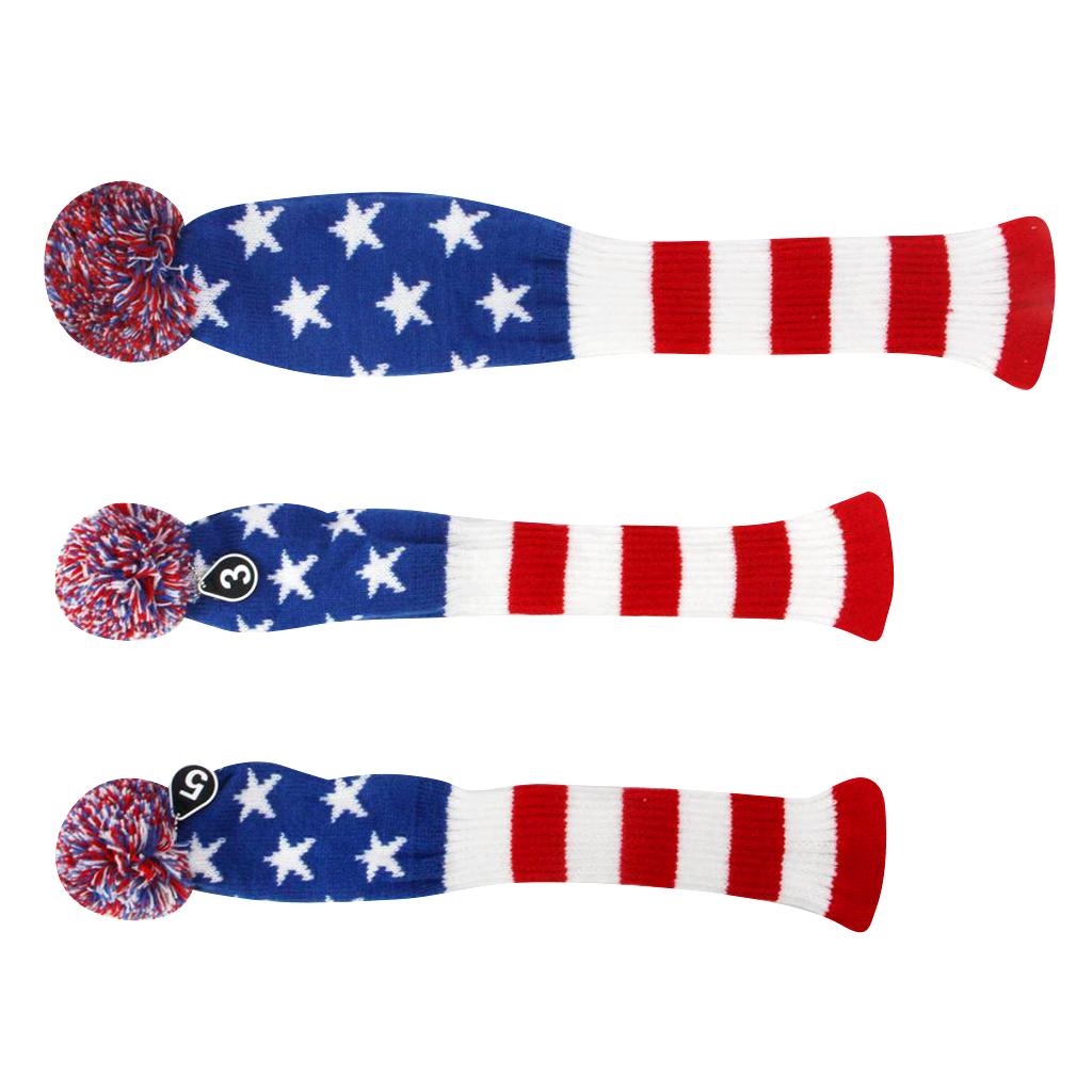 3 Pieces Golf Pom Pom Headcover Wood Driver Club Head Cover Set Star