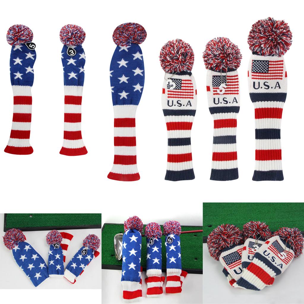 3 Pieces / 1 set performance knit golf pom pom wood headcover for driver up to 460CC, #1, #3, 5# club head, attractive, washable, portable and durable
