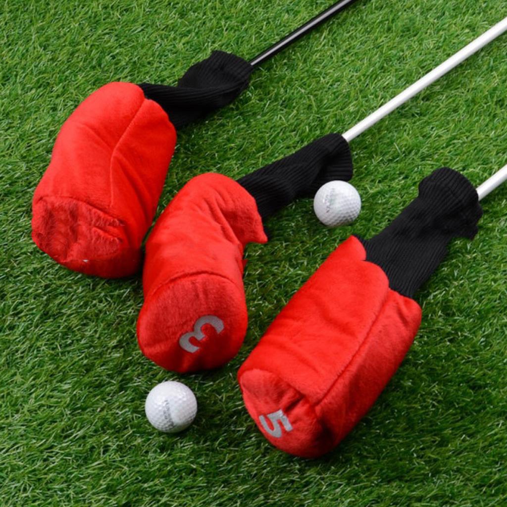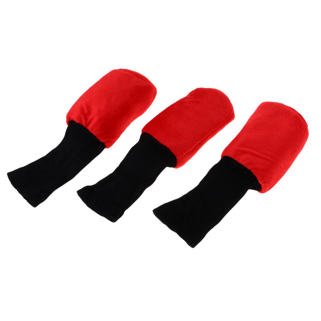3pcs Long Neck Golf Club Head Cover Wood Headcover for Women Red+Black