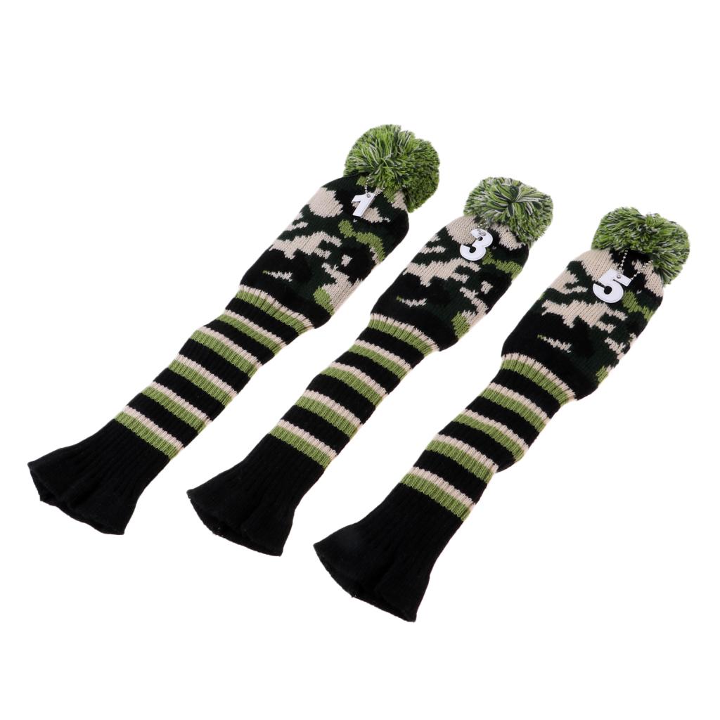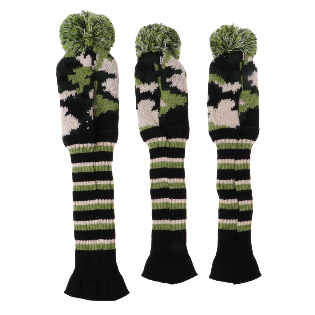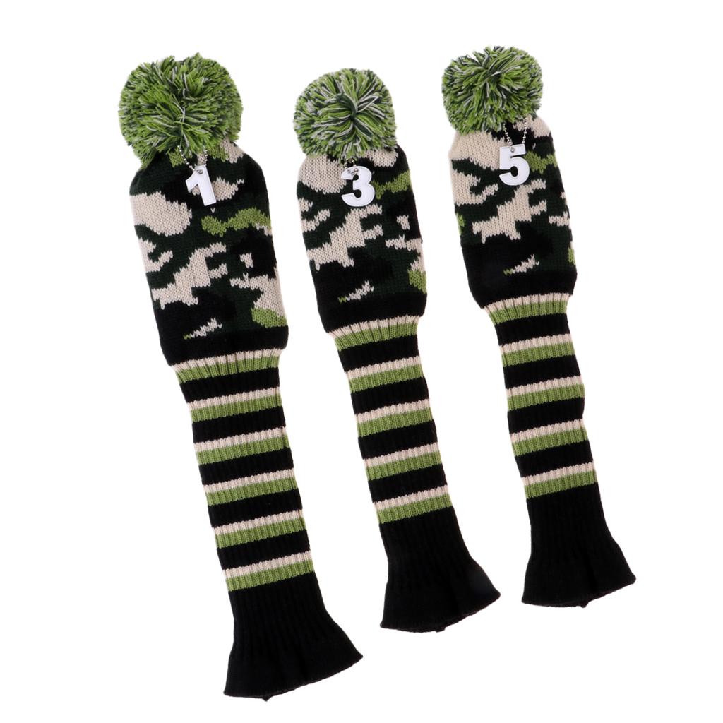 Set of 3 golf Pom Pom wood head cover knit sock headcovers.
