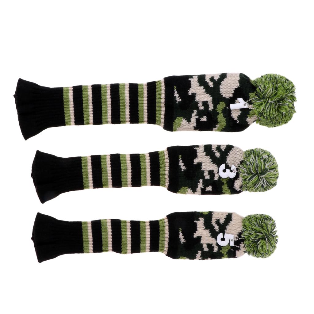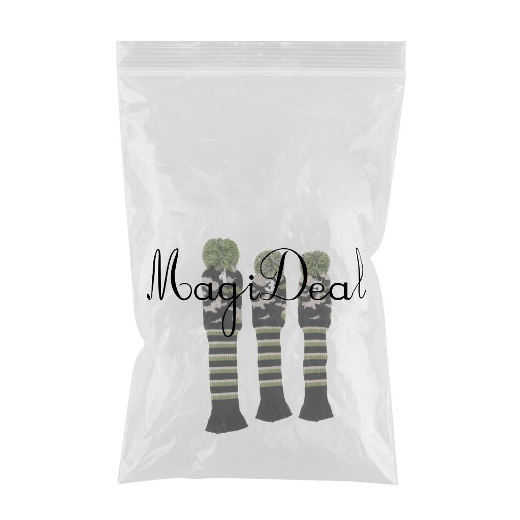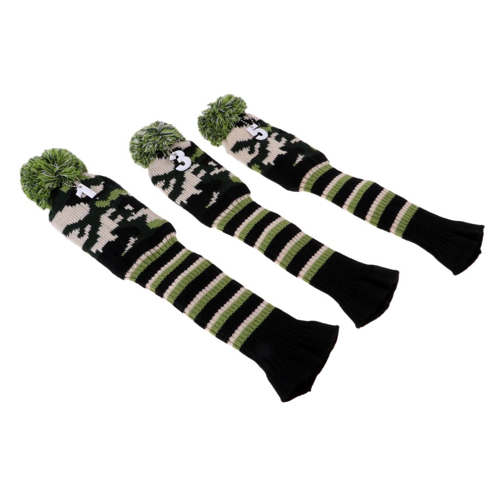 Set of 3 golf Pom Pom wood head cover knit sock headcovers.