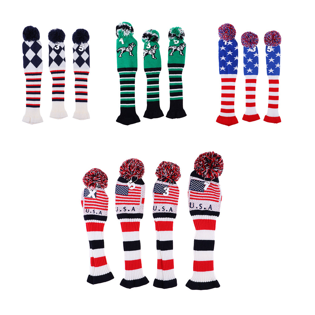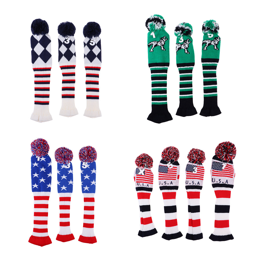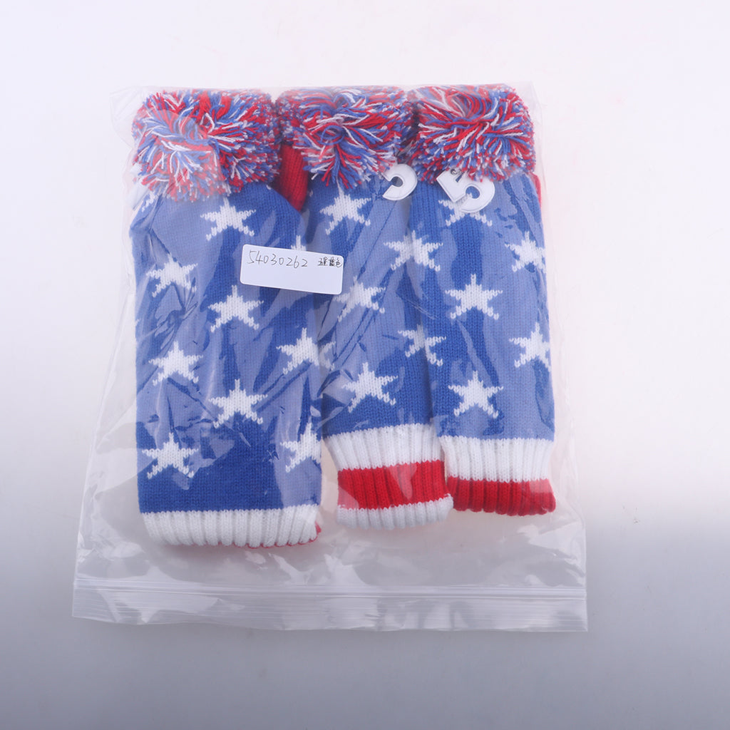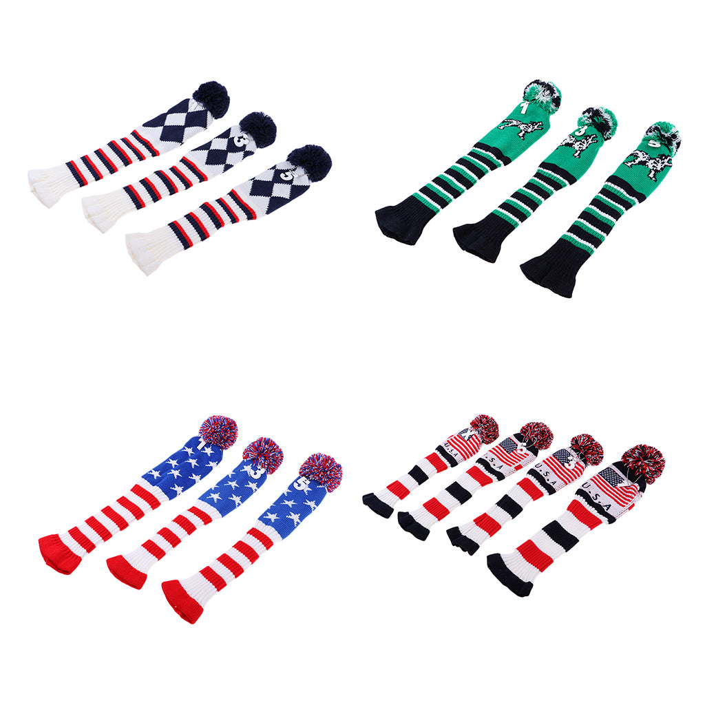 Set of 3 golf Pom Pom wood head cover knit sock headcovers.