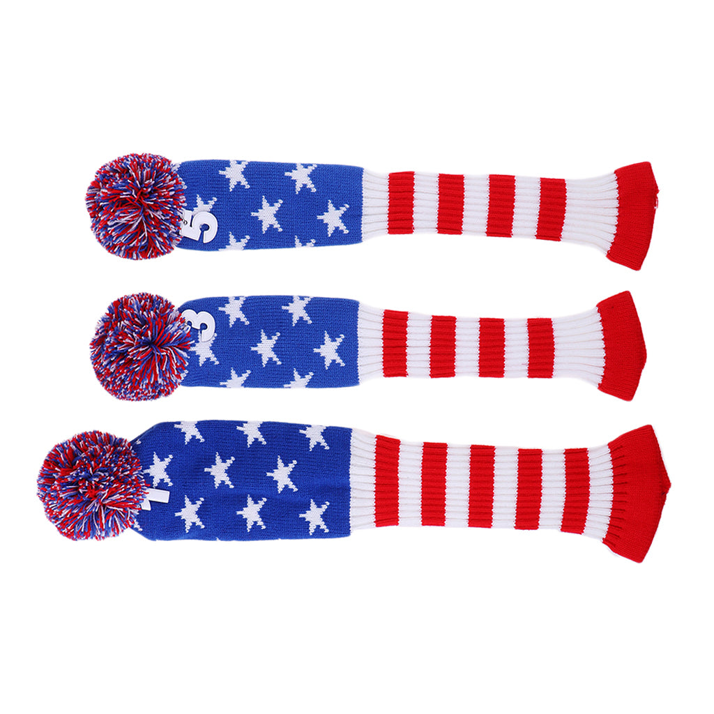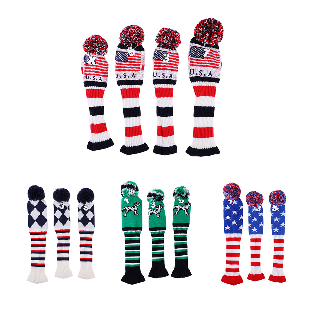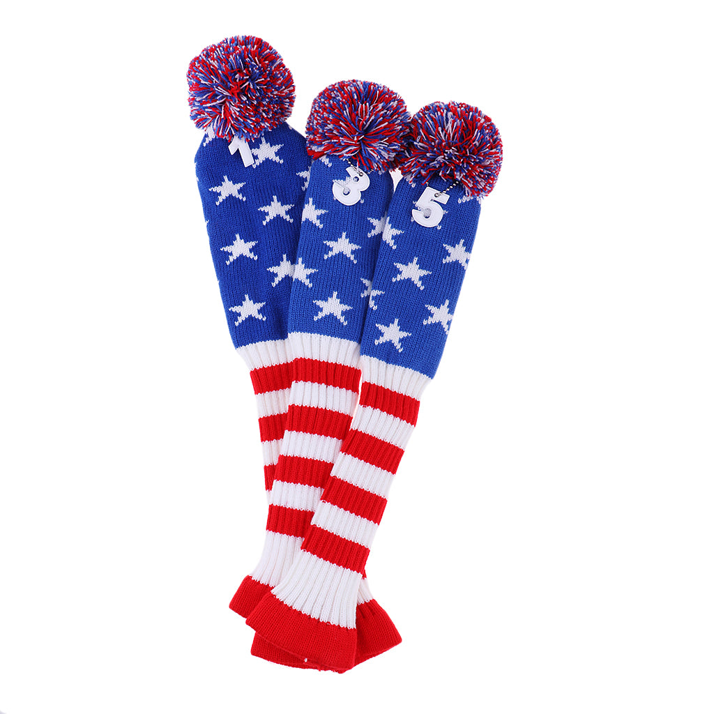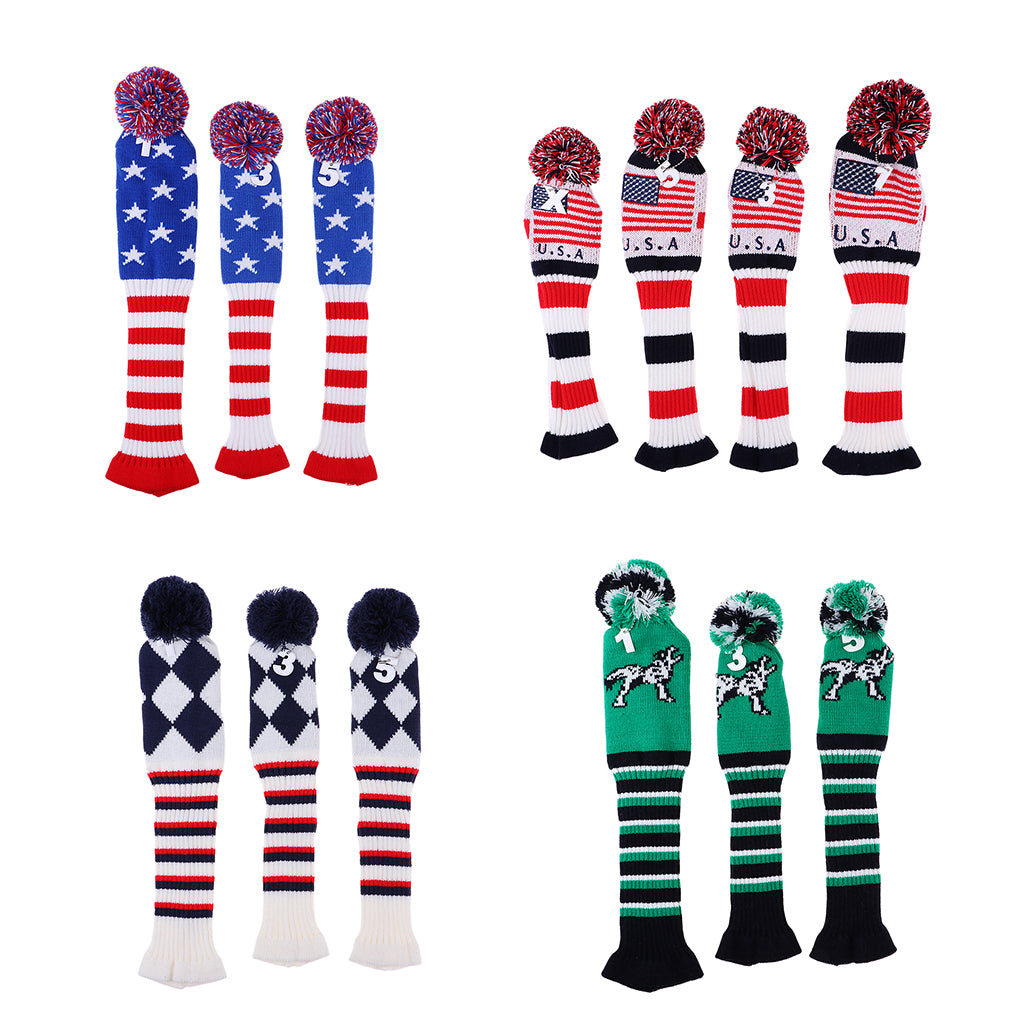 Set of 3 golf Pom Pom wood head cover knit sock headcovers.