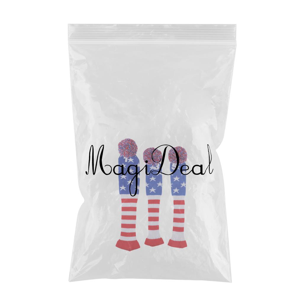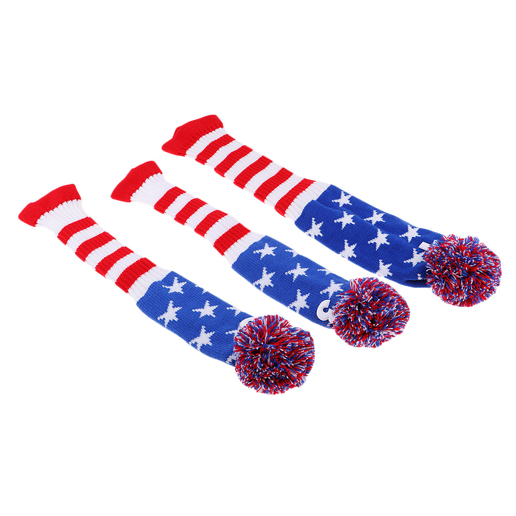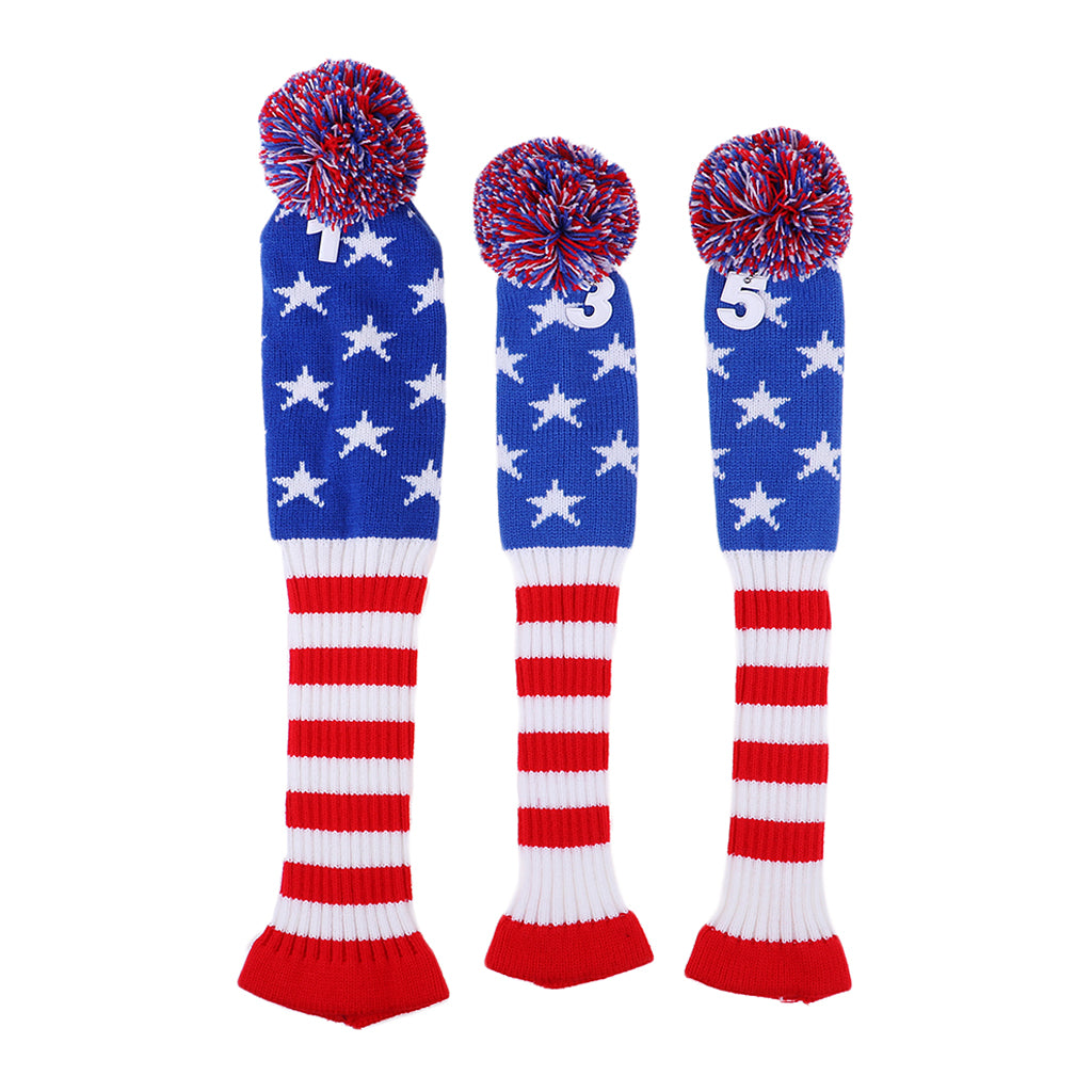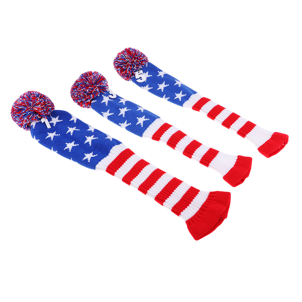 Set of 3 golf Pom Pom wood head cover knit sock headcovers.